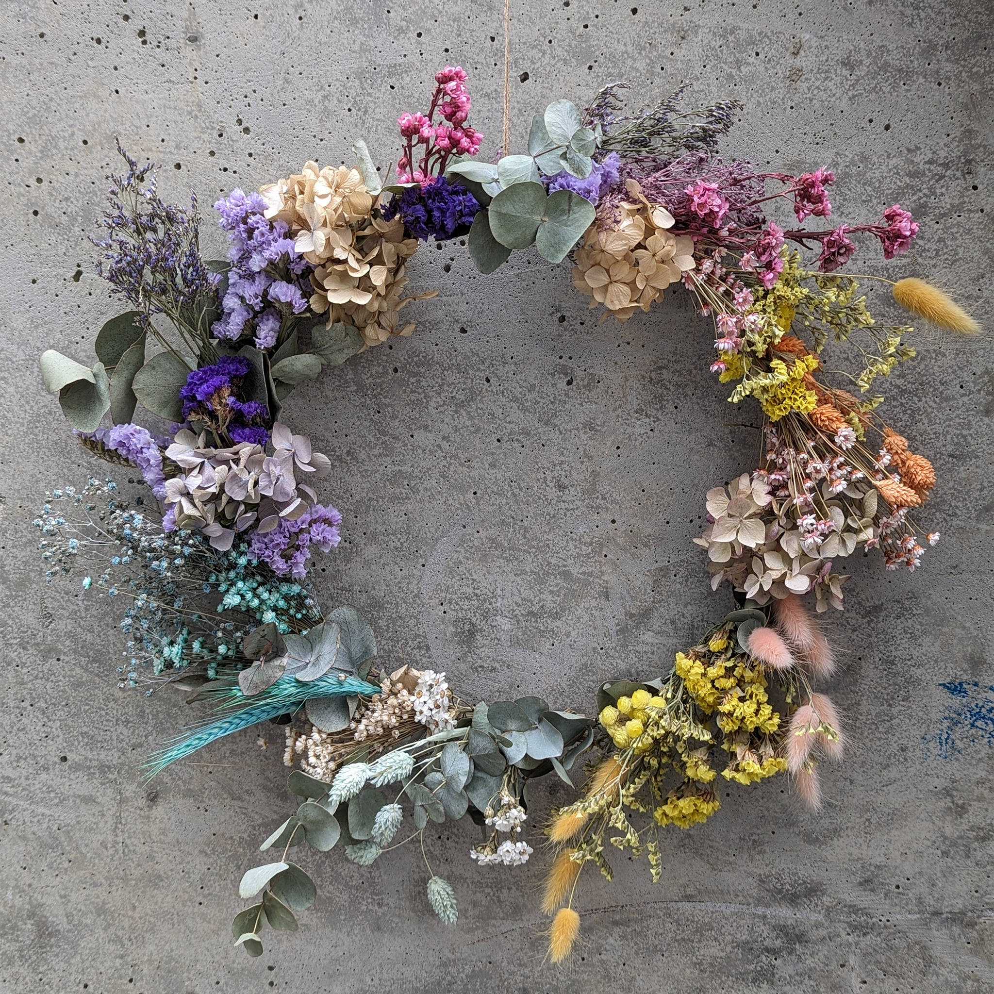 Wreaths made of dried and preserved flowers are timeless decorations offering almost unlimited arrangement possibilities. They can decorate doors, walls, tables, windows, photo sessions and outfits. They are durable, stylish and full of natural charm.