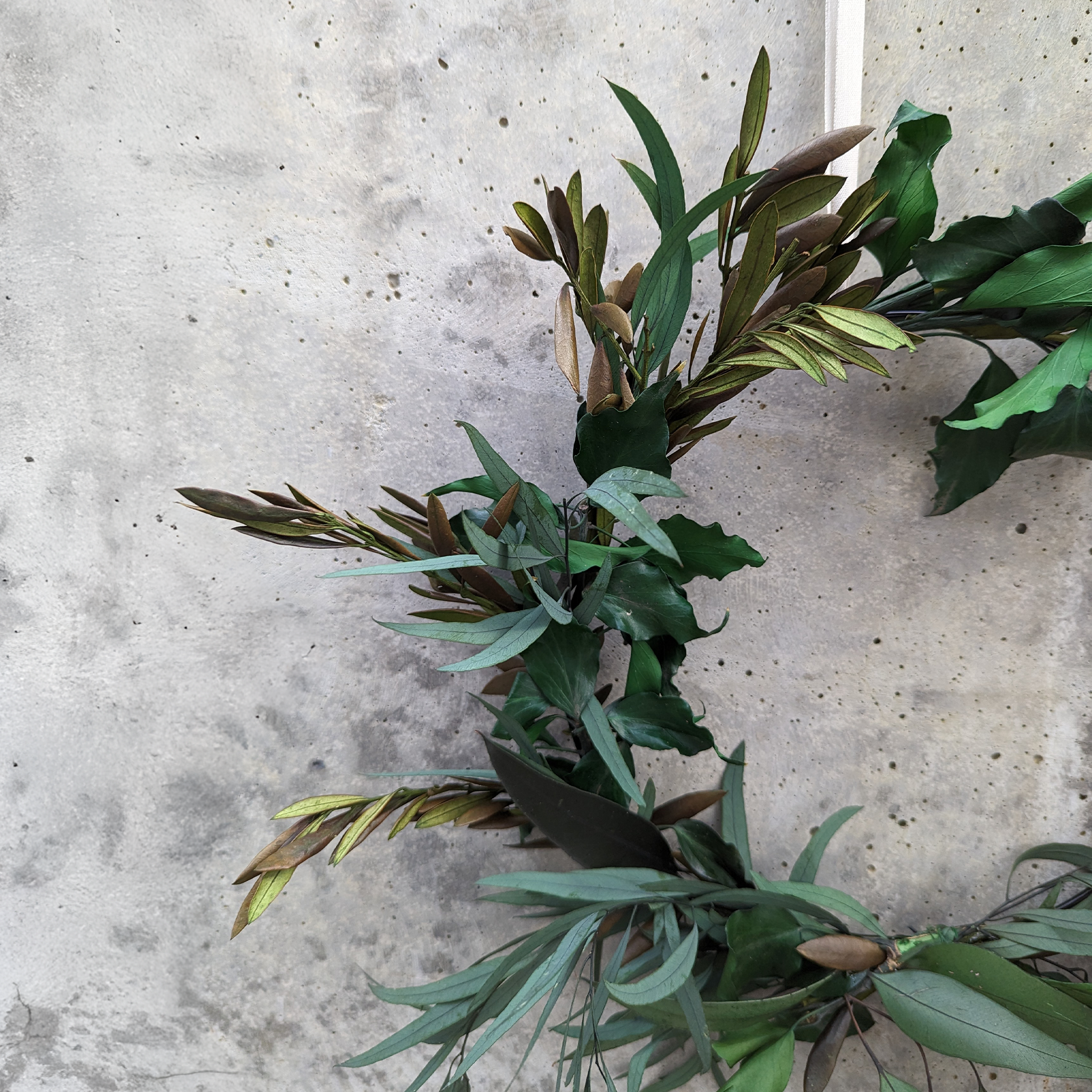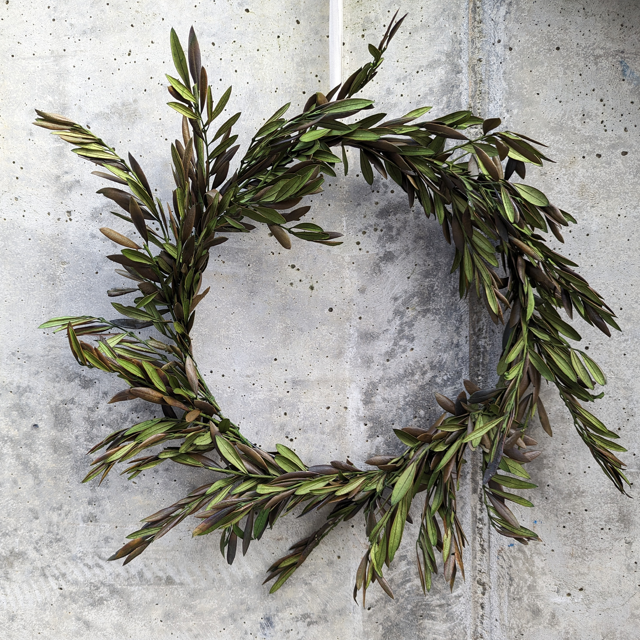 - Minimalist green wreath made only of leaves and branches such as olive.