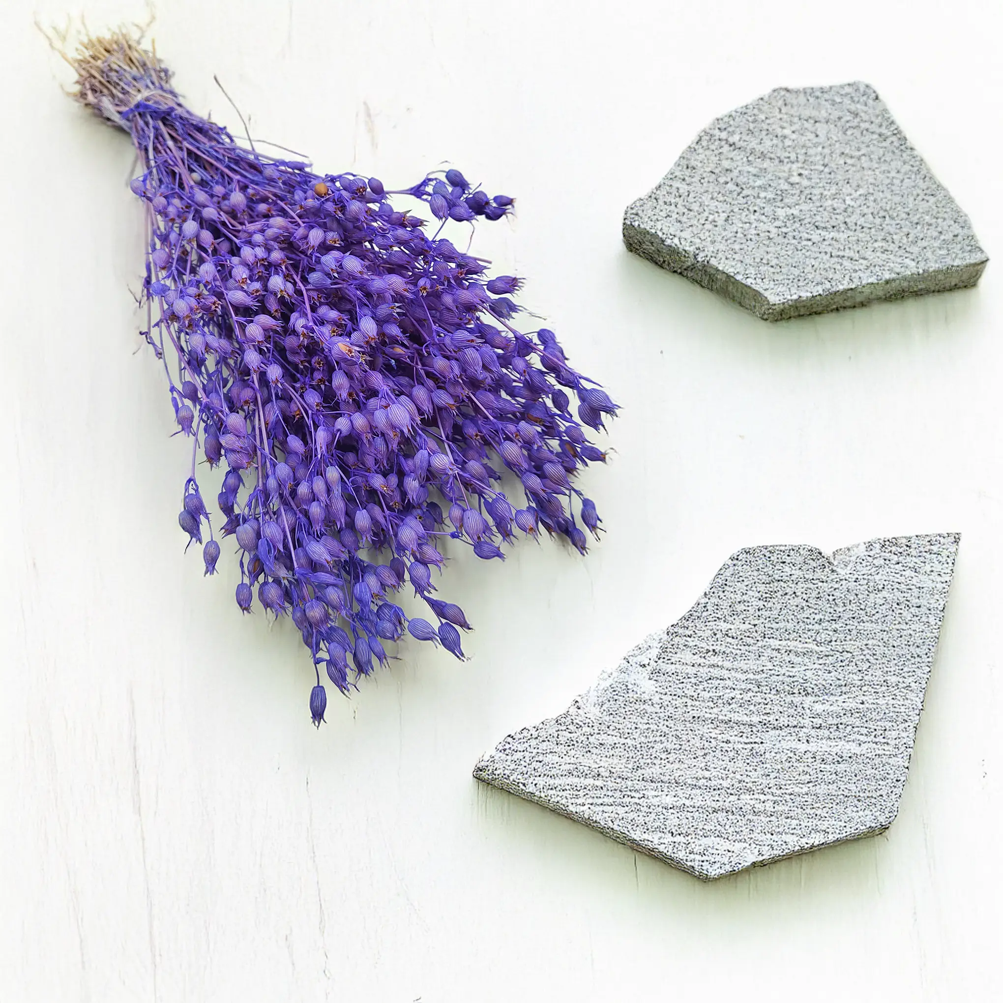 Light, inflated flowers bring natural structure. Lavender tones pair well with white, beige, or green elements. Dyed and carefully dried for long-lasting use.