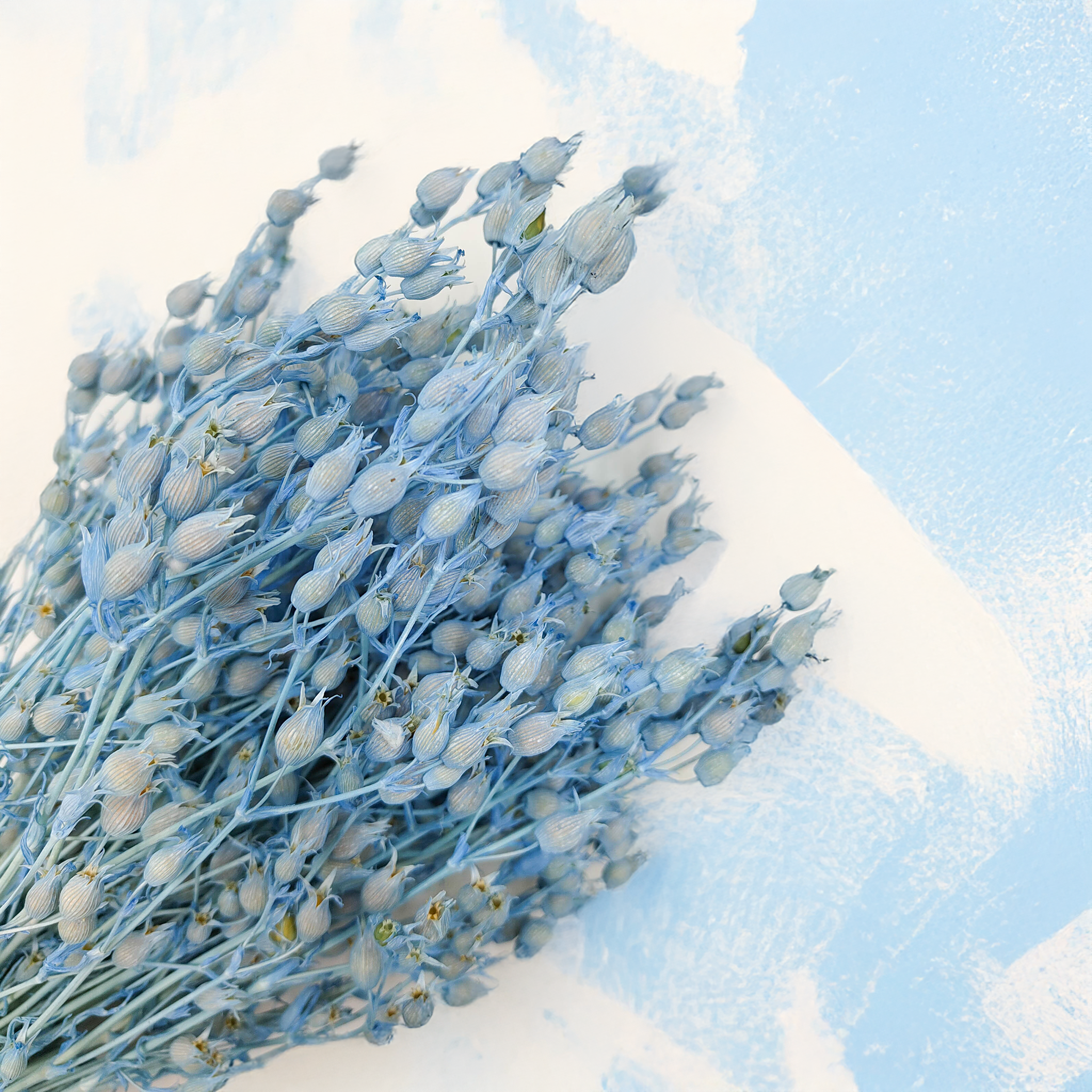The dried Silene in soft blue adds a calming, airy note to any arrangement. Its puffed, balloon-like flowers bring elegance and light texture to natural decor.