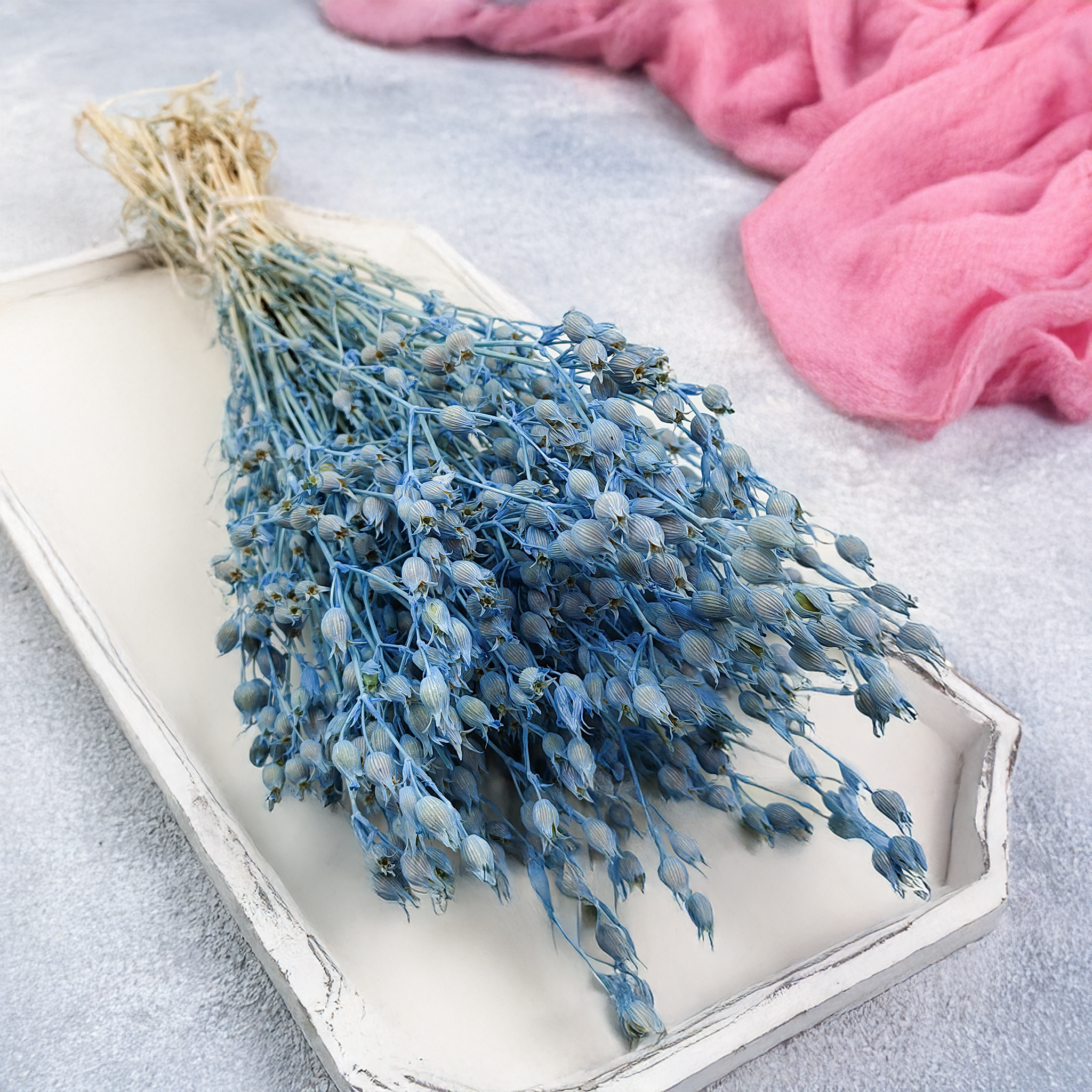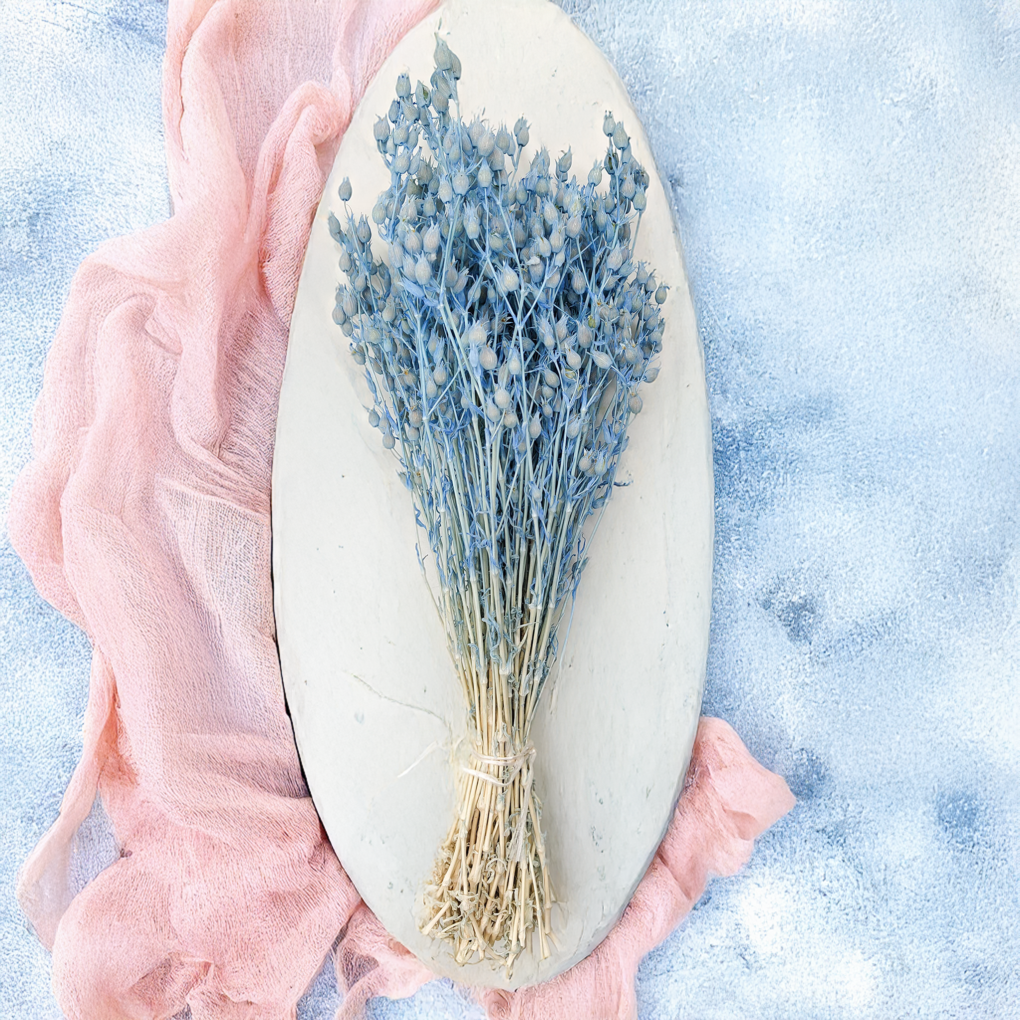 Dried and dyed flower – long-lasting and maintenance-free. Pairs beautifully with whites, sand tones, greys, and pastels.