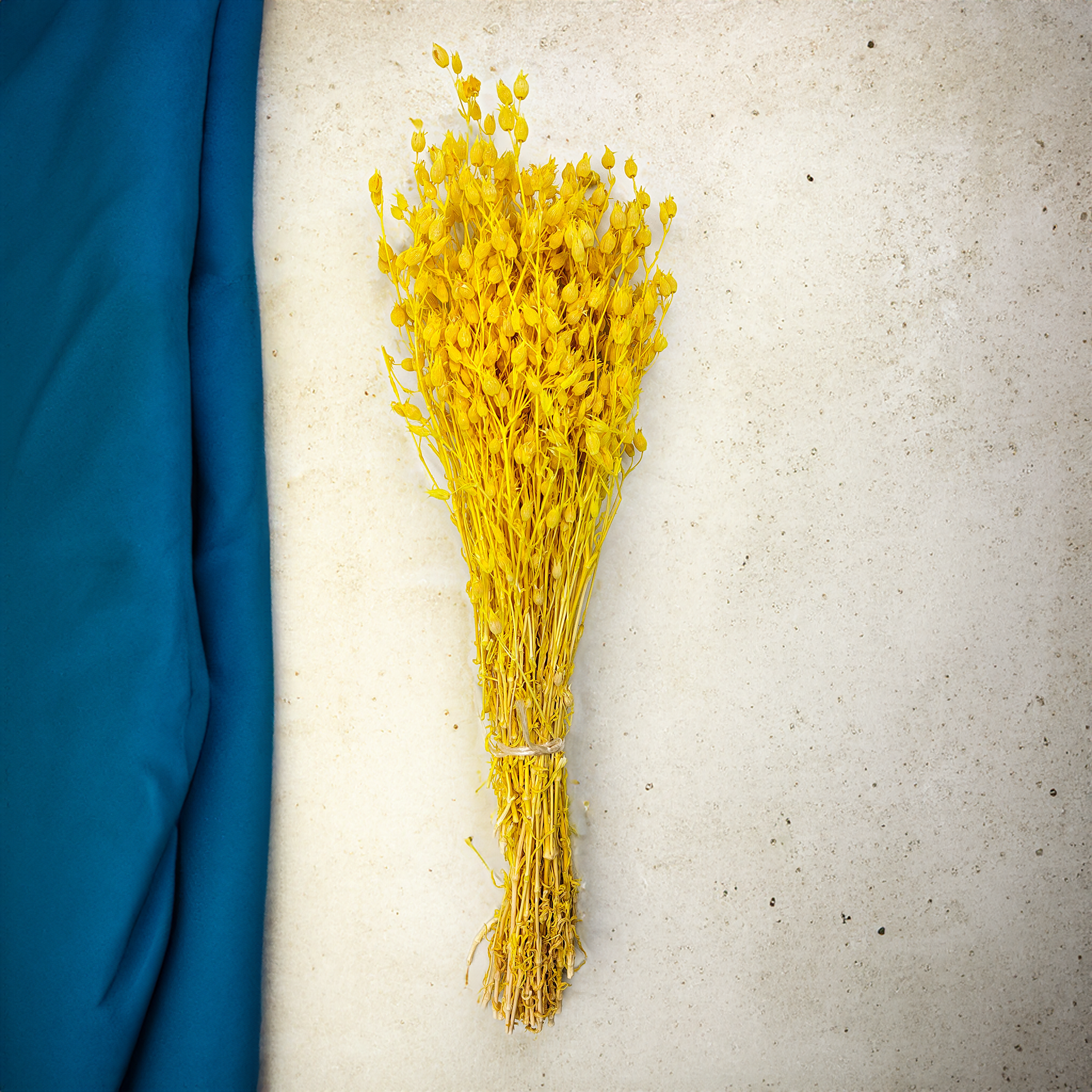 Dyed and dried – lightweight, long-lasting and maintenance-free. Matches well with natural tones like white, green or soft blue.