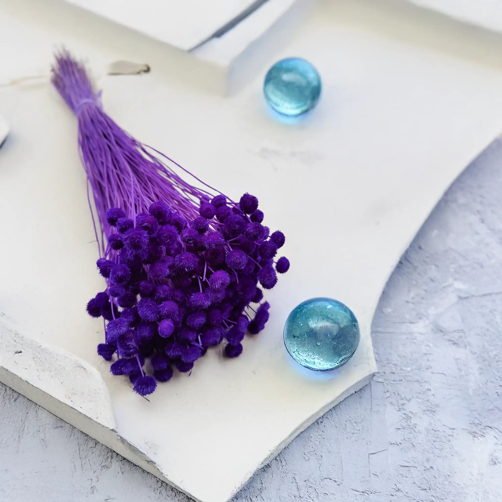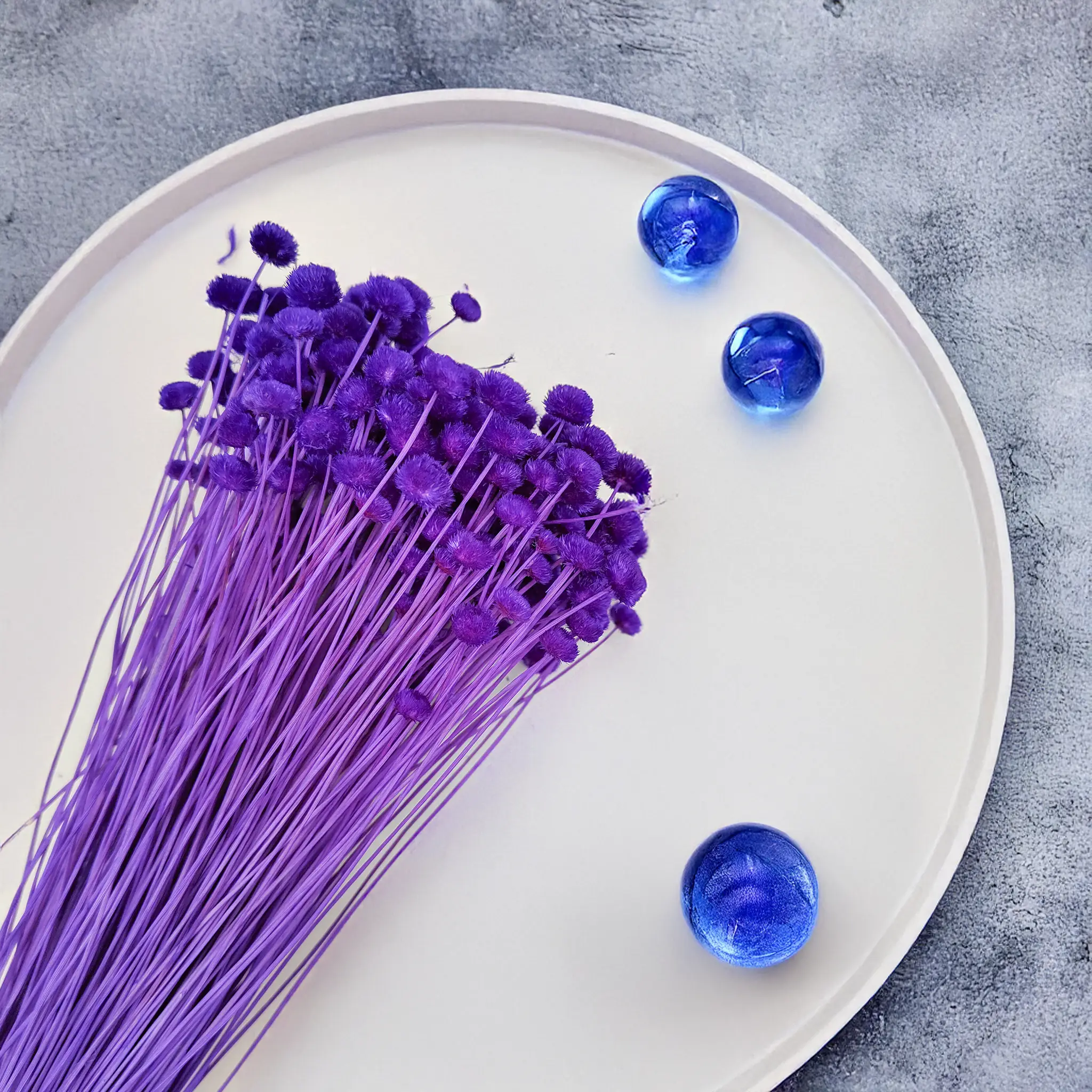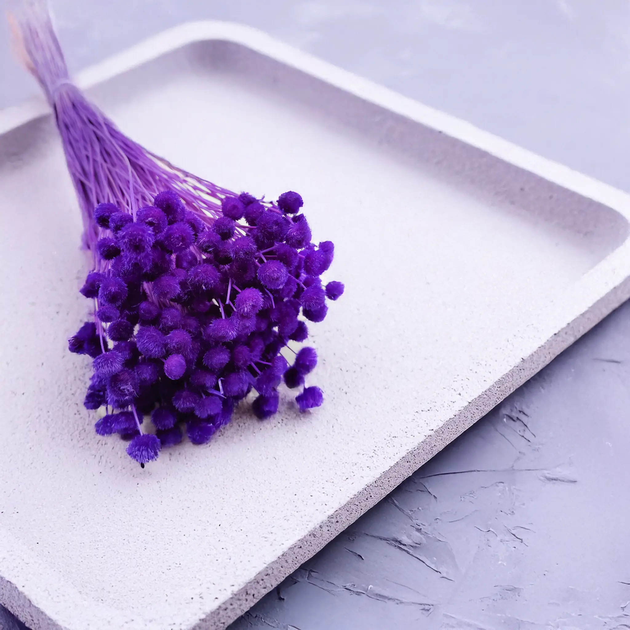 Botao Amarelino in royal purple adds a touch of luxury and bold color to any floral arrangement. The small, button-like blooms create a unique texture and visual impact, perfect for glamour bouquets or artistic decor.