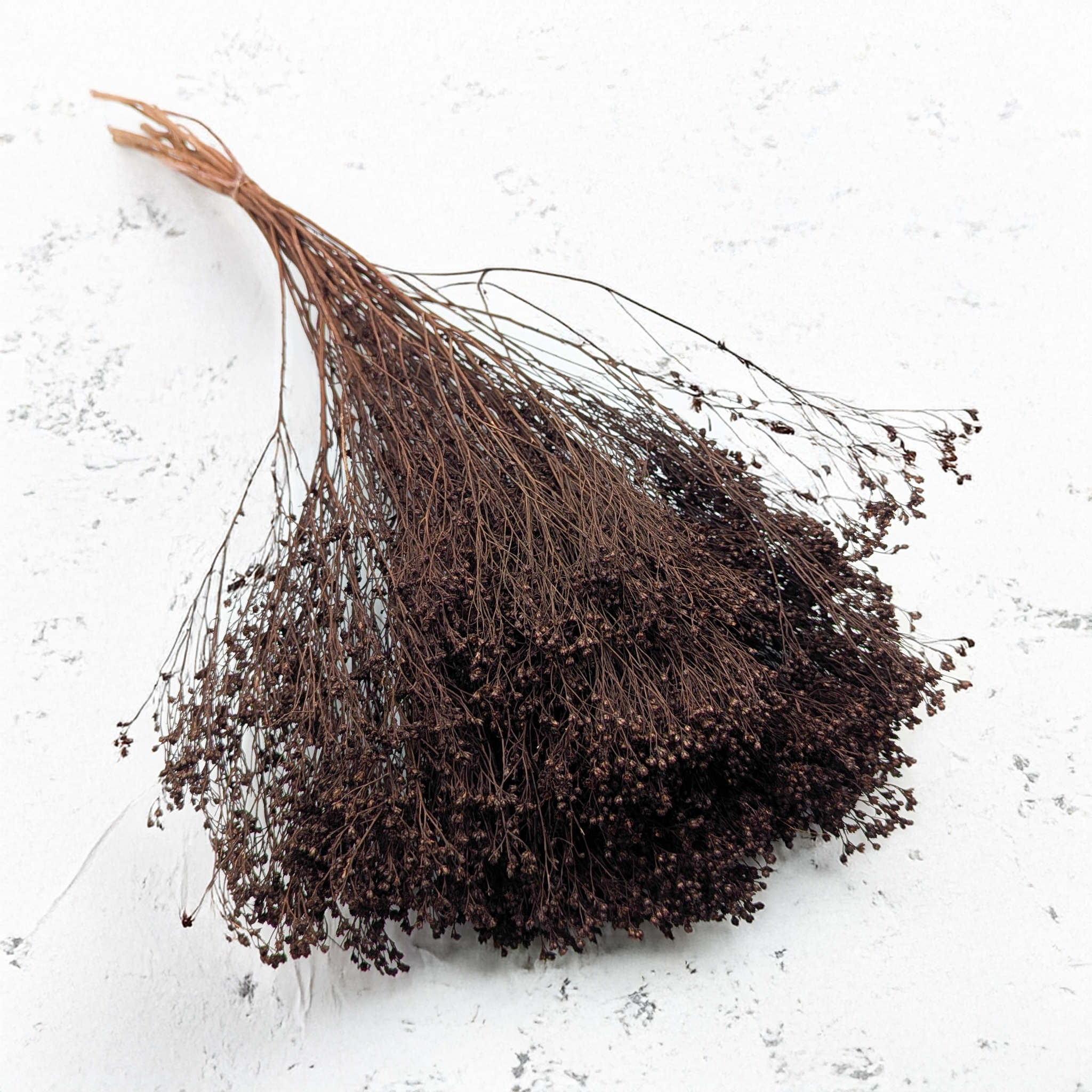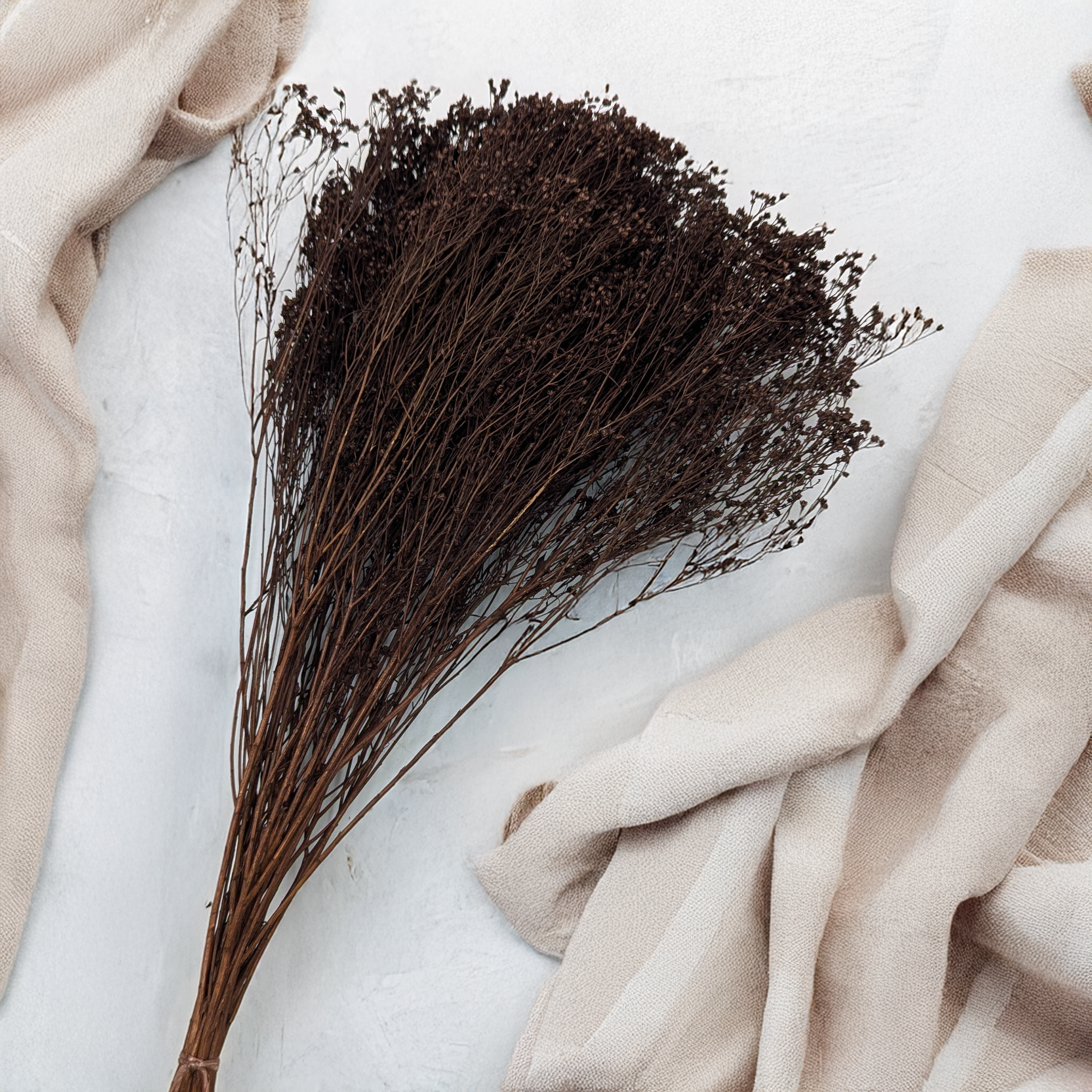 Broom Bloom in chocolate color features deep, matte brown tones reminiscent of dark chocolate. Its soft, clustered flower heads create volume and texture, blending beautifully with neutral or metallic accents such as cream, beige, gold, or sage green. The color brings both warmth and sophistication to any arrangement.