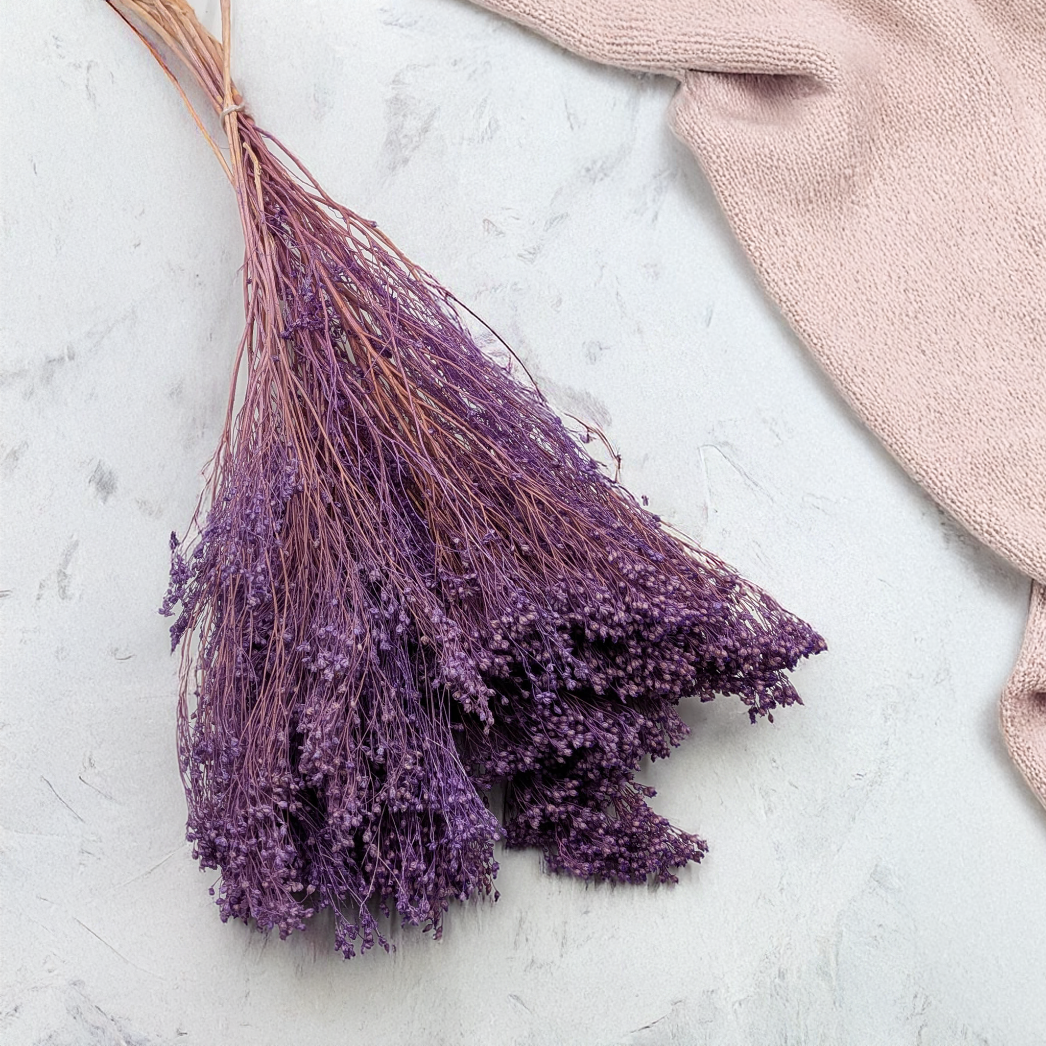 Broom Bloom, also known as Cytisus scoparius, is a decorative dried plant dyed in a soft lavender shade. With fluffy blooms and delicate texture, it brings elegance and charm to boho, rustic, or romantic arrangements.