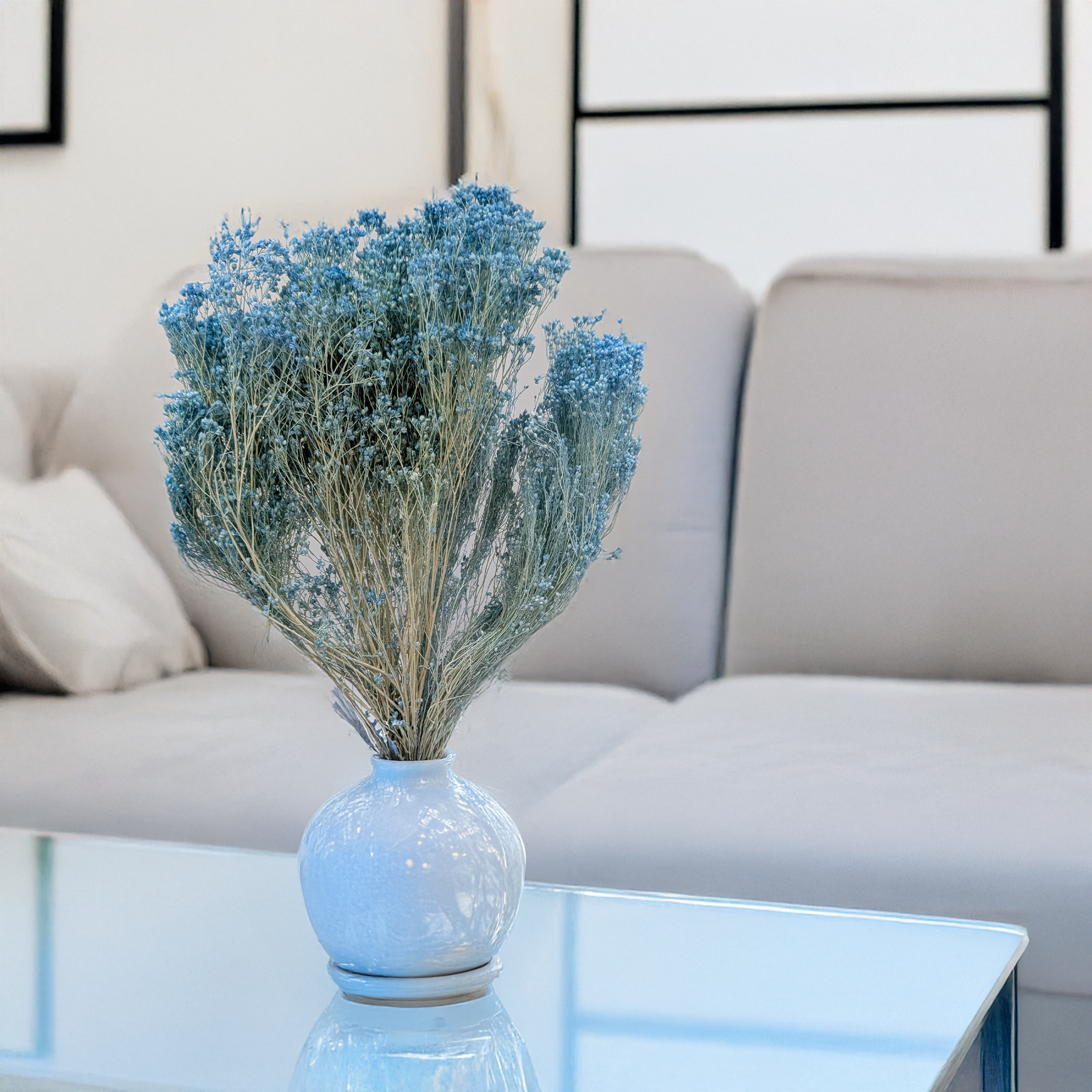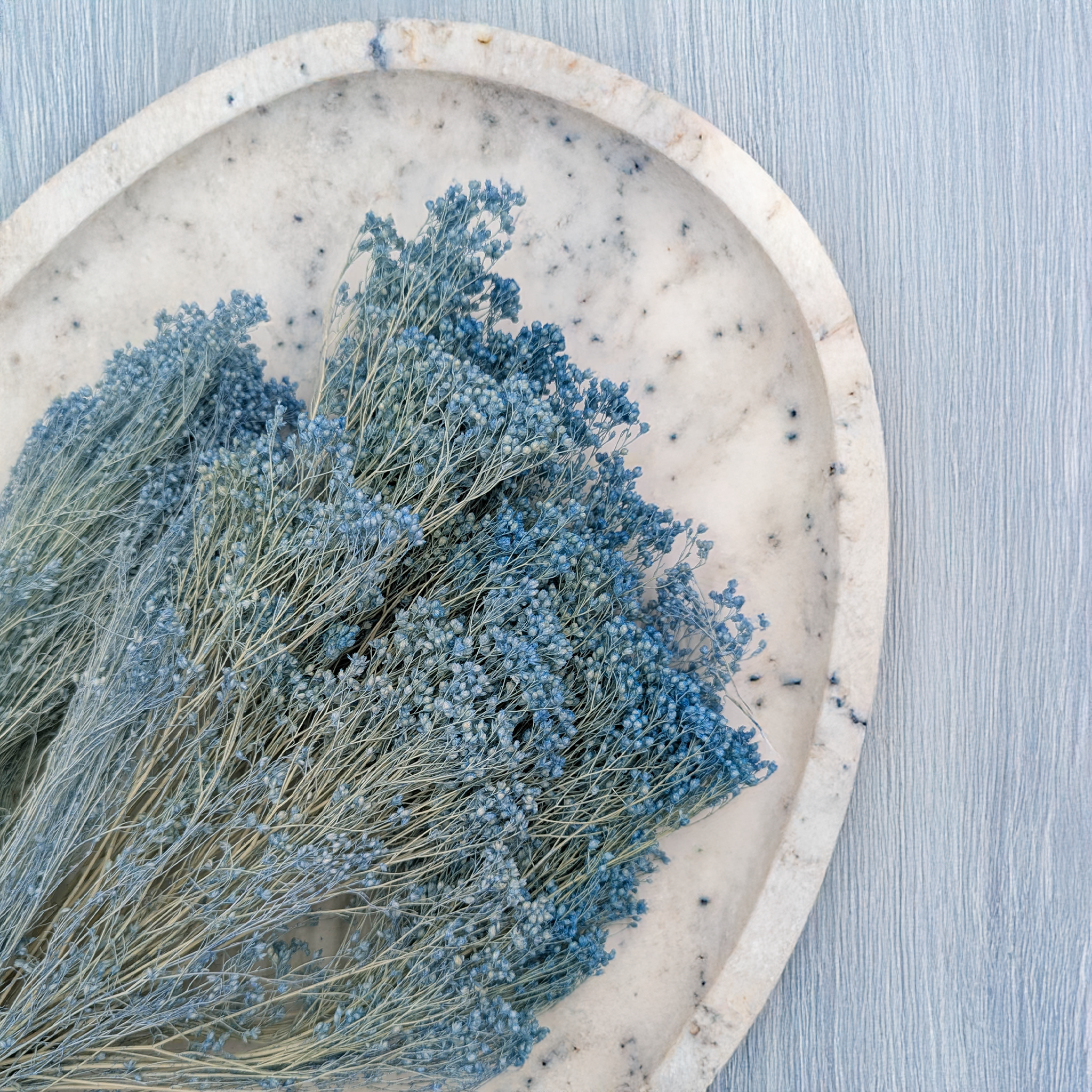 Blue broom bloom features slender stems and fluffy blooms in soft pastel blue. The color adds lightness, calm, and elegance to compositions, harmonizing beautifully with dried flowers and greenery.