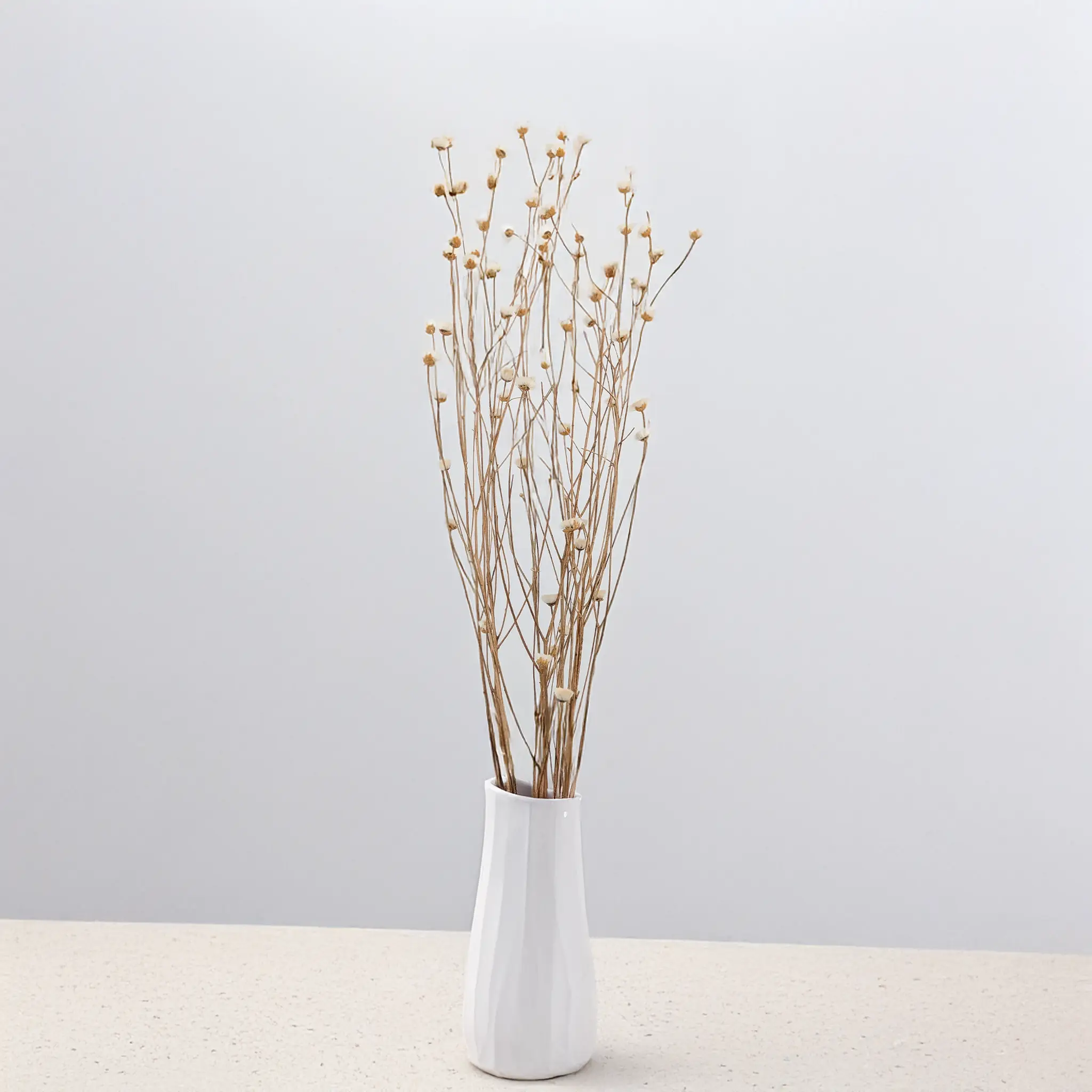 The natural white color of Dried Cornflower symbolizes simplicity and harmony, blending perfectly with other pastel tones and greens. It's an excellent choice for dried bouquets and arrangements in glass domes, introducing an elegant and peaceful accent to the interior. Its ability to retain the intensity of color makes it a perfect decorative element for long seasons, adding natural beauty and unique character to any room.