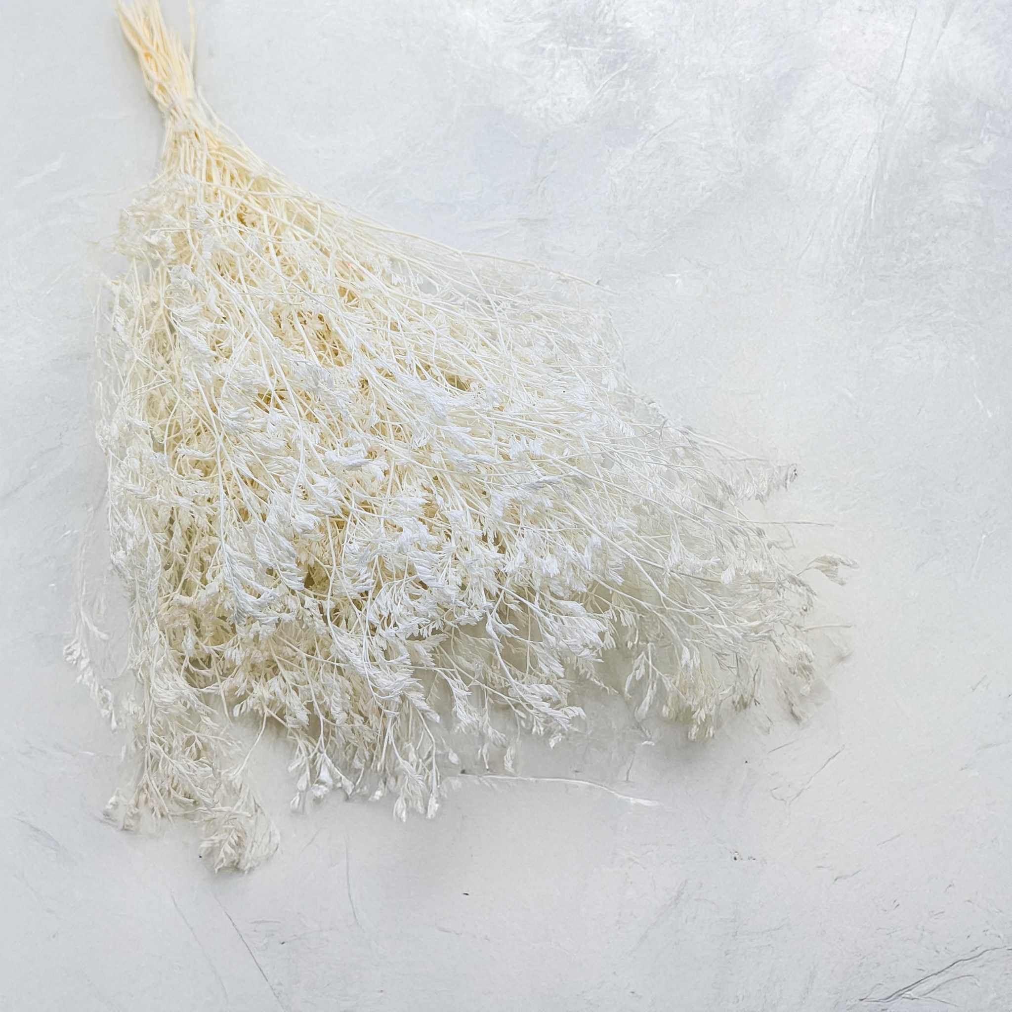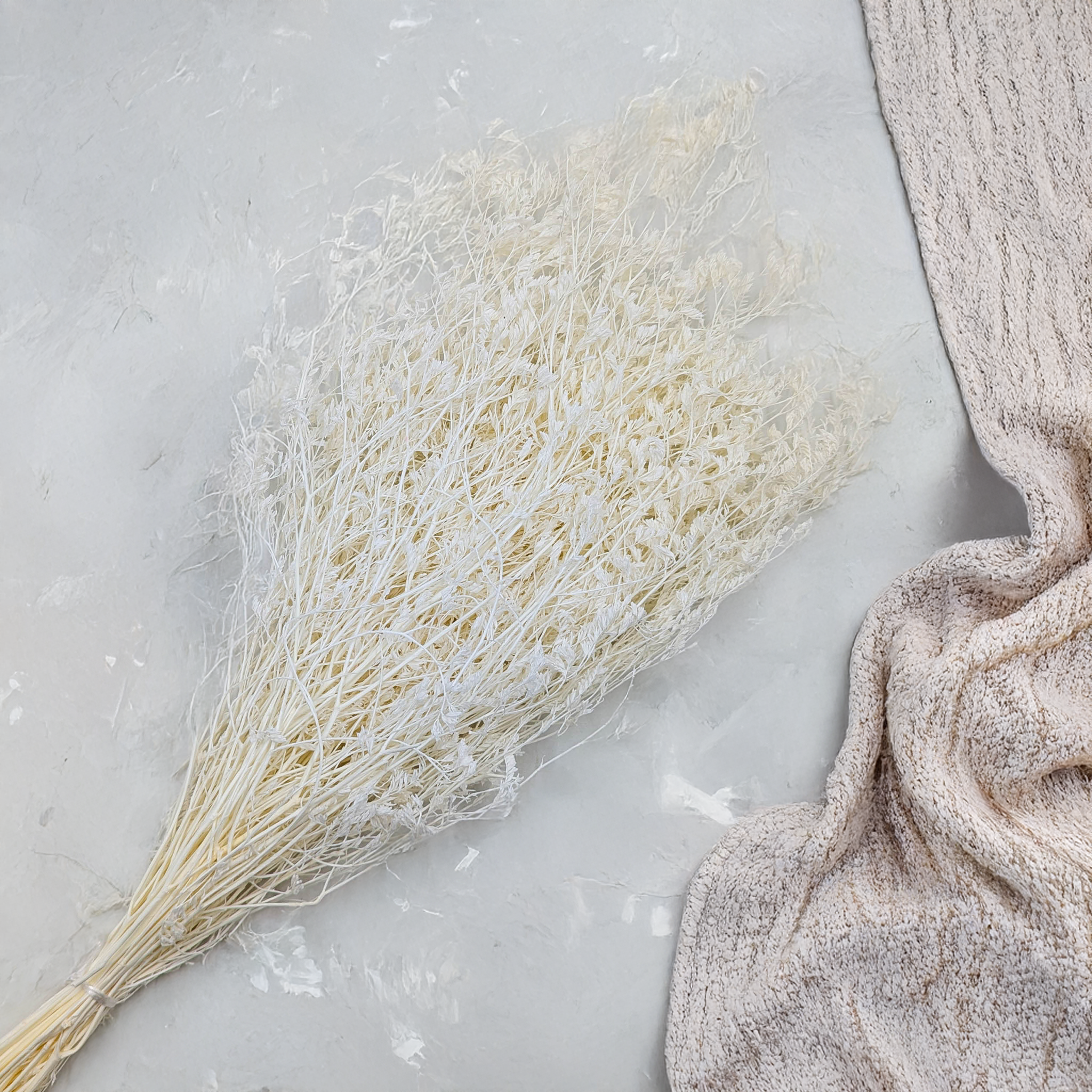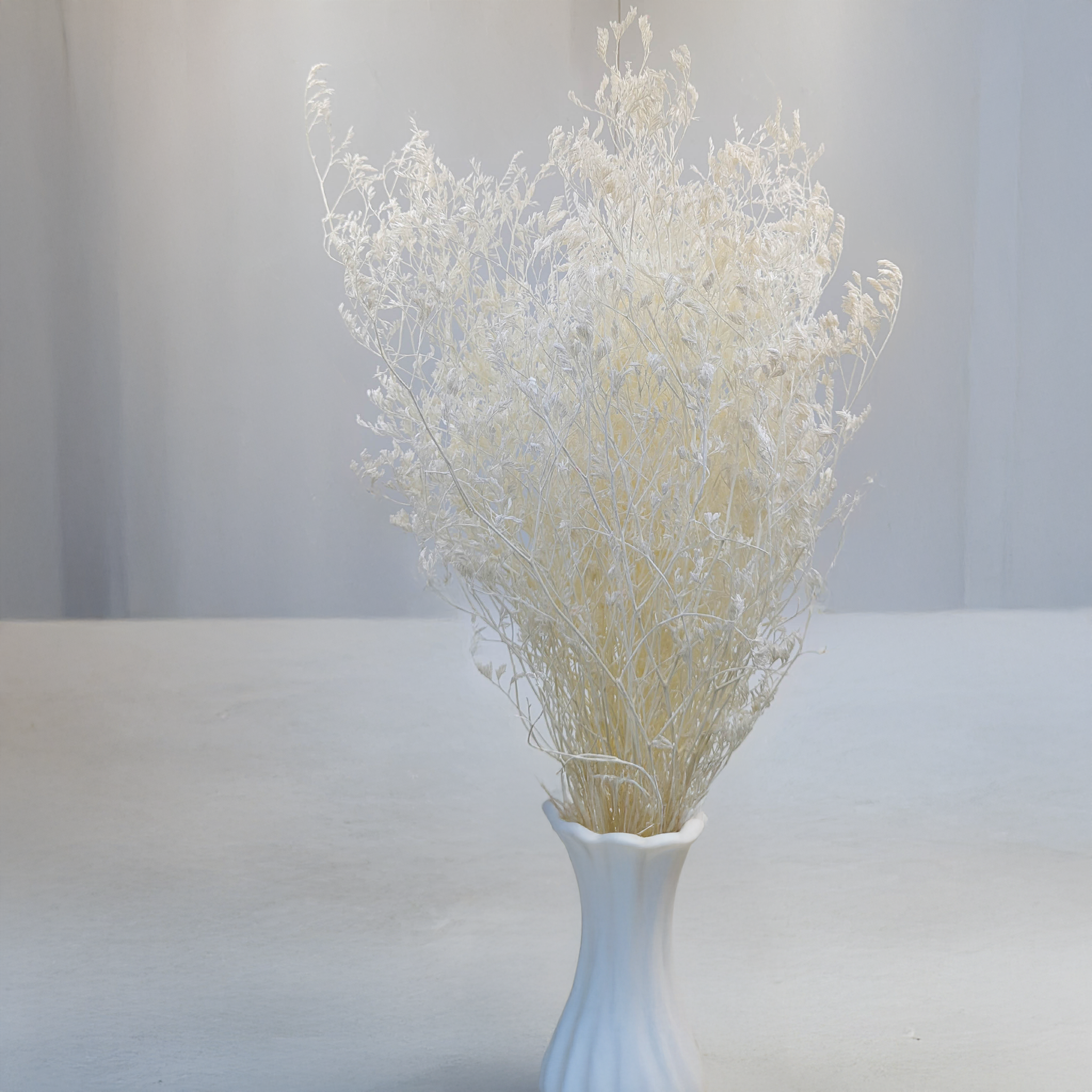 Bleached dried sea lavender (Limonium latifolium) is a refined and timeless decorative element valued for its soft, light appearance and natural matte finish. The bleaching process enhances the delicate structure of the flower heads, giving arrangements an airy, balanced and elegant character. It is an excellent choice for minimalist, wedding and modern floral designs.