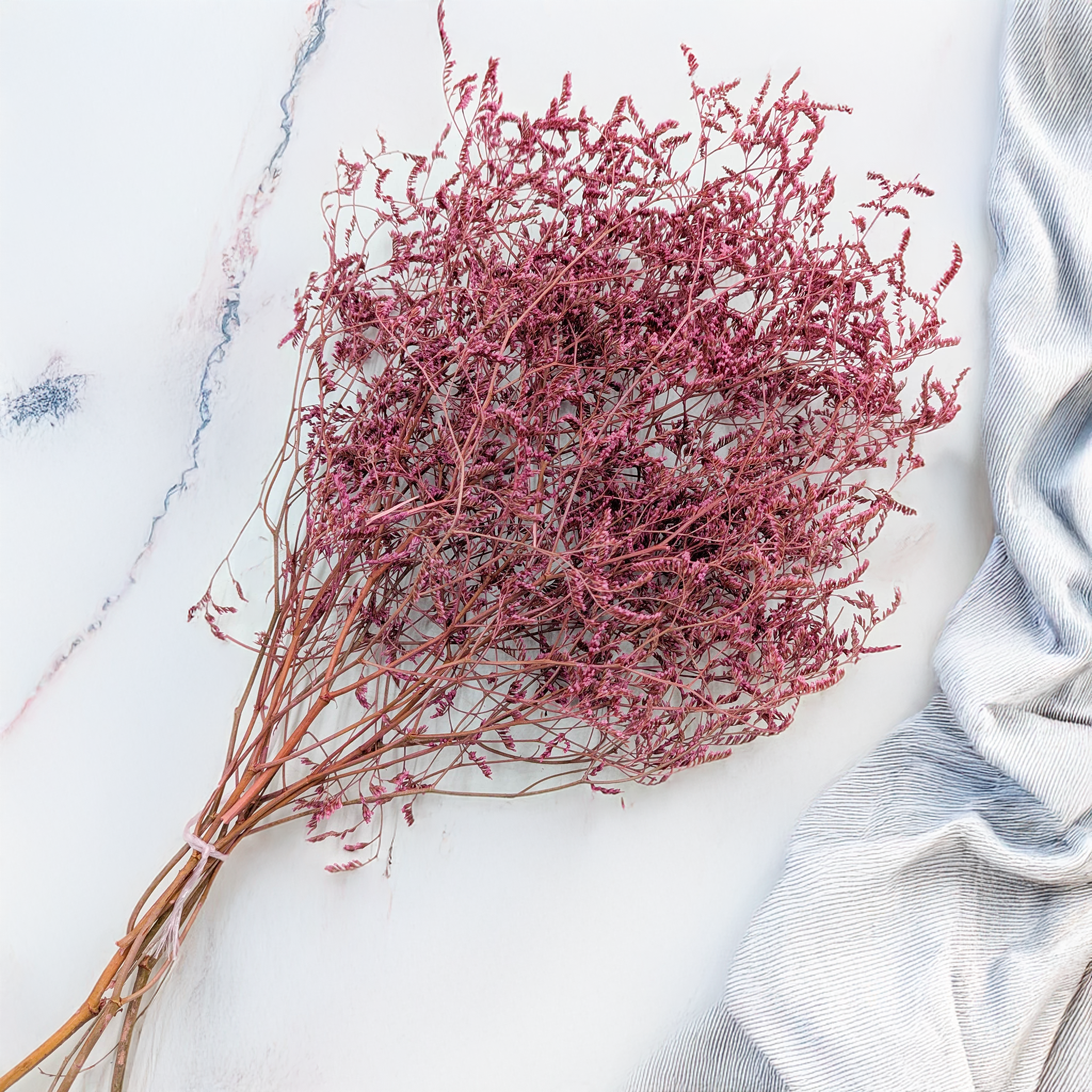 Dried statice in a pink shade is a highly decorative and romantic floral element. Its airy, lace-like structure adds lightness and volume to arrangements, while pink symbolizes love, tenderness, and warmth. Perfect for wedding, gift, and modern floral compositions.