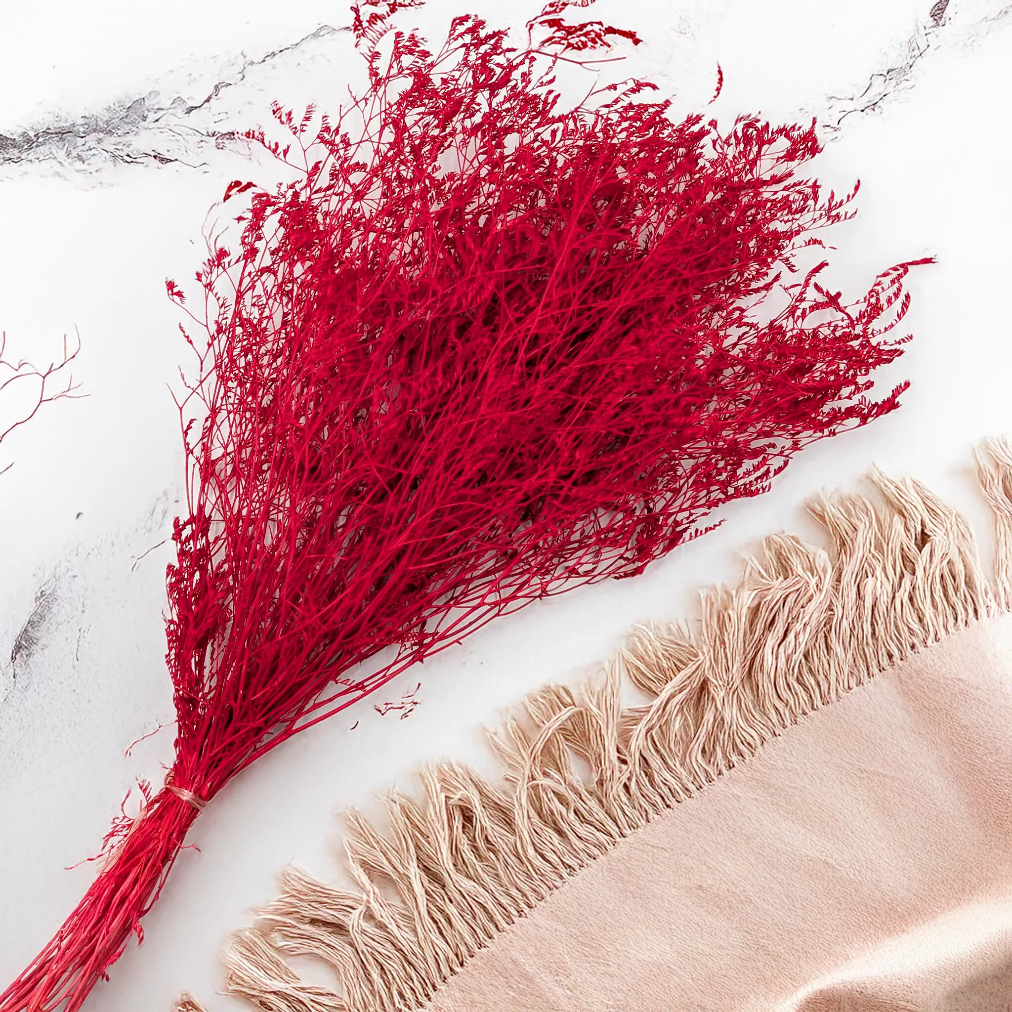 Dried broadleaf statice in a deep red shade is a bold and elegant decorative element that adds energy, depth and character to floral arrangements. Its airy, branching structure balances the intensity of the colour, creating a striking yet harmonious accent. Red symbolises passion, strength and emotion – perfect for eye-catching compositions.