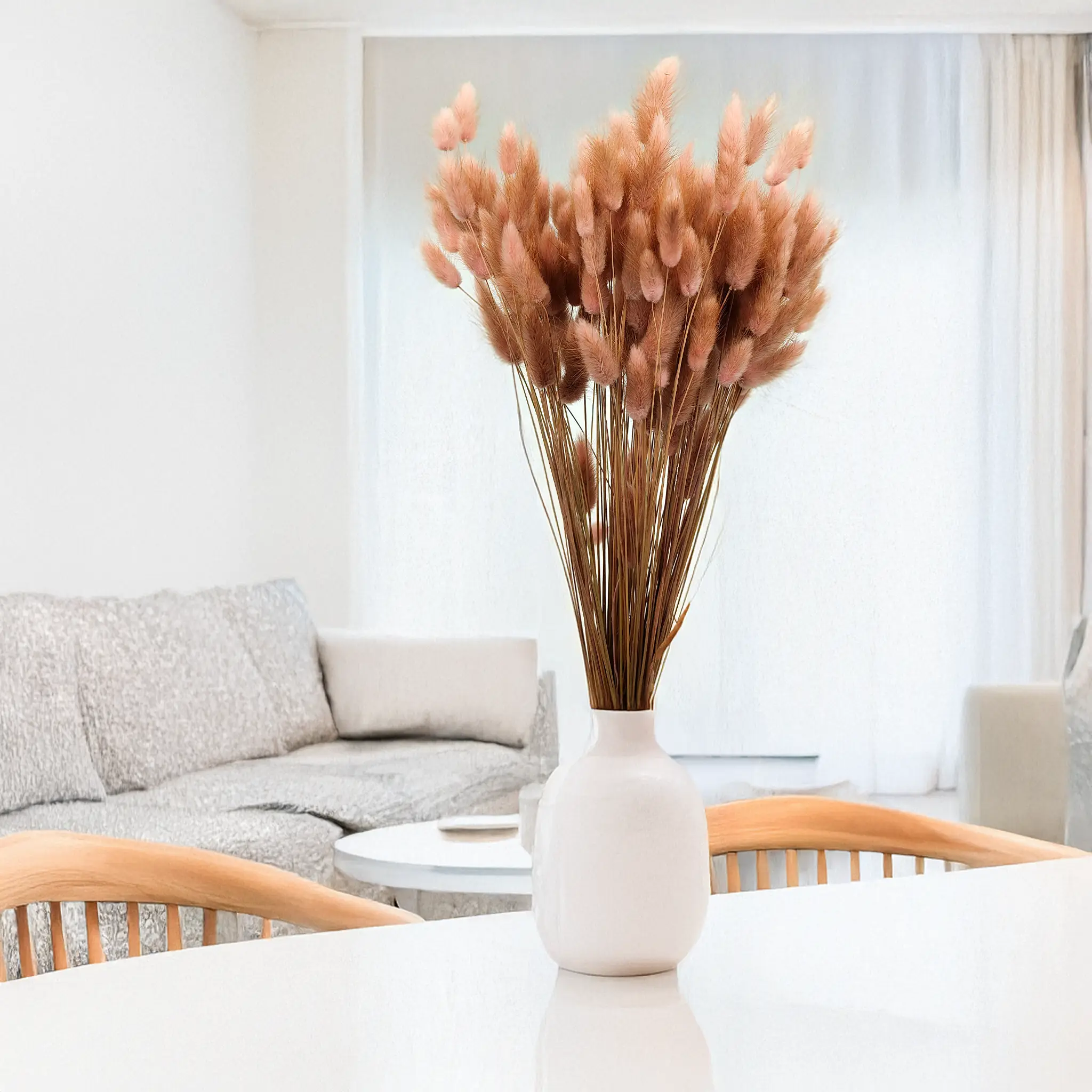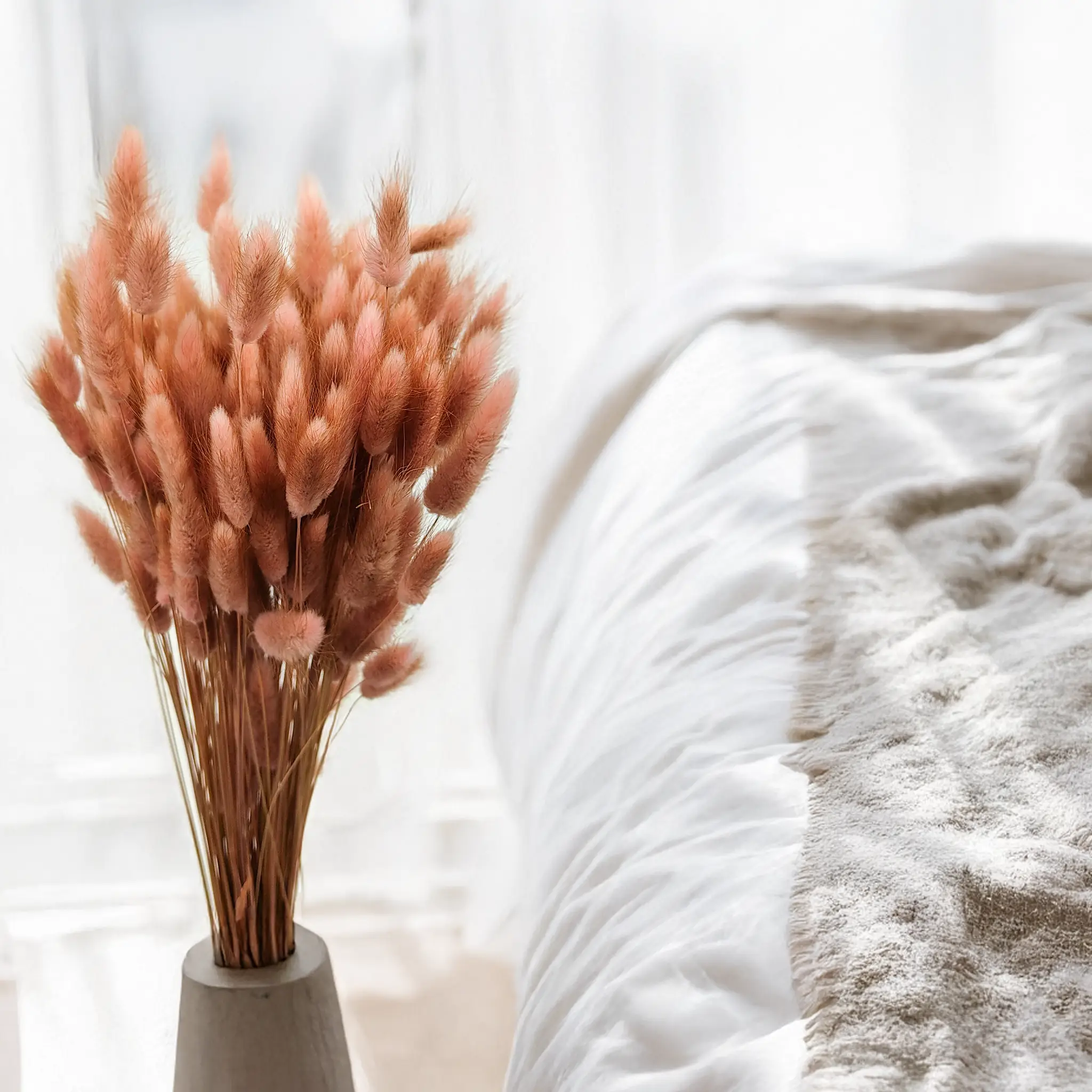 Antique rose dried Lagurus (Bunny Tails) features a delicate, dusty pink tone that blends vintage elegance with romantic softness. This muted shade symbolizes tenderness, timelessness and refined charm. It’s the perfect choice for weddings, classic interiors, and boho-glam styling.