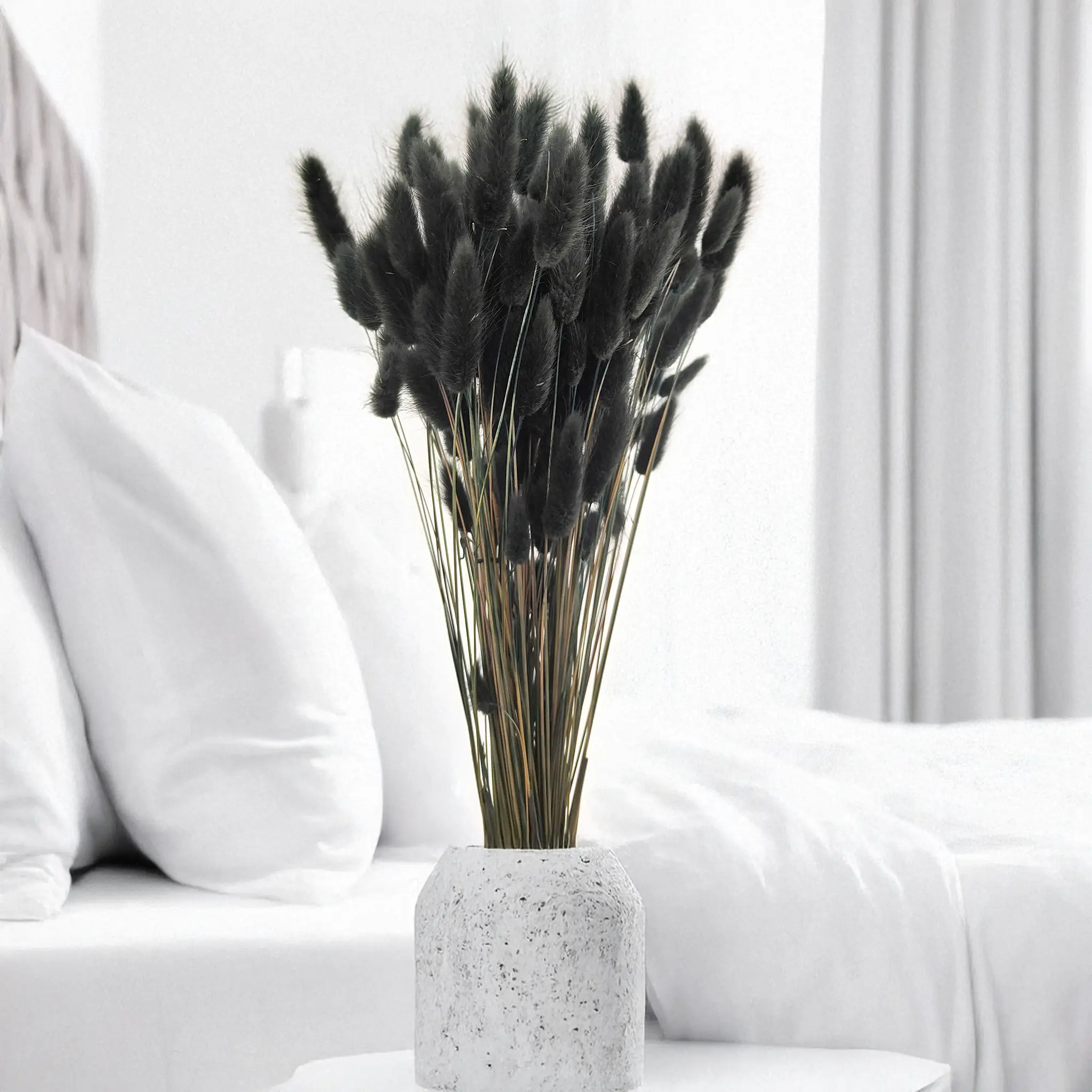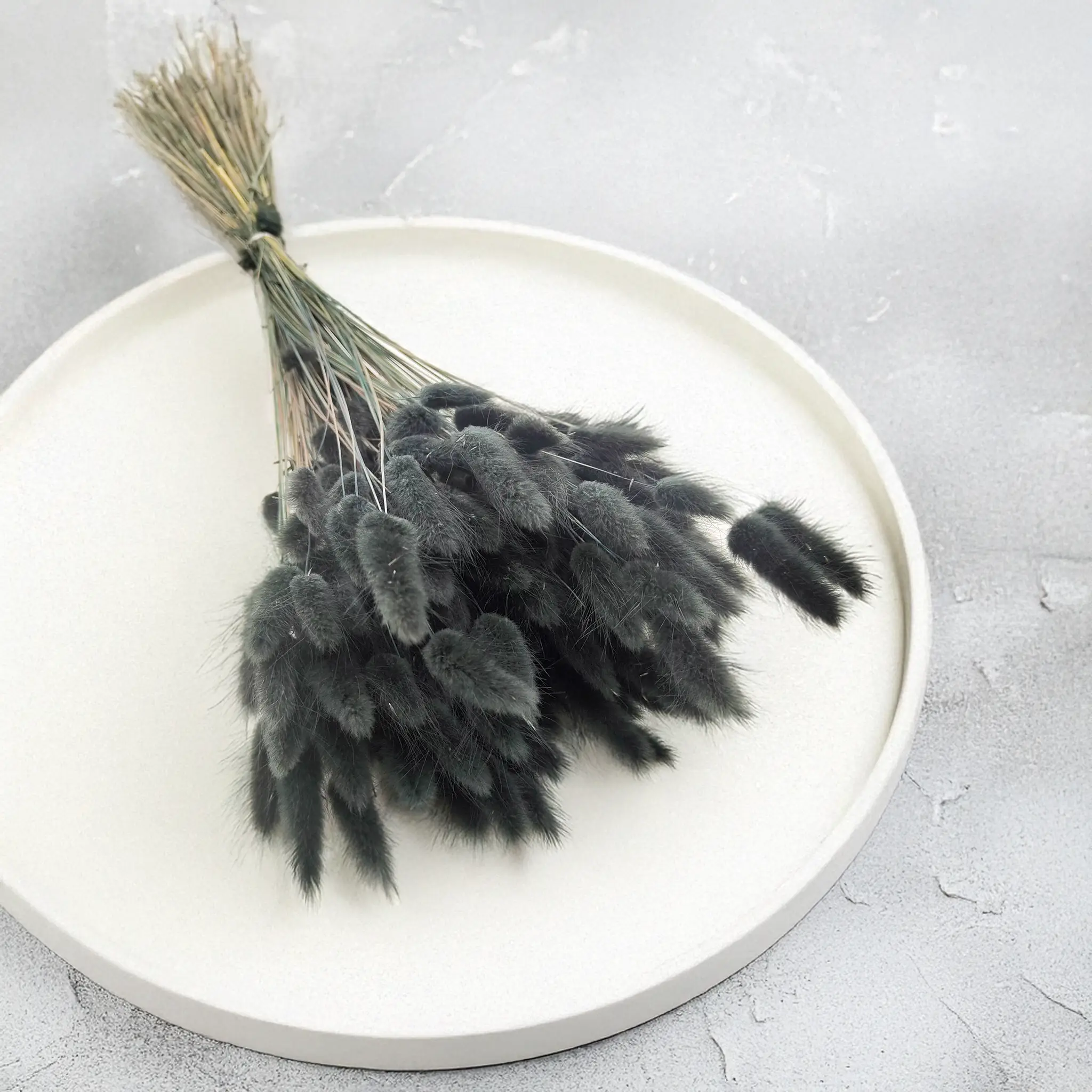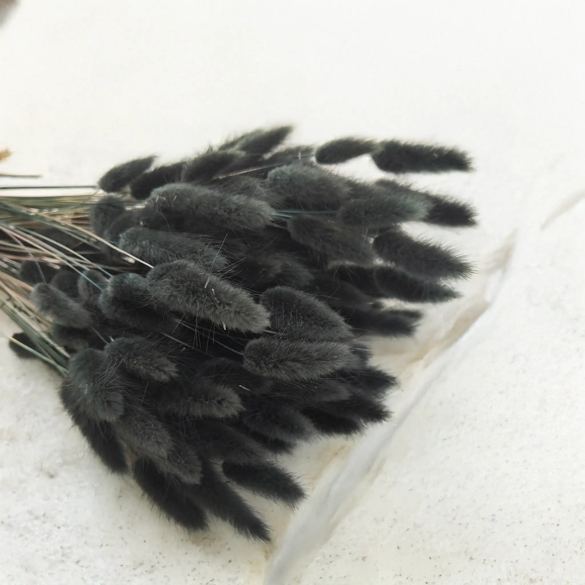 Black dried Lagurus (Bunny Tails) is a bold and refined statement piece in floral design. Its deep matte color symbolizes mystery, elegance and modernity – ideal for contemporary arrangements, gothic or industrial interiors, and dramatic styling. This dried grass adds strong contrast and visual depth, especially in monochrome or metallic color palettes.
