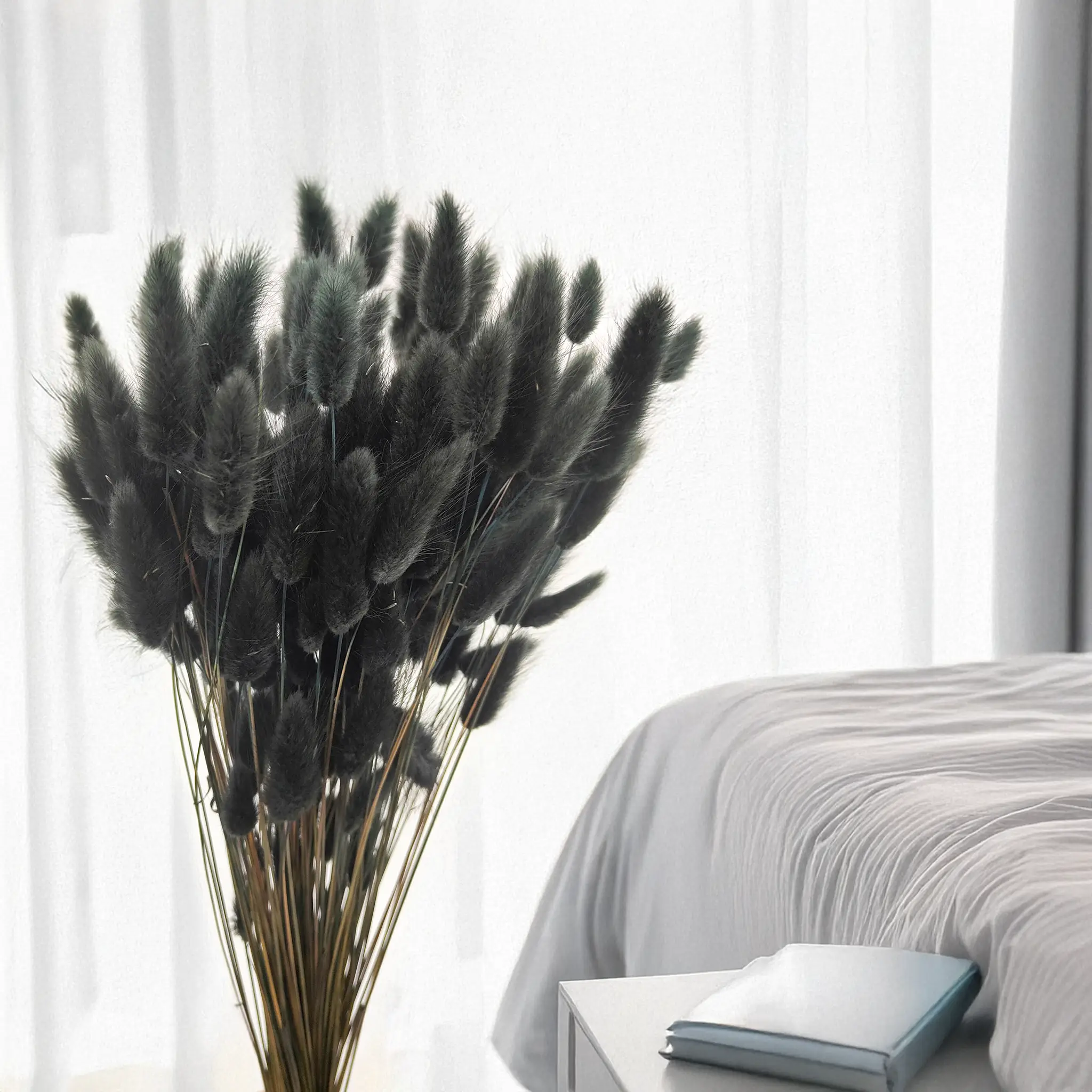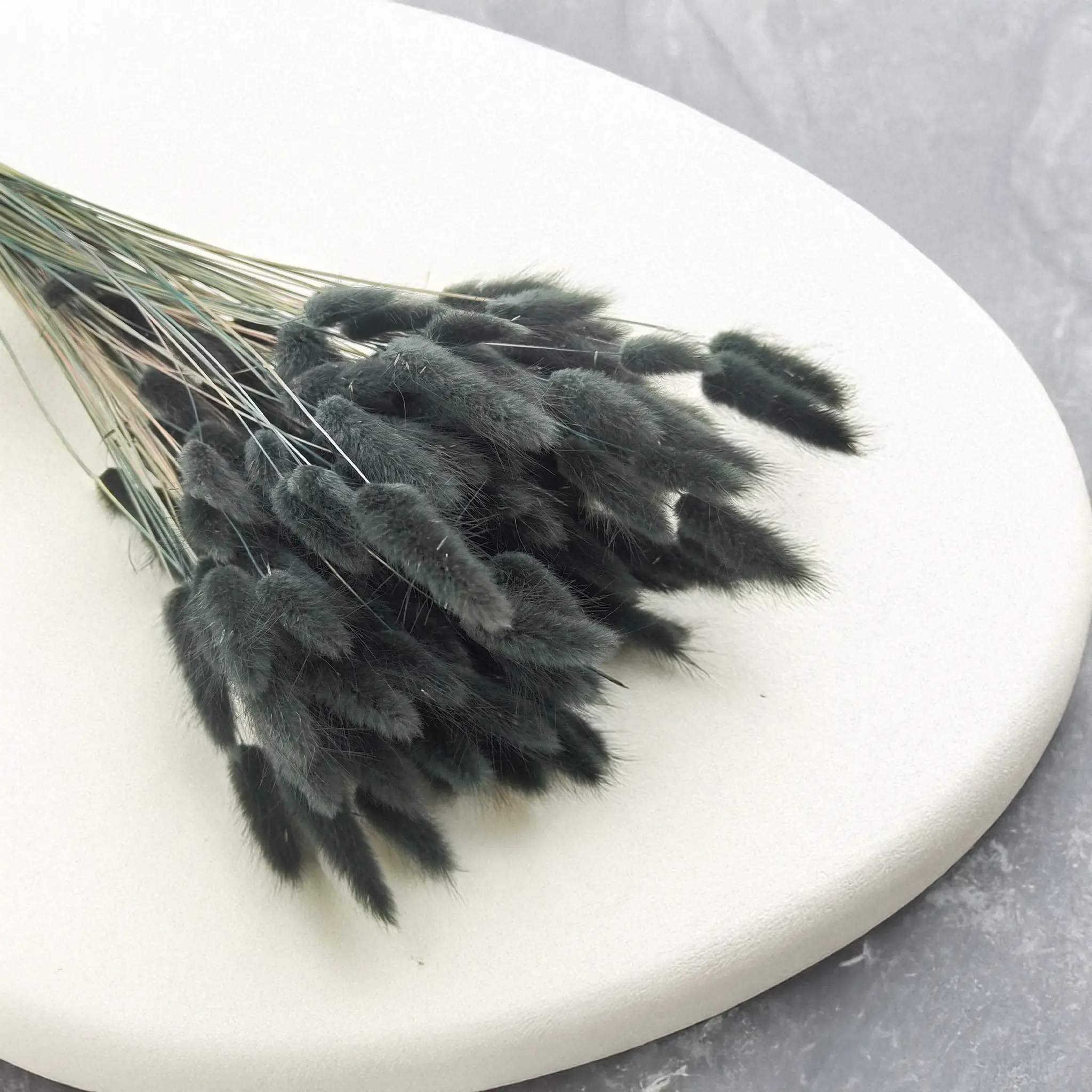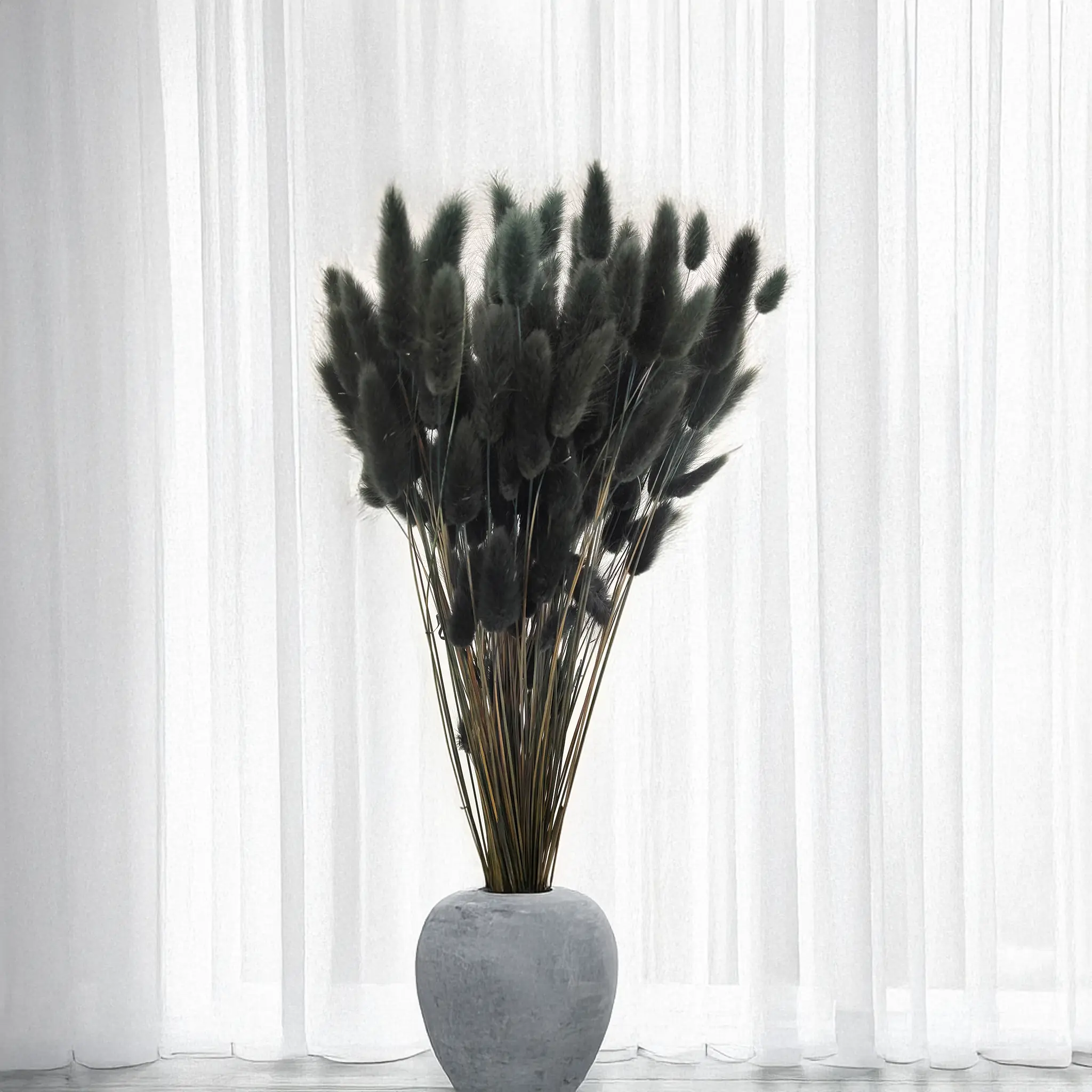 Black dried Lagurus (Bunny Tails) is a bold and refined statement piece in floral design. Its deep matte color symbolizes mystery, elegance and modernity – ideal for contemporary arrangements, gothic or industrial interiors, and dramatic styling. This dried grass adds strong contrast and visual depth, especially in monochrome or metallic color palettes.