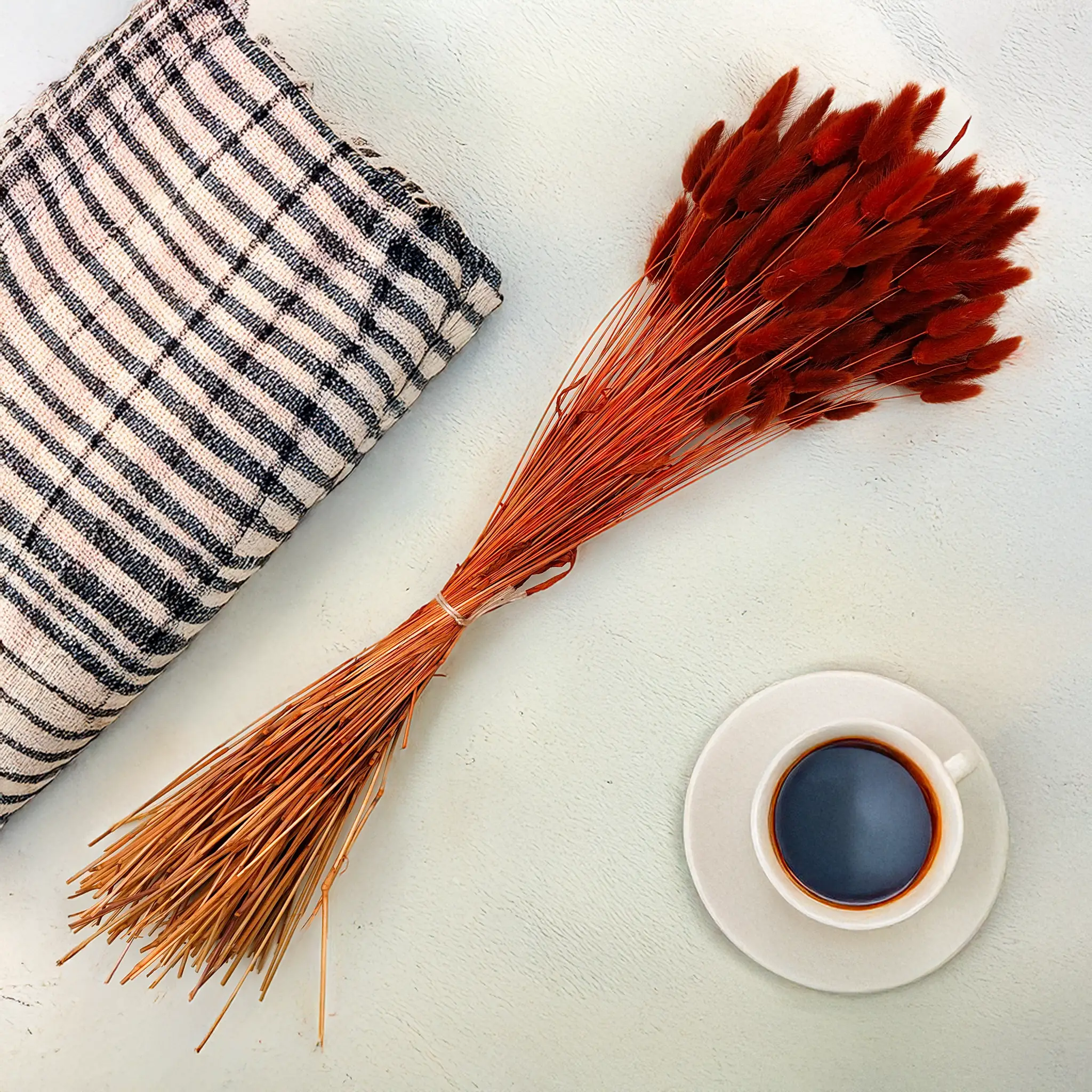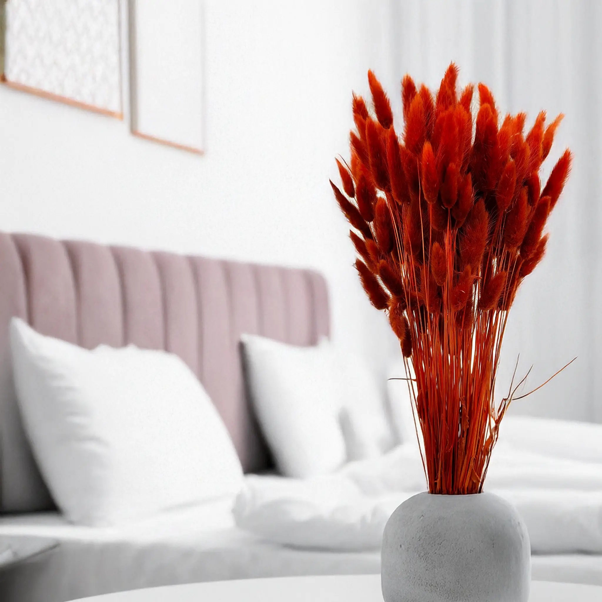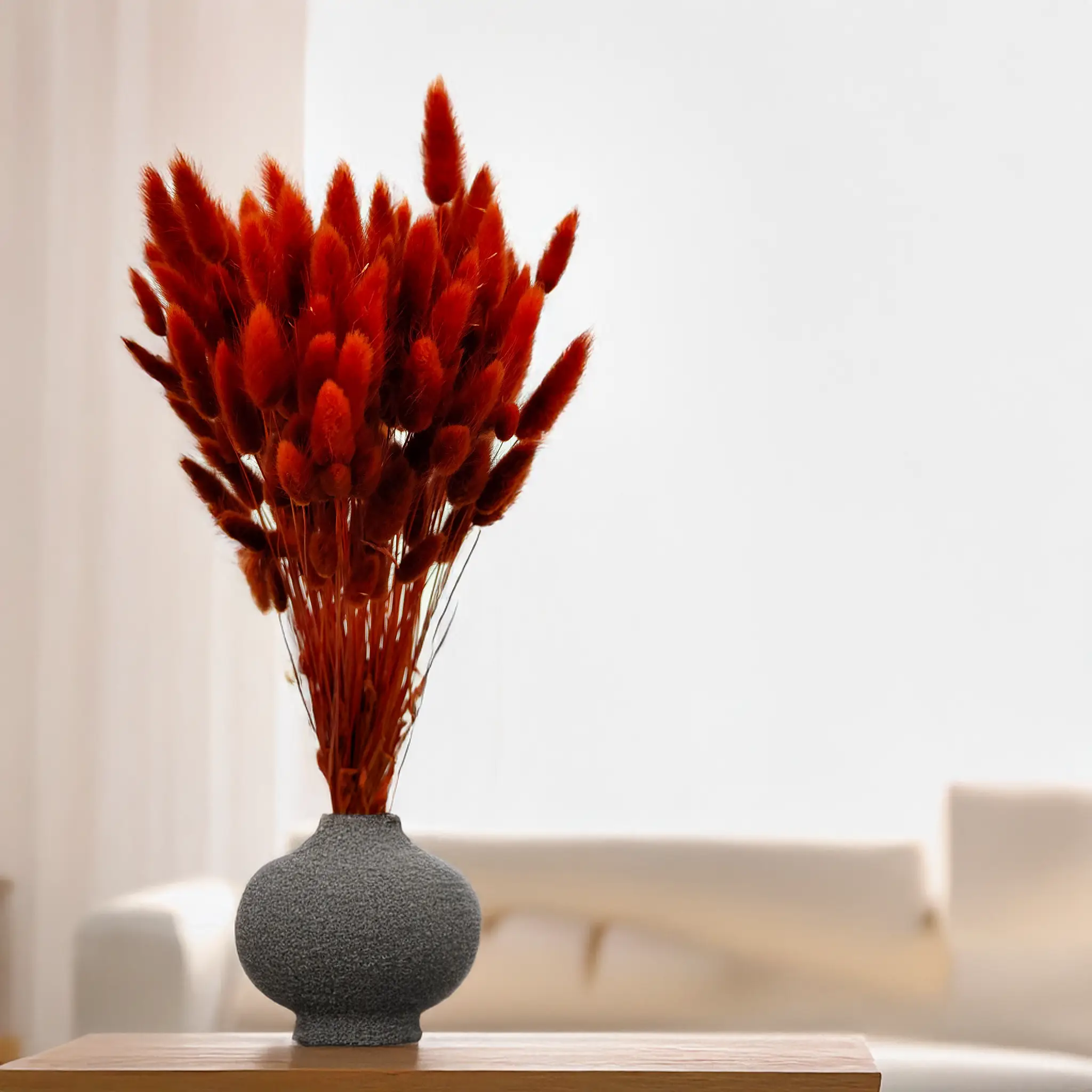 Brown dried Lagurus (Bunny Tails) brings natural warmth and depth to floral arrangements and rustic decor. Brown evokes earthiness, stability and calm – making it ideal for natural, boho, and minimalistic interiors. Its soft texture and neutral hue fit effortlessly into seasonal and year-round displays.
