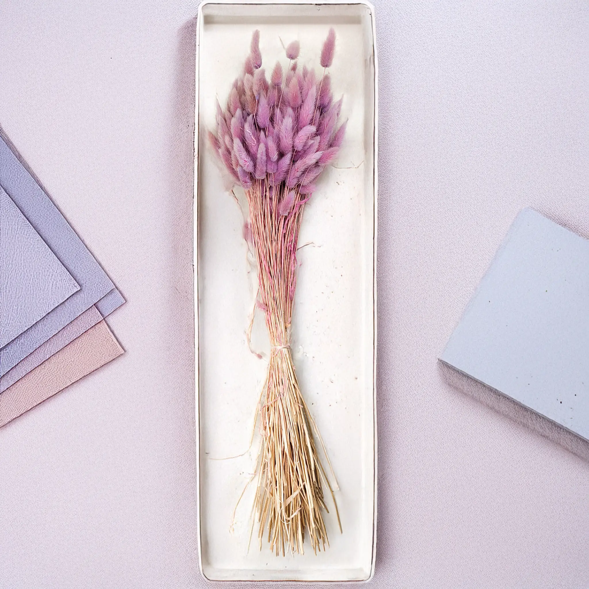 - Preserved gypsophila in white, purple or light tones,