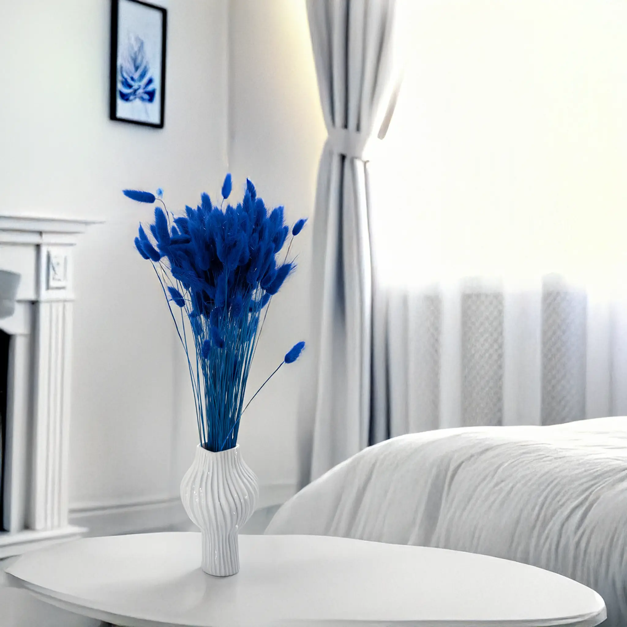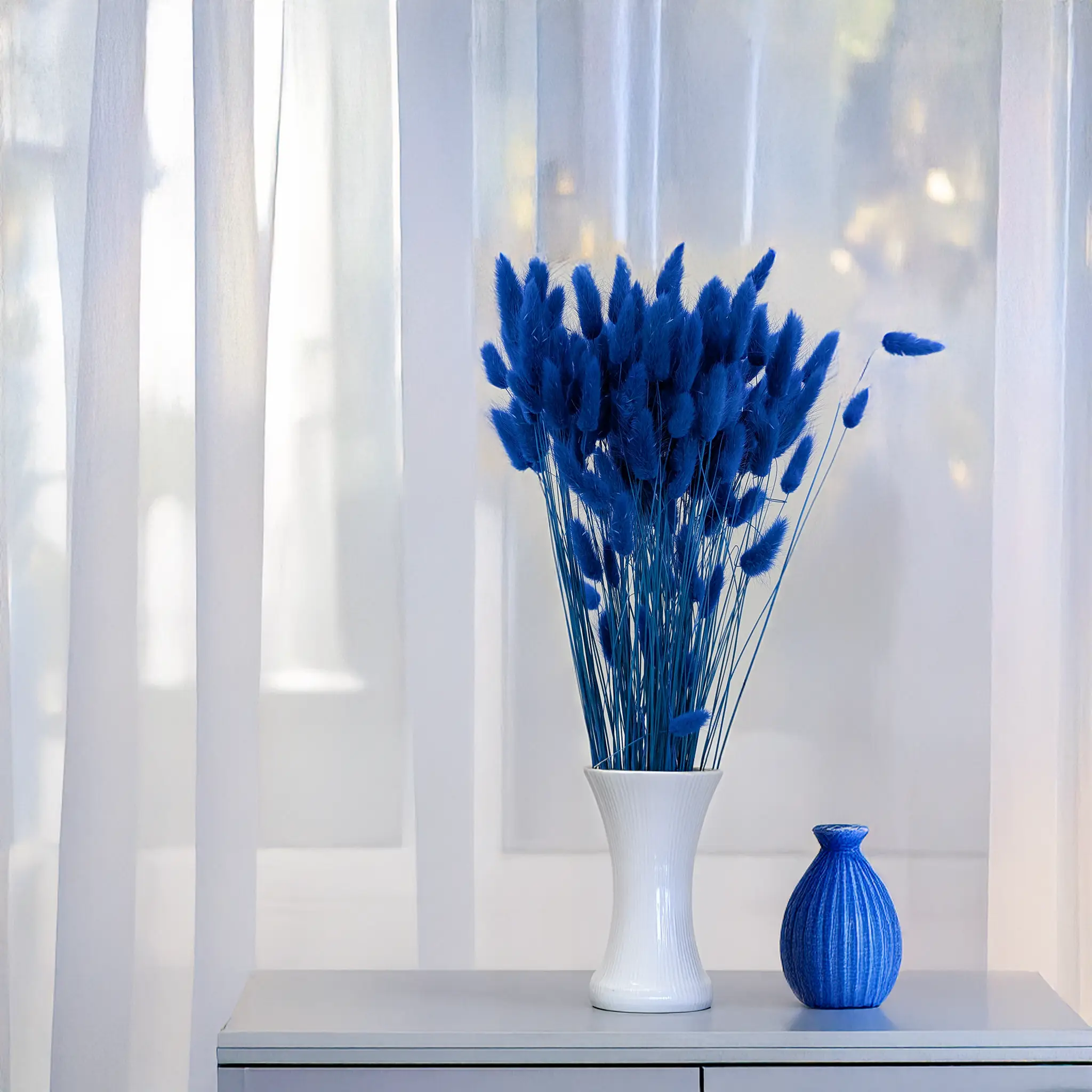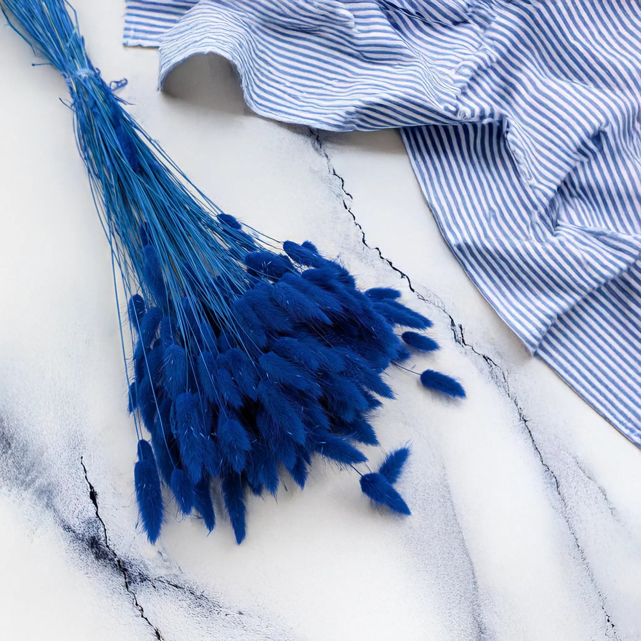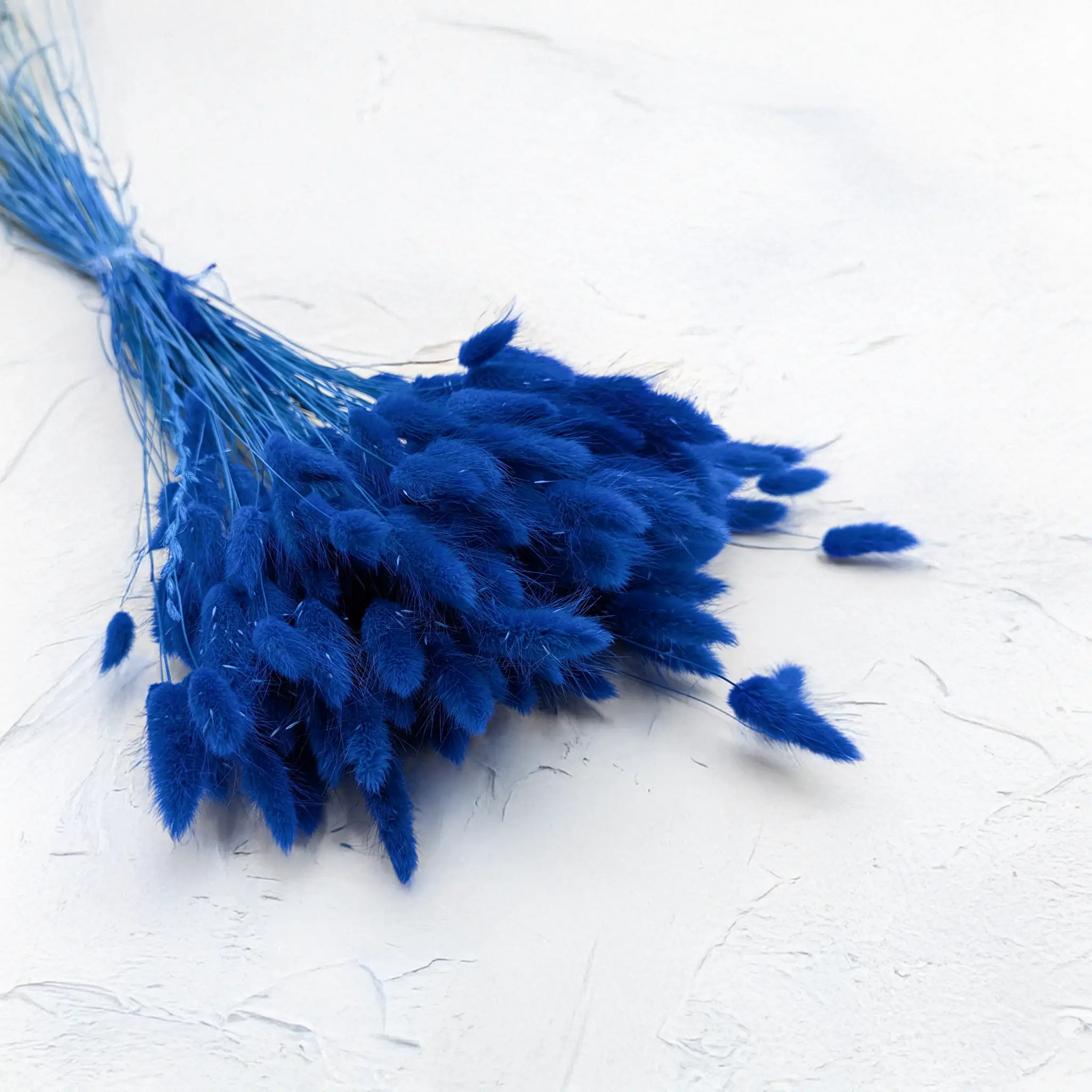 Marineblauer getrockneter Lagurus (Hasenschwanzgras) verleiht jeder floralen Komposition oder Wohnraumgestaltung eine kraftvolle und elegante Note. Dieser tiefe, satte Farbton steht für Raffinesse, Selbstbewusstsein und Ruhe – perfekt für moderne, klassische oder maskuline Interieurs. Die fluffige Textur und die starke visuelle Präsenz machen ihn ideal für eindrucksvolle Designs.