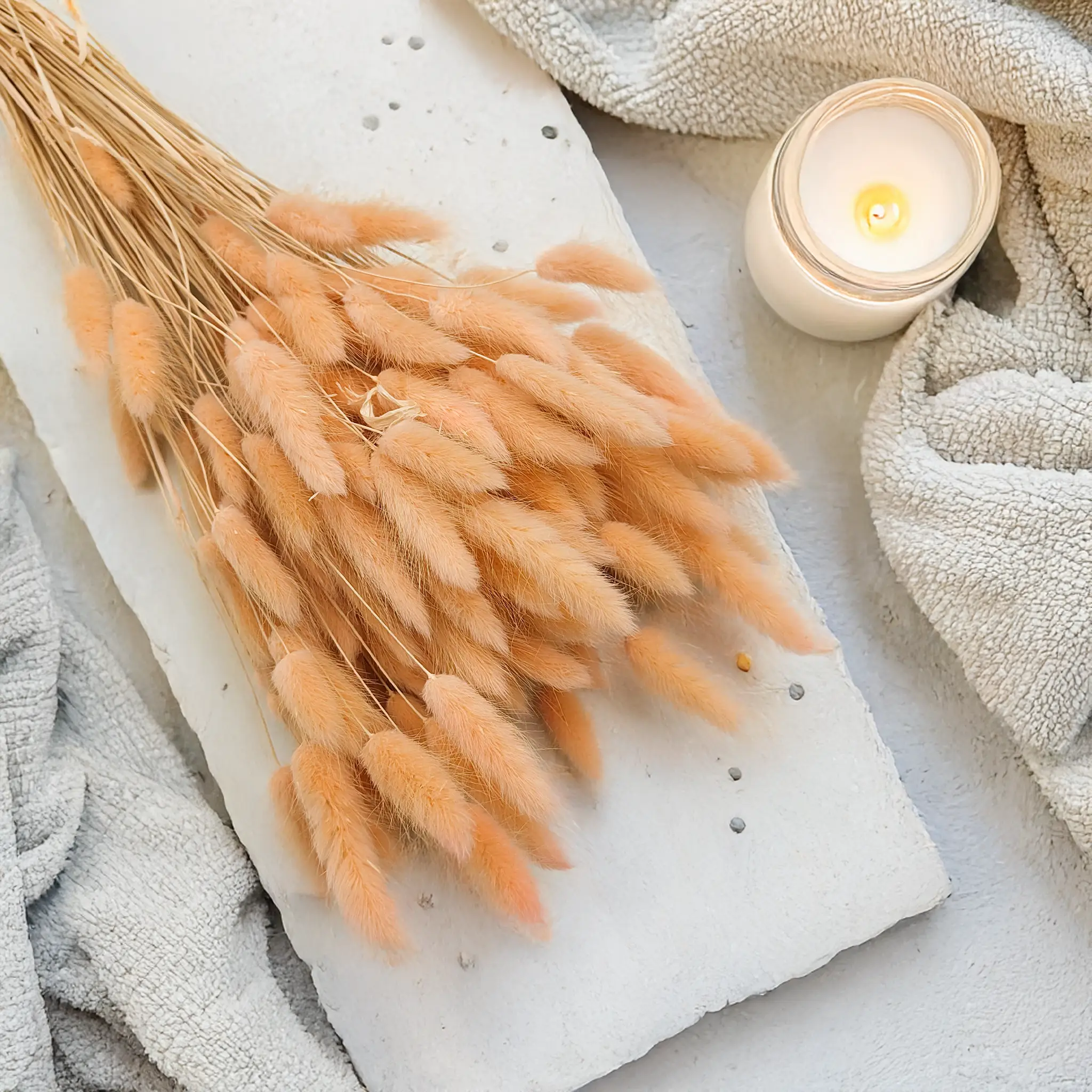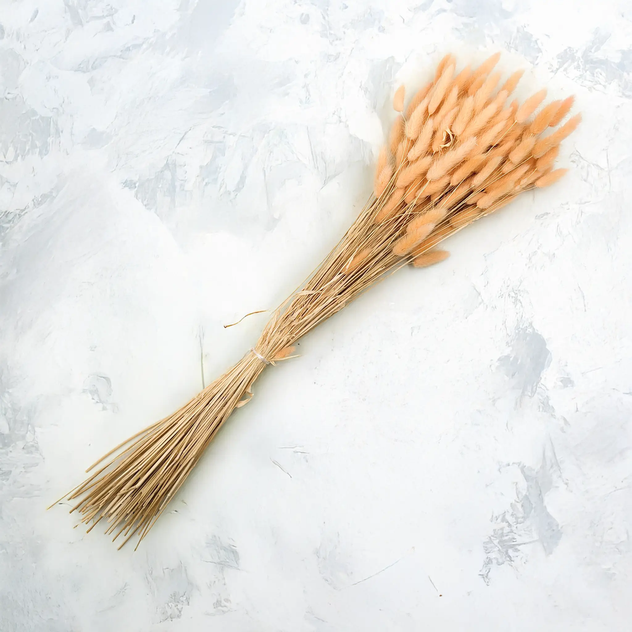 Peach dried Lagurus (Bunny Tails) offers a soft, romantic touch to floral designs and creative decor. The warm pastel hue symbolizes tenderness, freshness and harmony – perfect for weddings, boho interiors and DIY arrangements. Its fluffy texture adds charm and lightness to any bouquet or display.