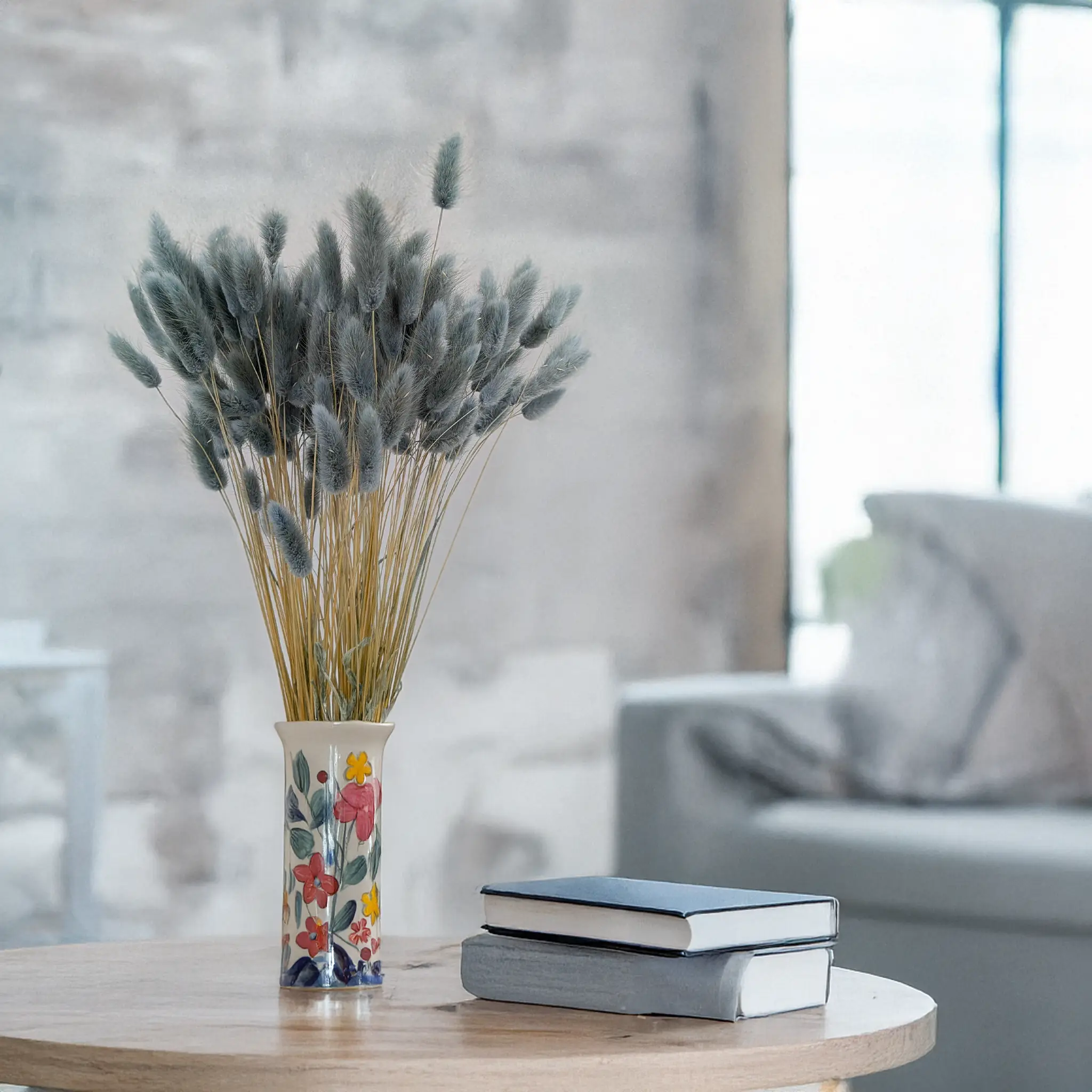 - Mini pampas, oats, flax in soft neutral tones.