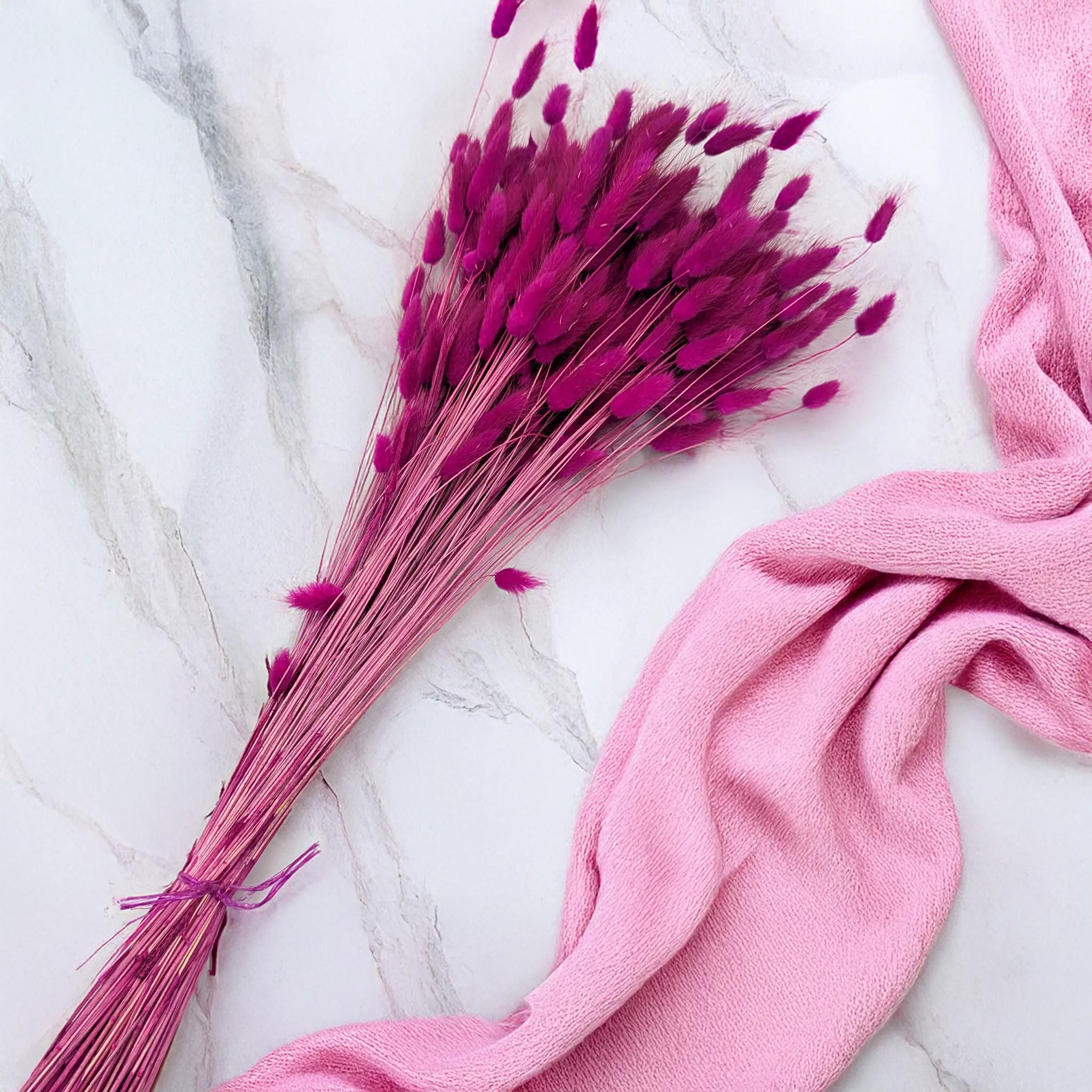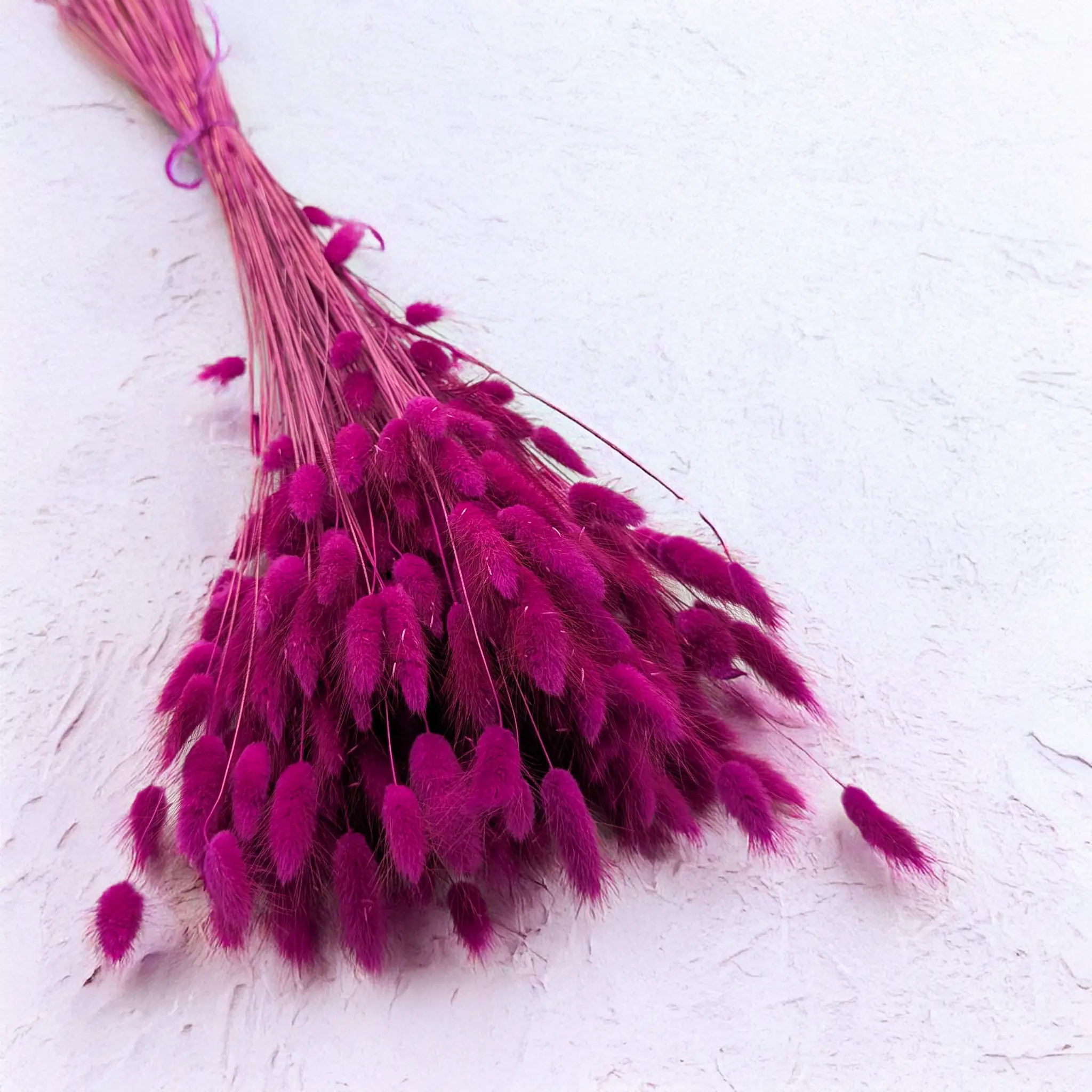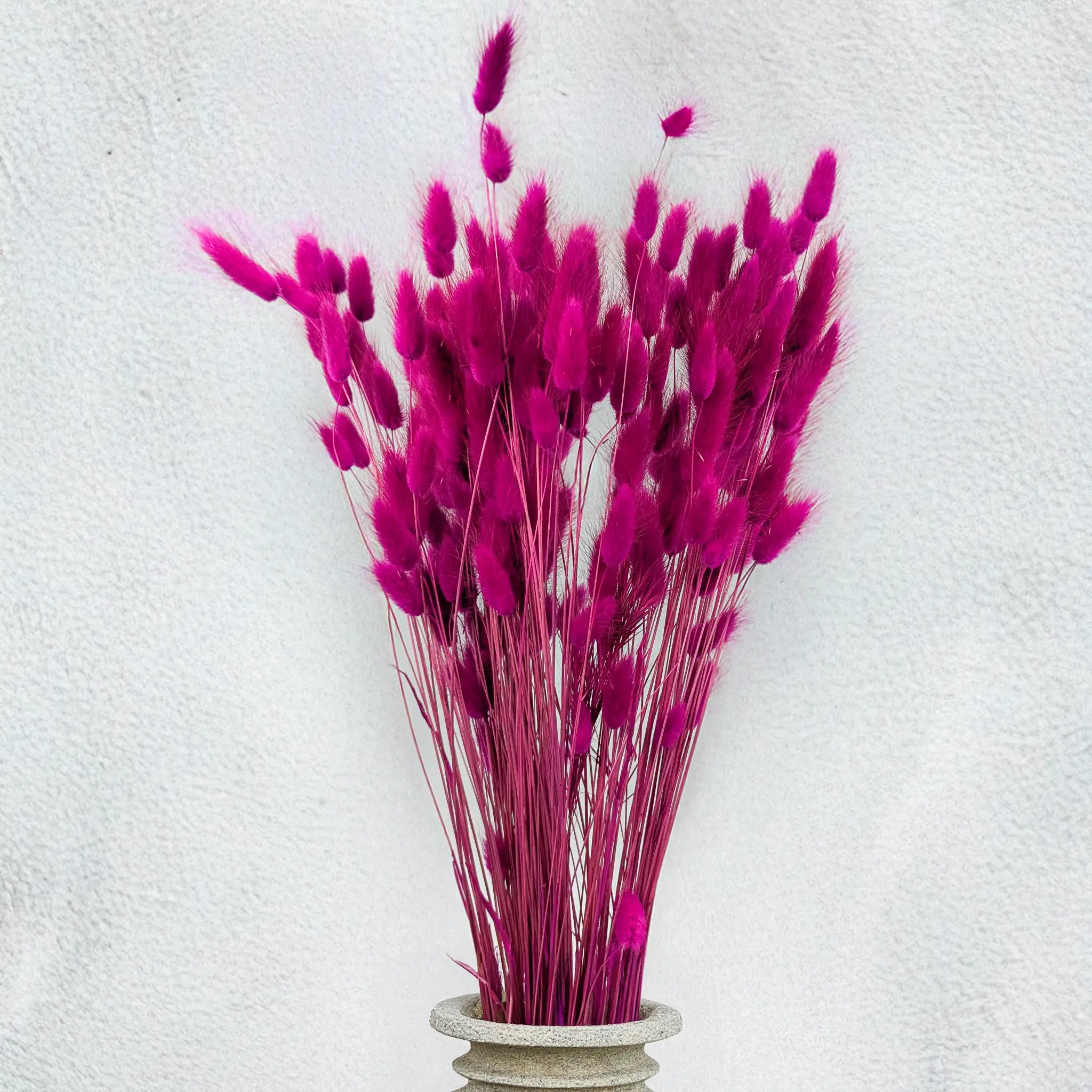 Product details: Naturally dried Lagurus, approx. 60 cm long, about 110 stems per bunch. Long-lasting, scent-free, and ready to use. The drying process preserves its velvety texture and rich color.