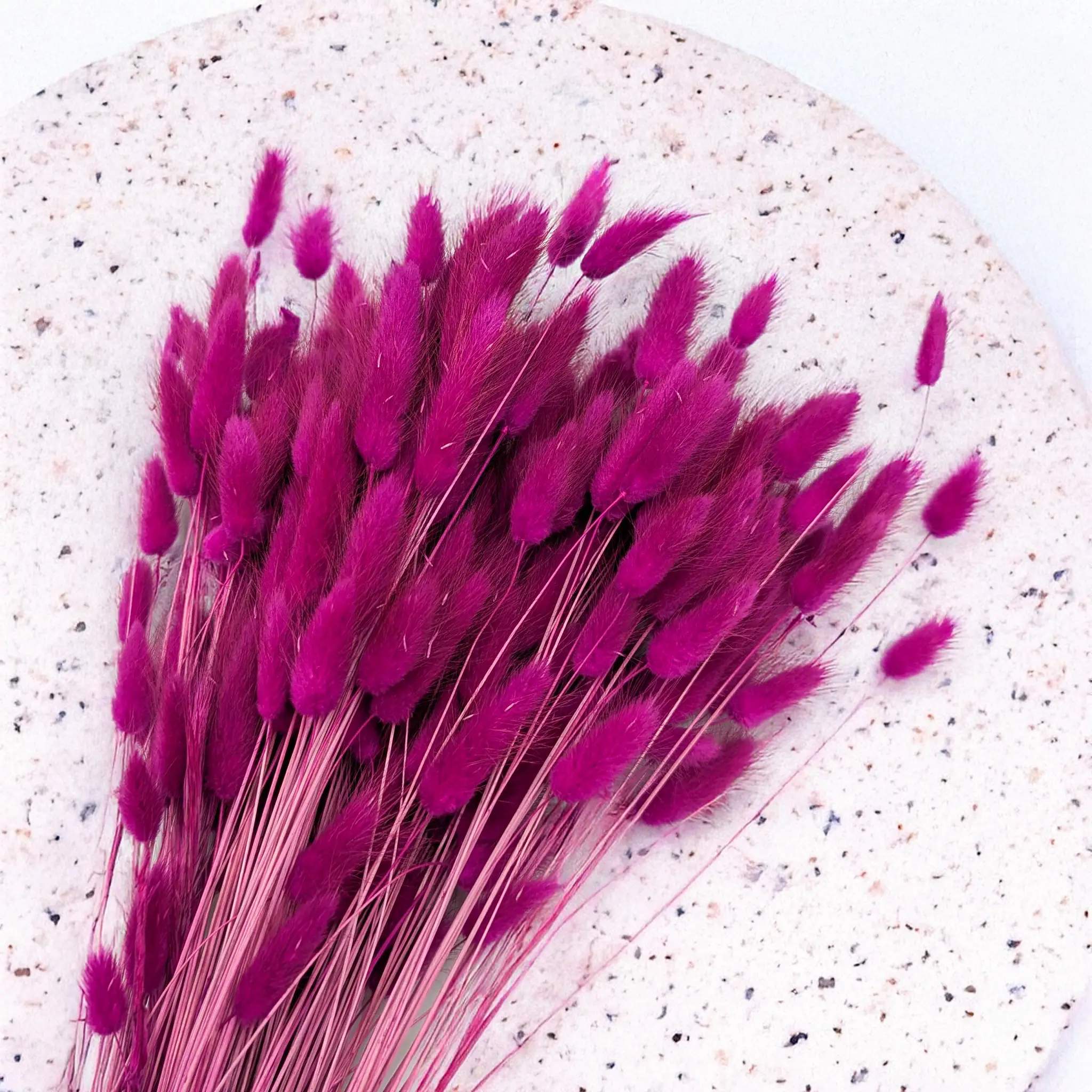 Purple Lagurus is a striking and refined dried flower that combines the intensity of red with the mystery of violet. Its deep, noble tone adds a sophisticated and creative character to any space. Perfect for elegant floral compositions, seasonal decorations, and DIY projects.