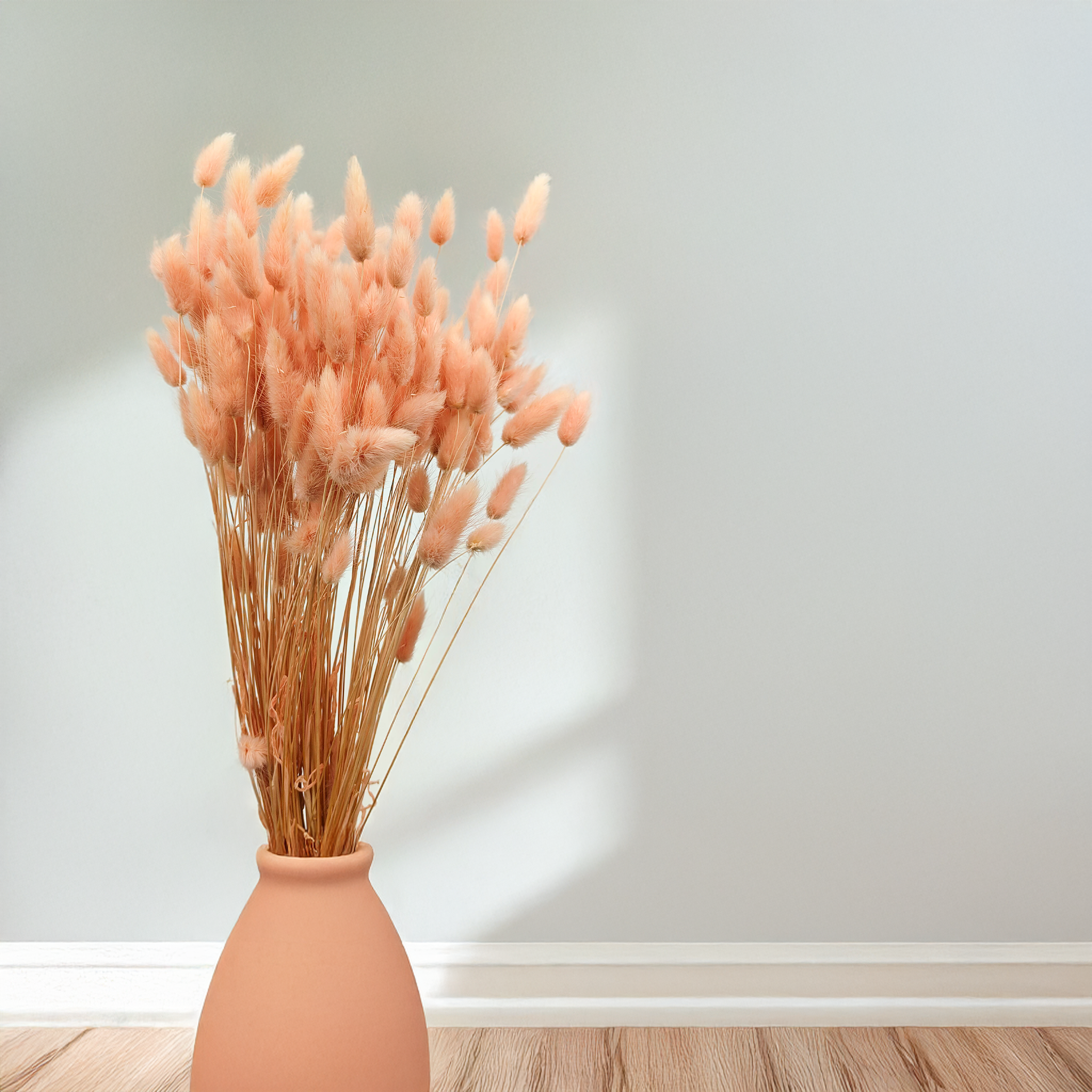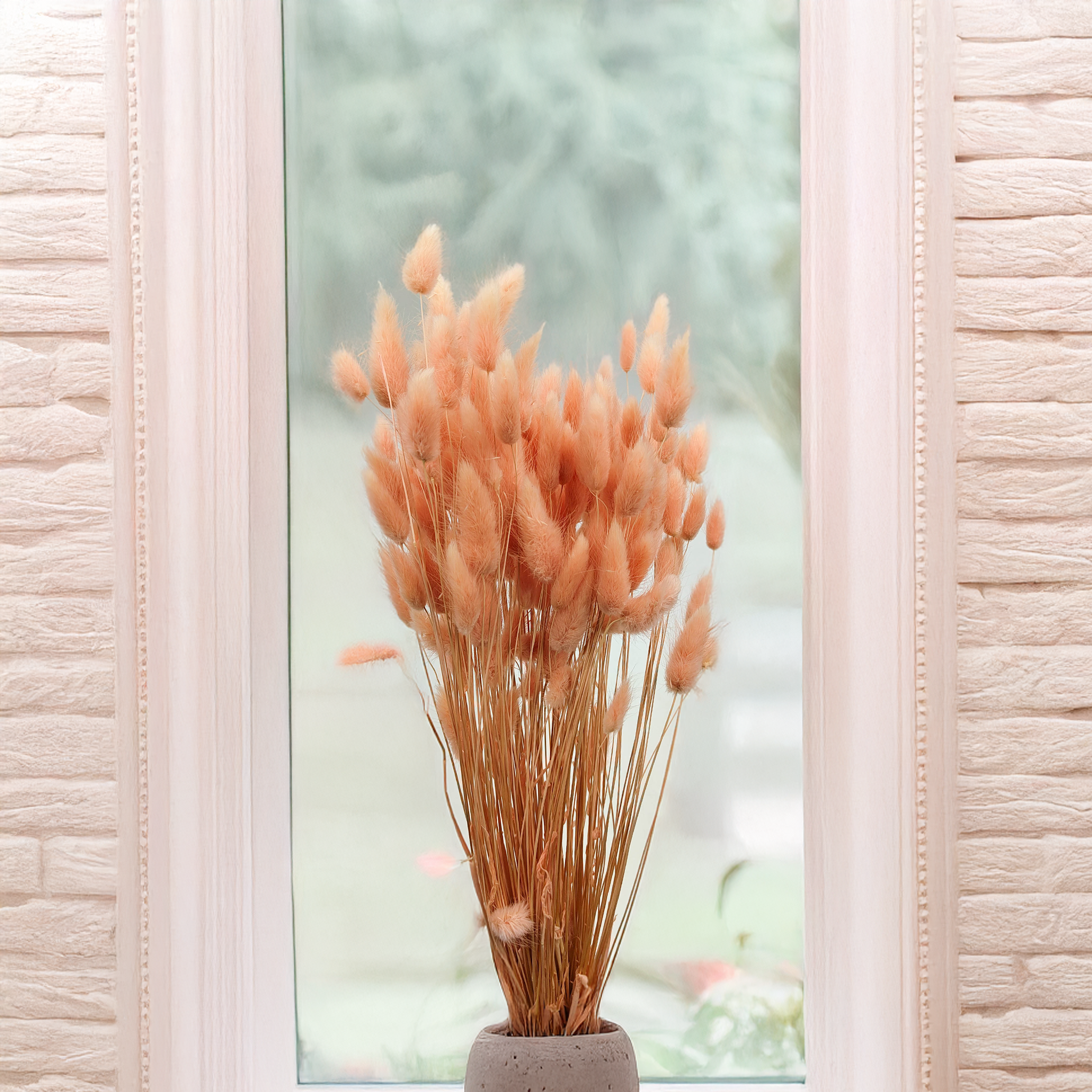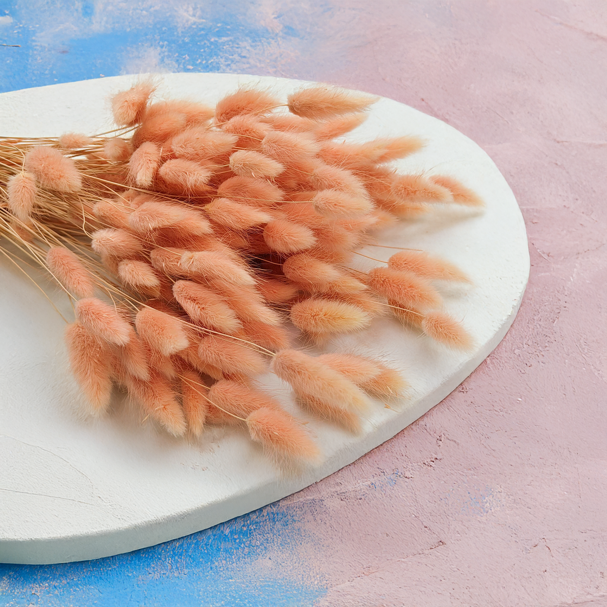 Salmon dried Lagurus (Bunny Tails) brings a soft and cheerful tone to any arrangement. This delicate peachy-pink shade symbolizes freshness, joy and elegance – ideal for weddings, boho interiors and handmade creations. Its fluffy texture adds gentle volume and charm without overpowering.
