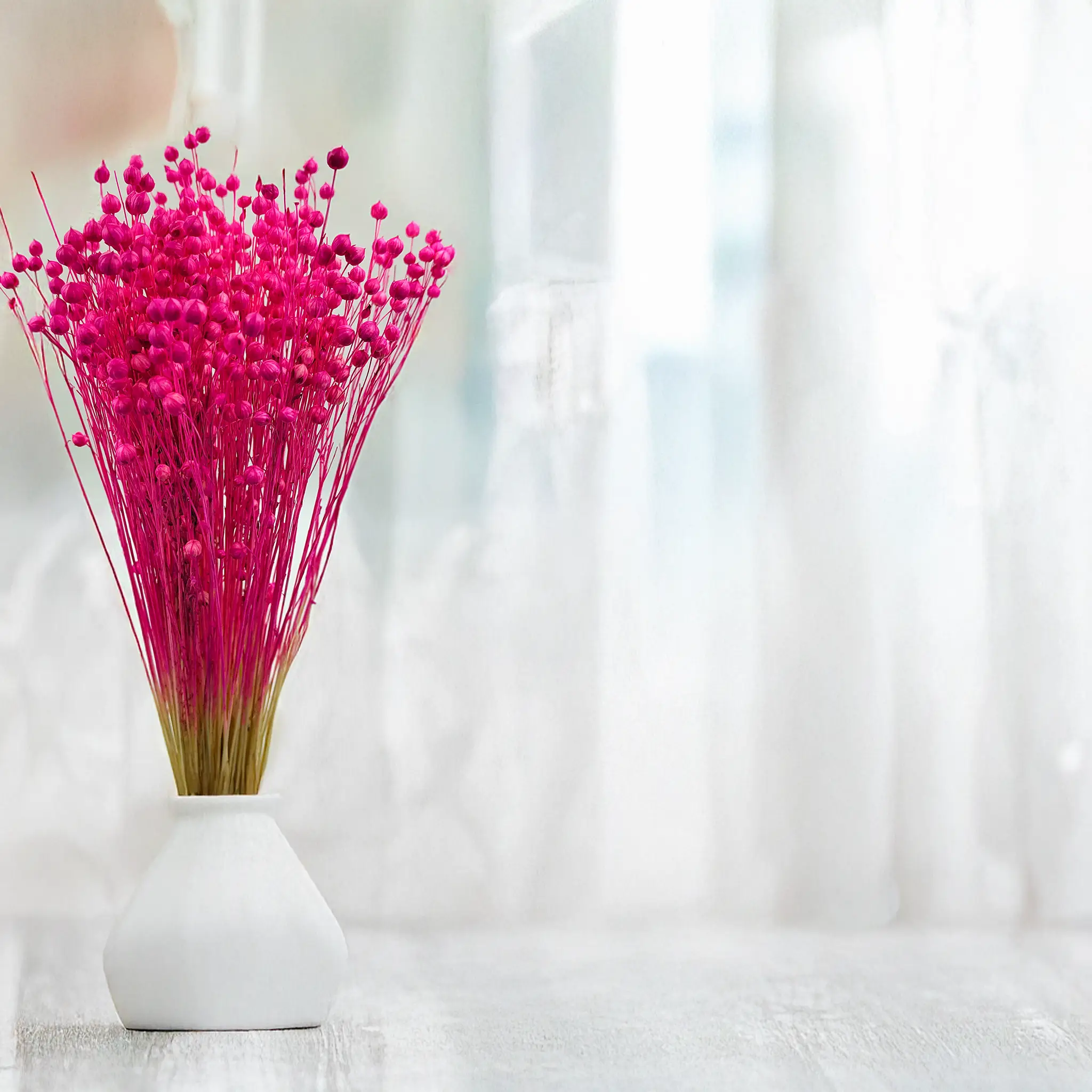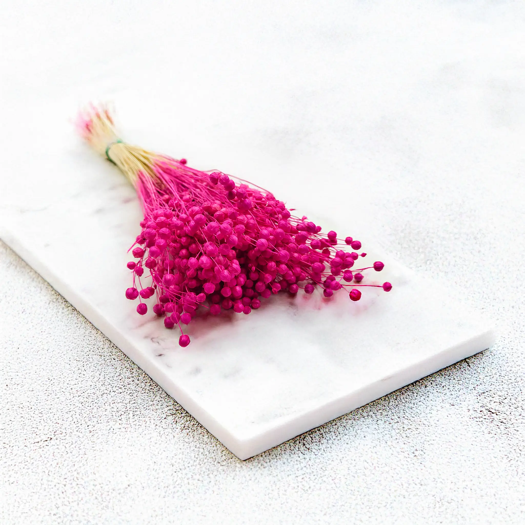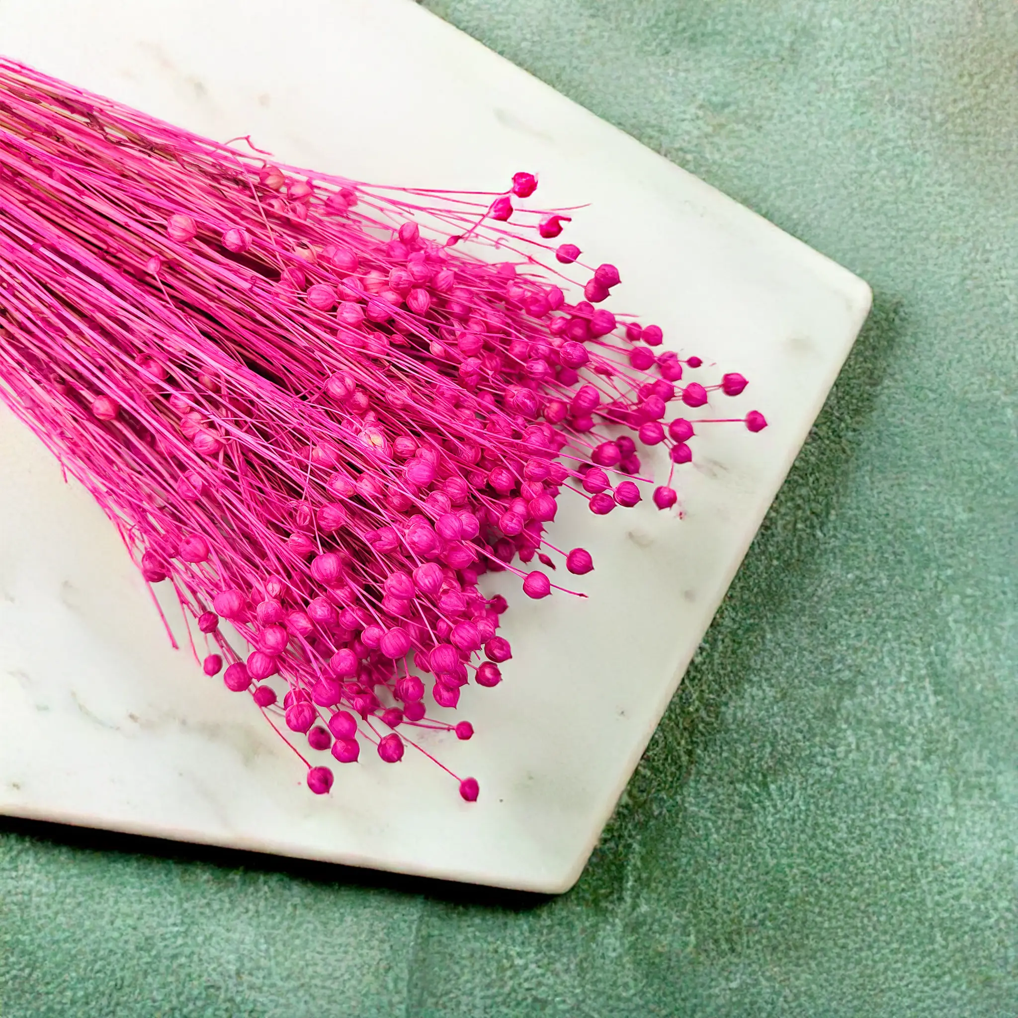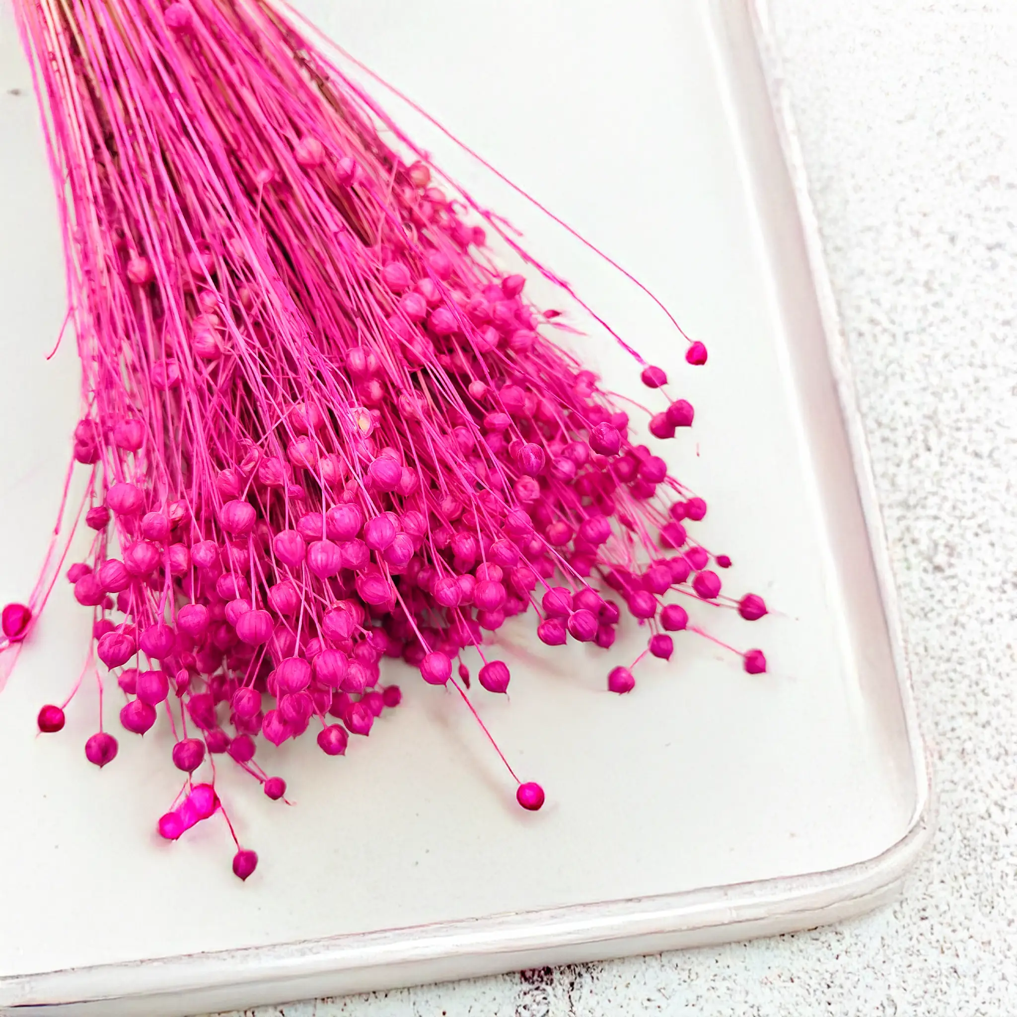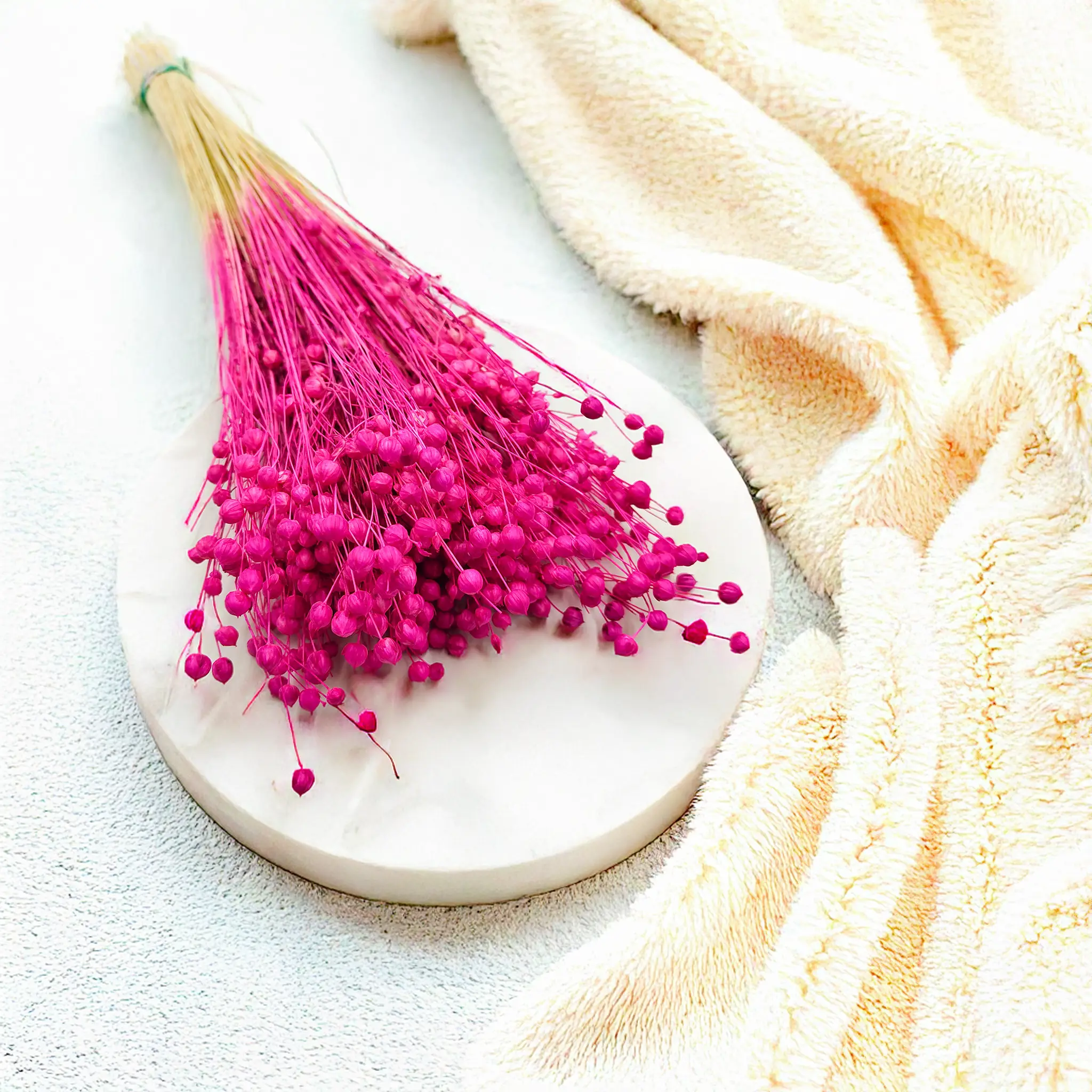 Fuchsia dried flax brings a pop of color and natural elegance to your floral arrangements. With its vibrant hue, it adds energy and modernity to weddings, events, and interior decor.