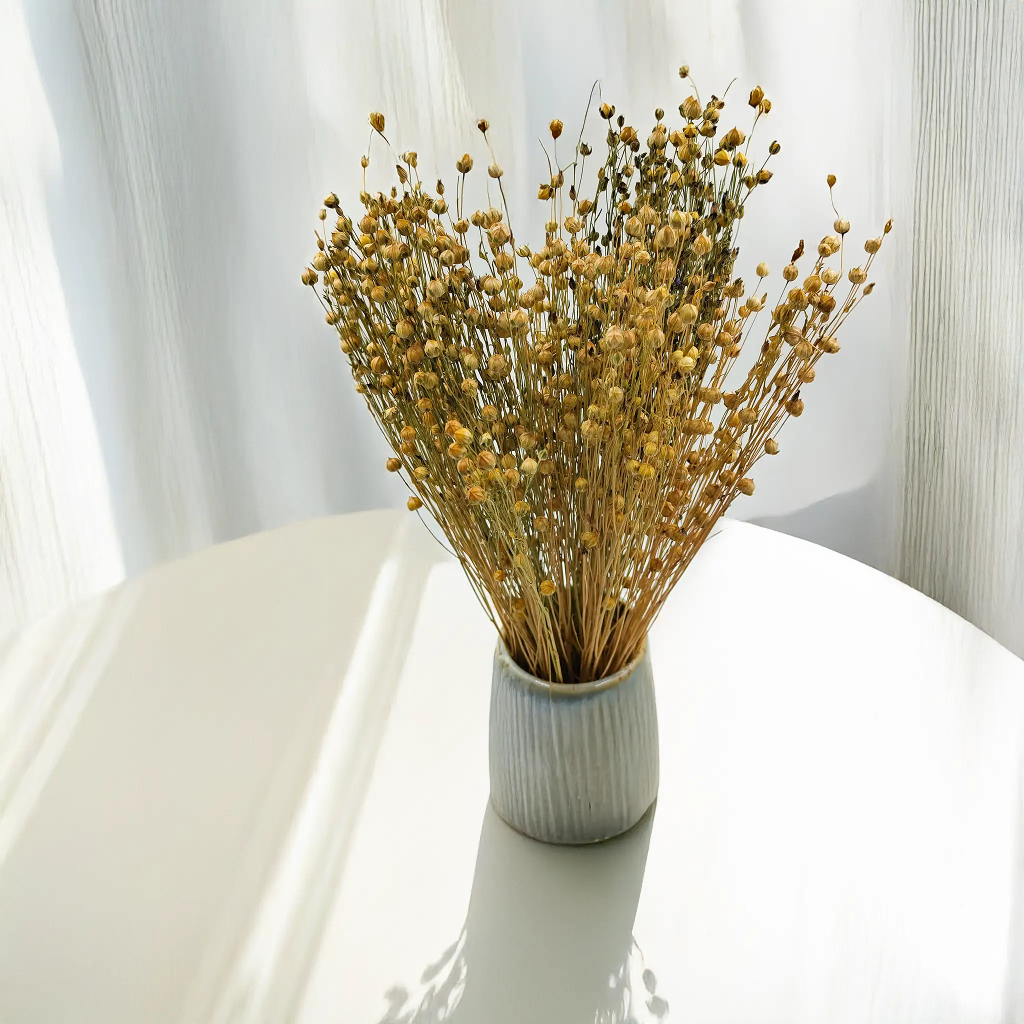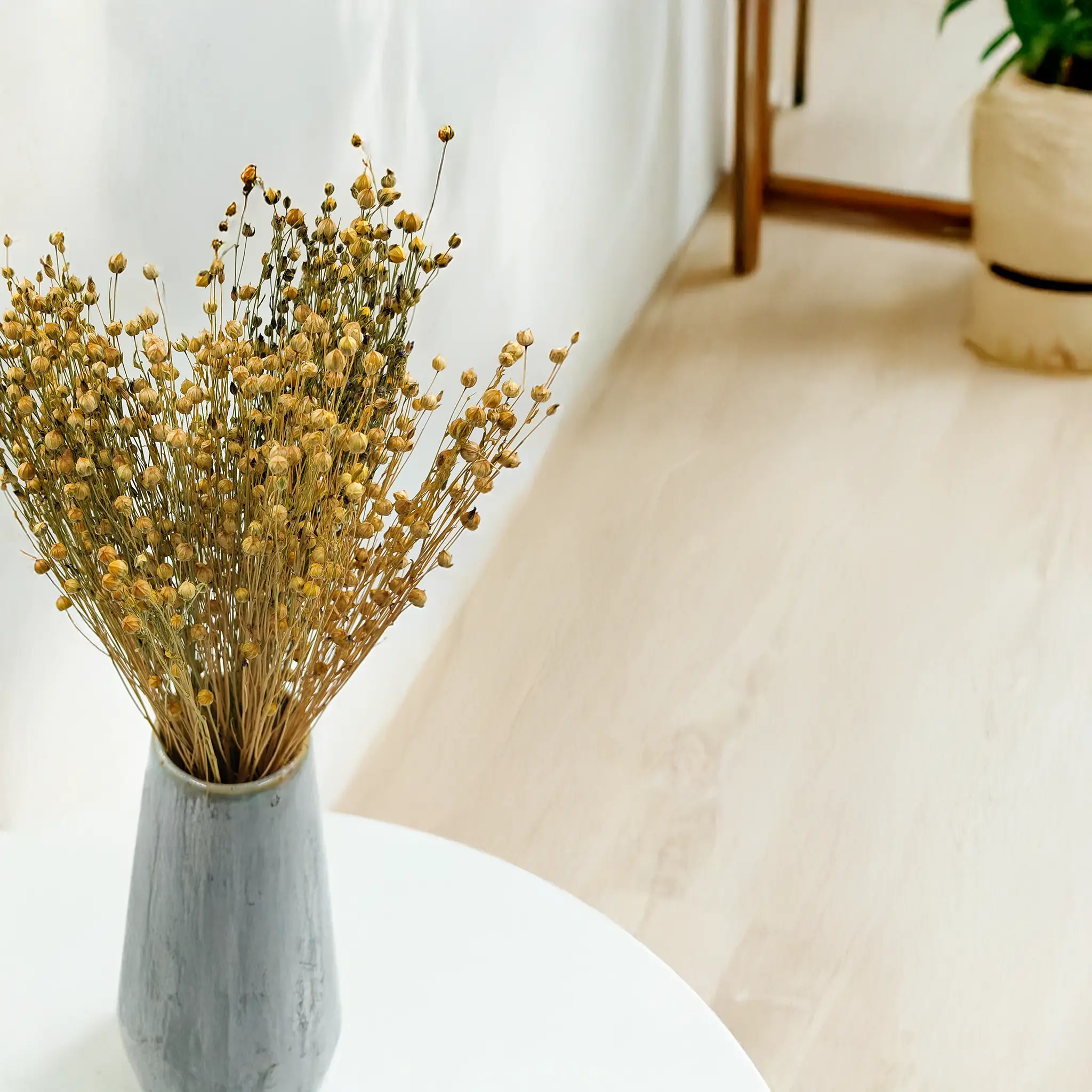 Natural dried flax brings a soft, neutral charm to floral styling. Its golden-beige hue fits effortlessly into boho, rustic, and Scandinavian interiors, creating calm and harmony through simplicity.