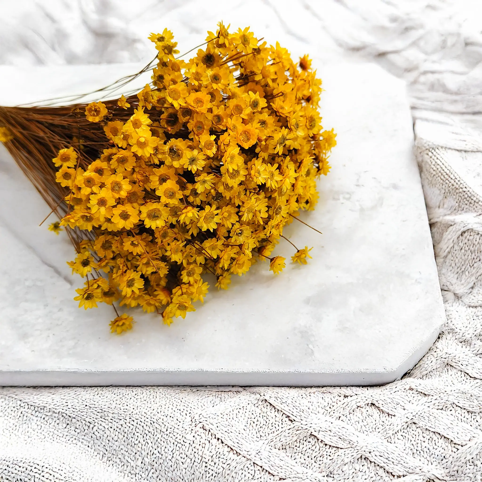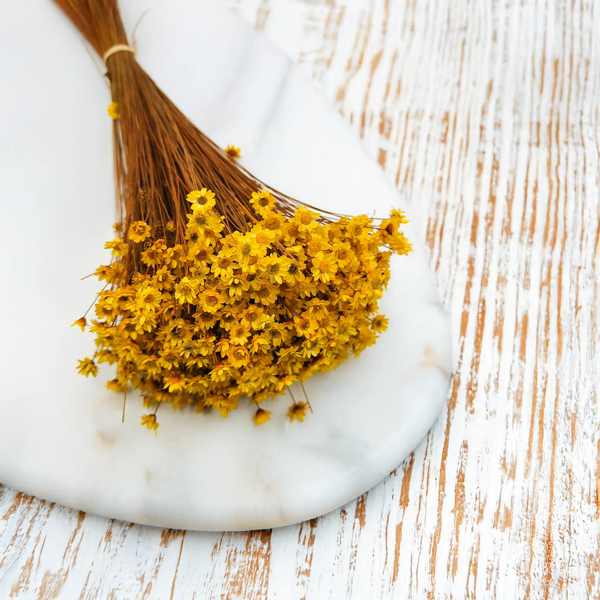 Yellow dried Glixia is a bright, joyful floral accent that adds positive energy to arrangements and interiors. Perfect for:
