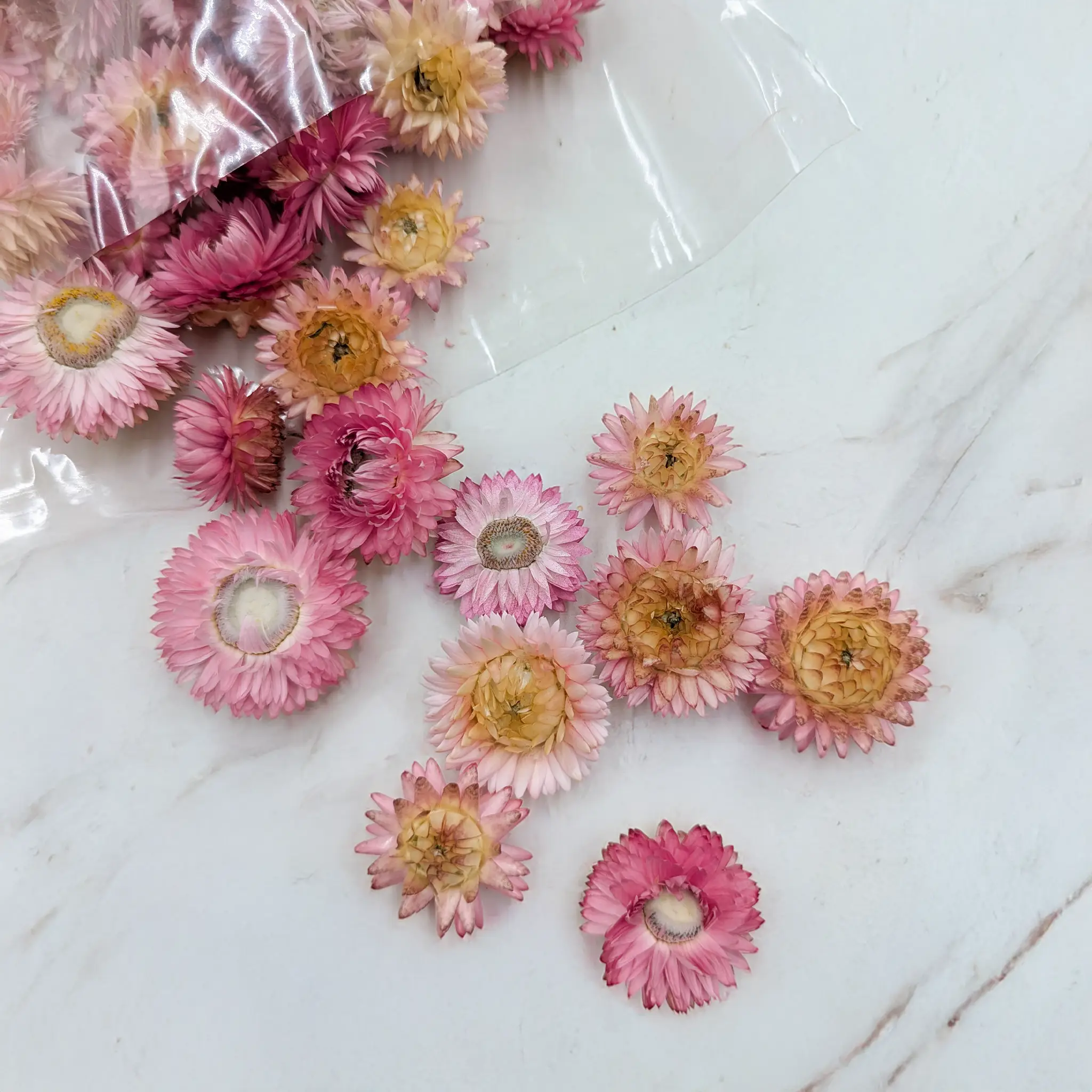 Dried Helichrysum heads in dark pink shades are an excellent choice for creative people looking for natural materials for crafts and interior decoration.