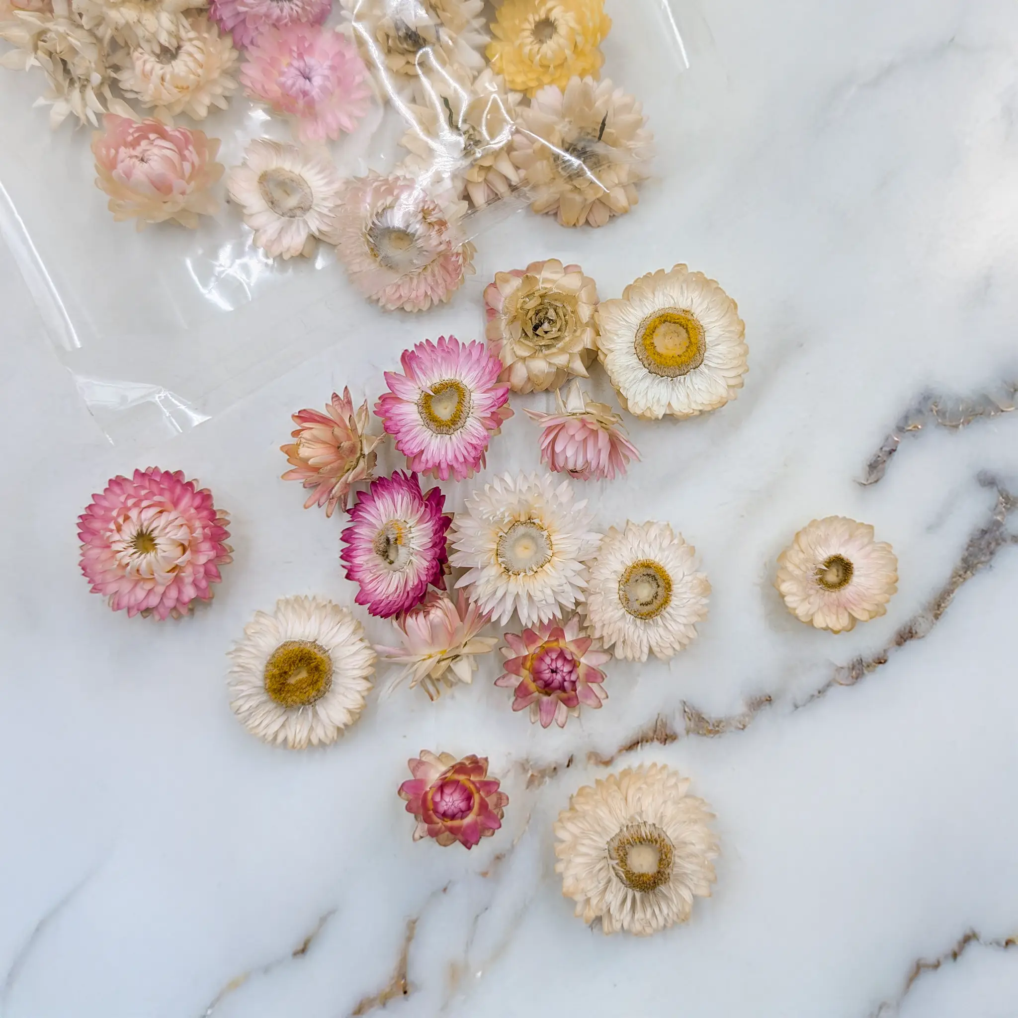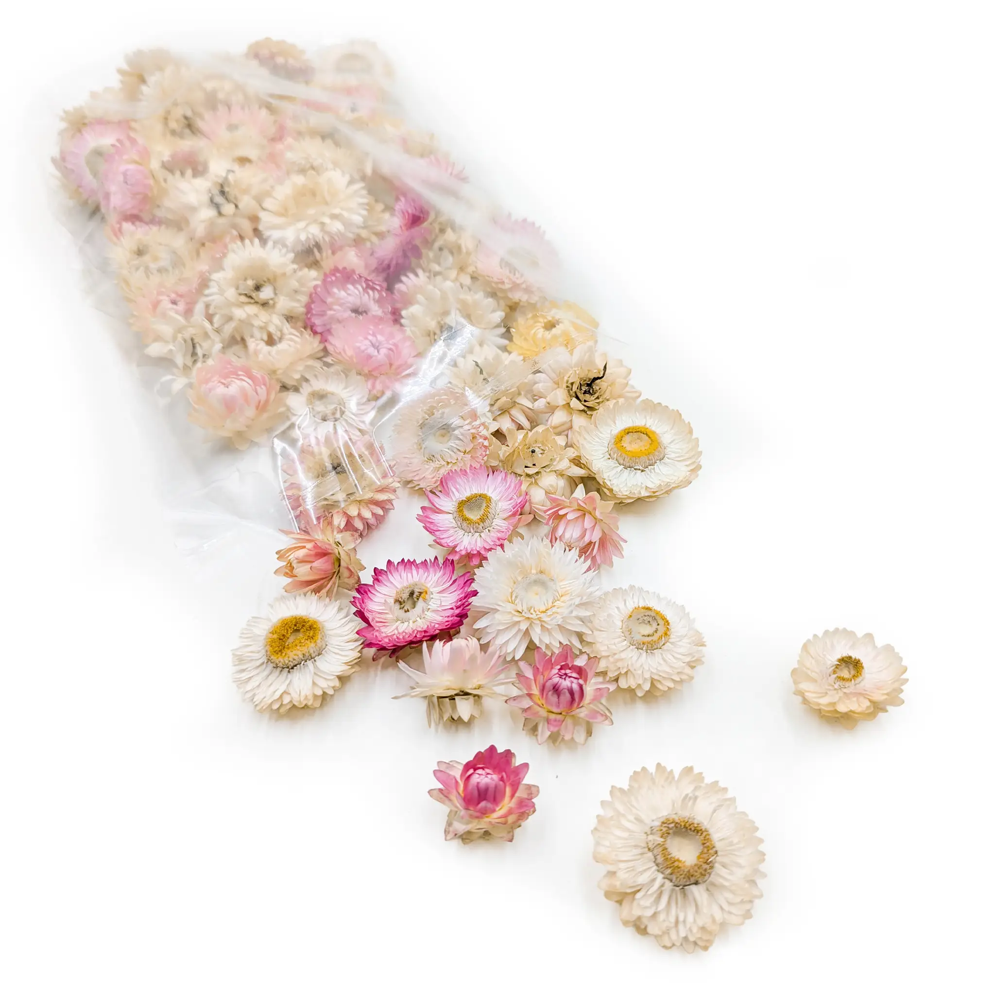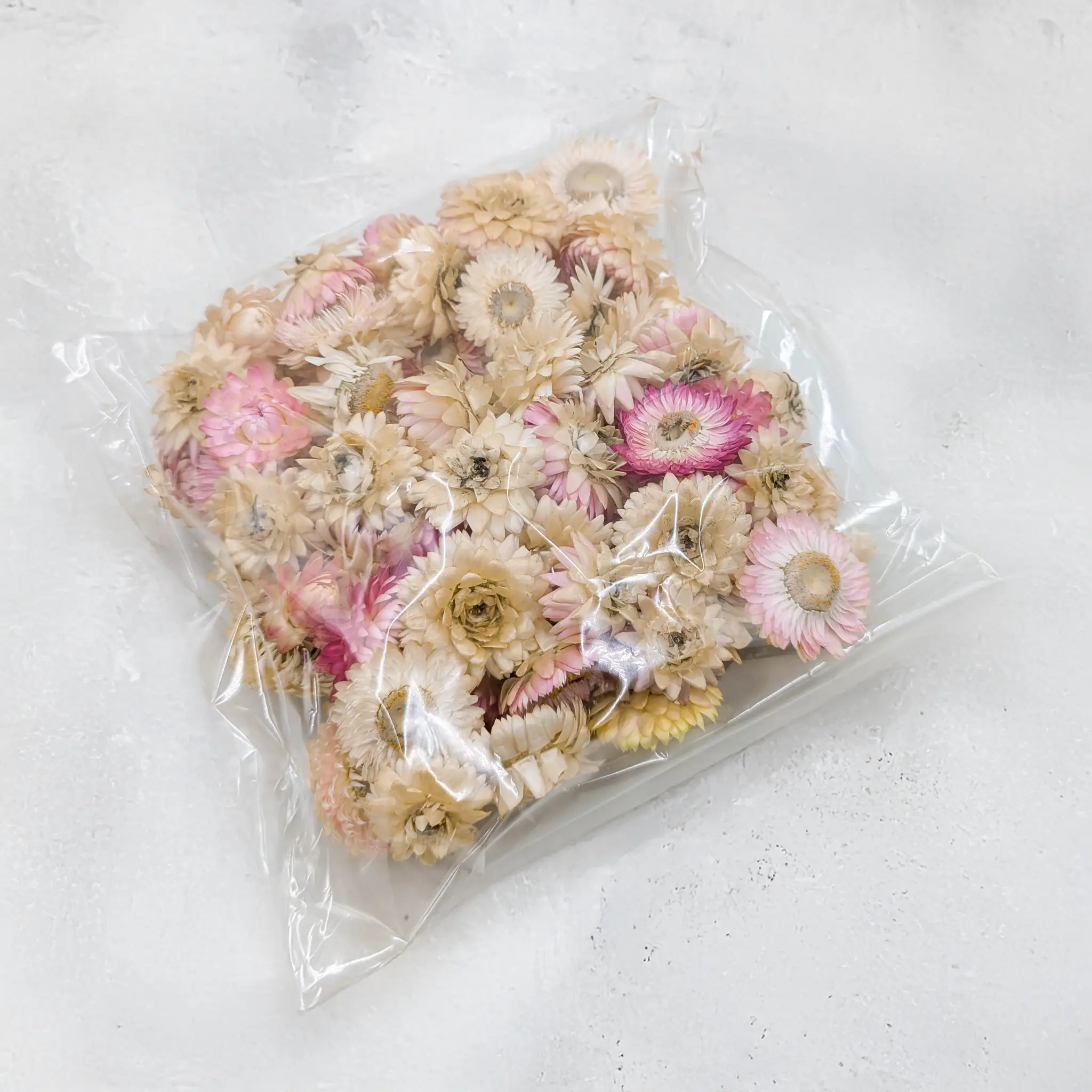 Dried Helichrysum in light pink is a perfect choice for creative people who want to bring a gentle, romantic touch to their designs.