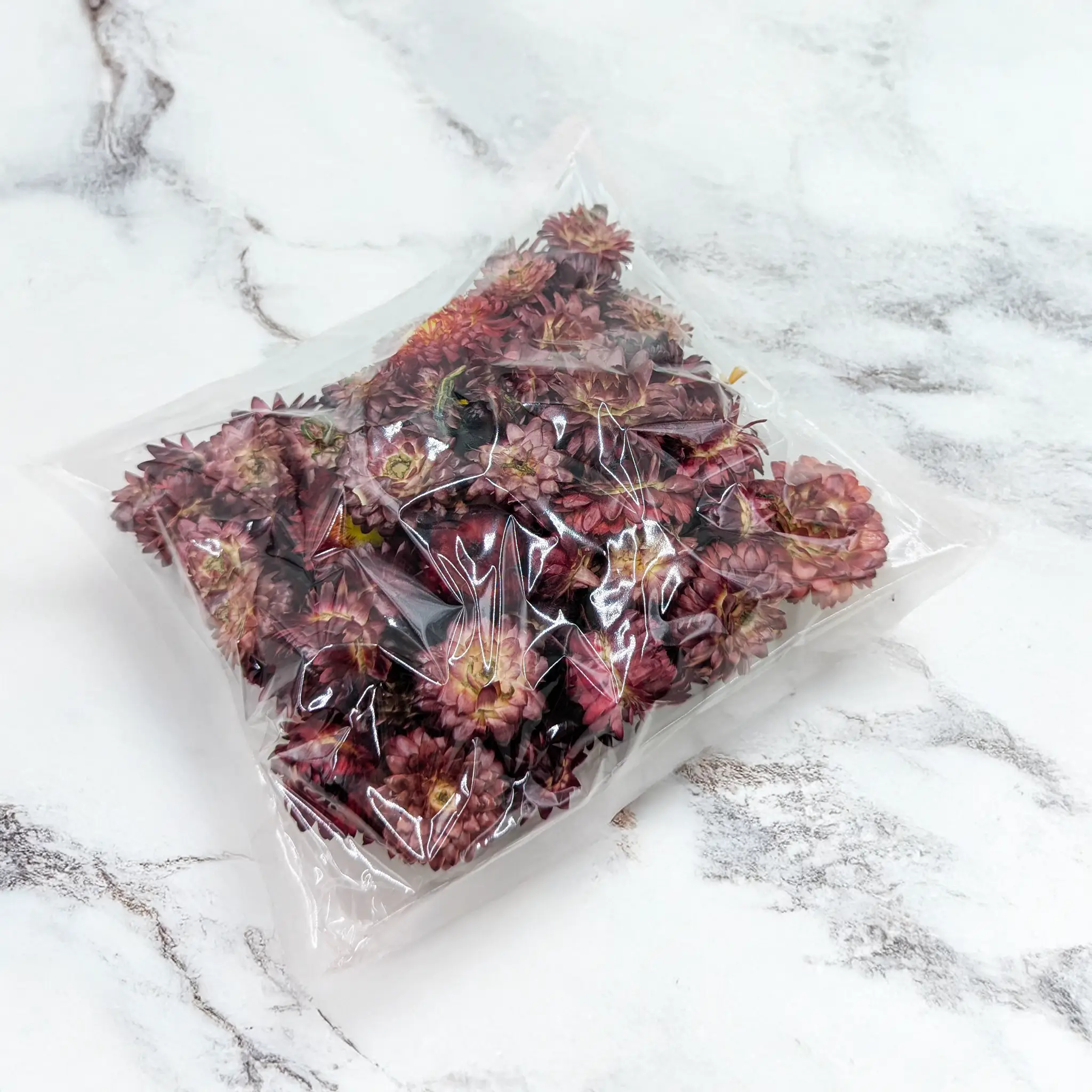 Dried Helichrysum heads in scarlet shades are a bold and striking decorative material that stands out with its deep, vivid color. Scarlet symbolizes passion, strength, and elegance, making it perfect for arrangements that require a strong color accent. The durable heads keep their appearance for a long time, making them ideal for both decorations and creative crafts.
