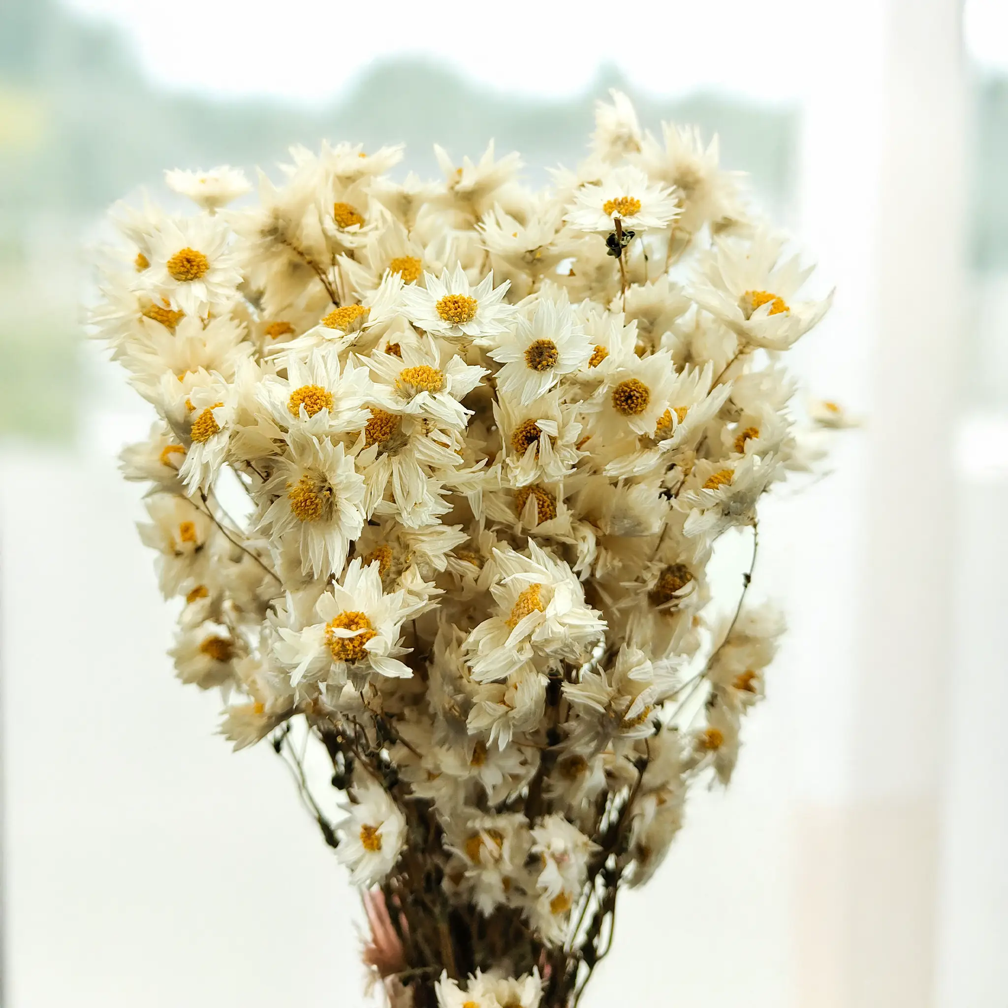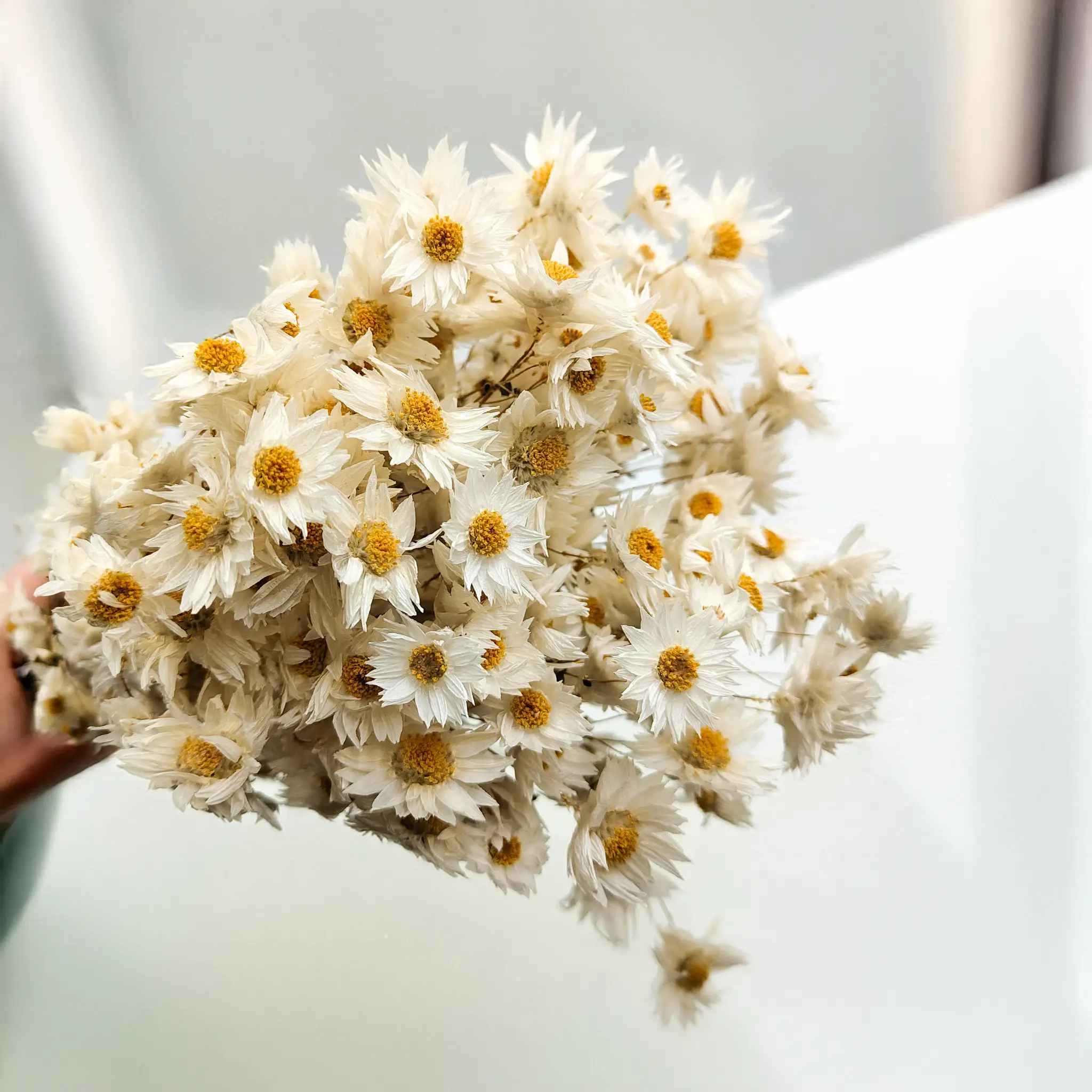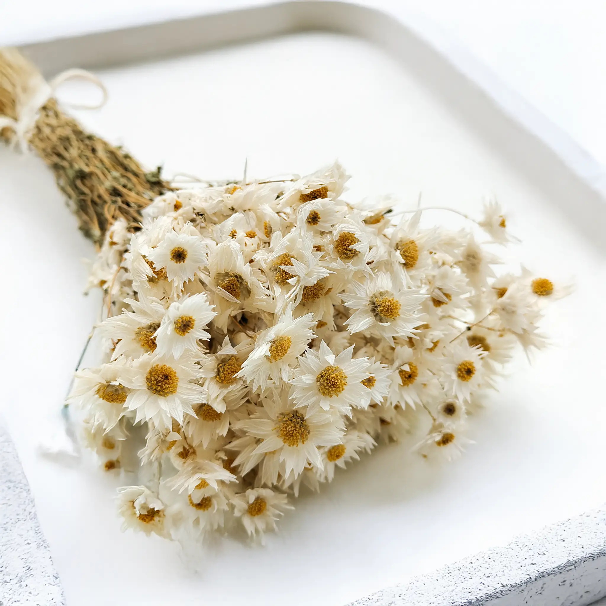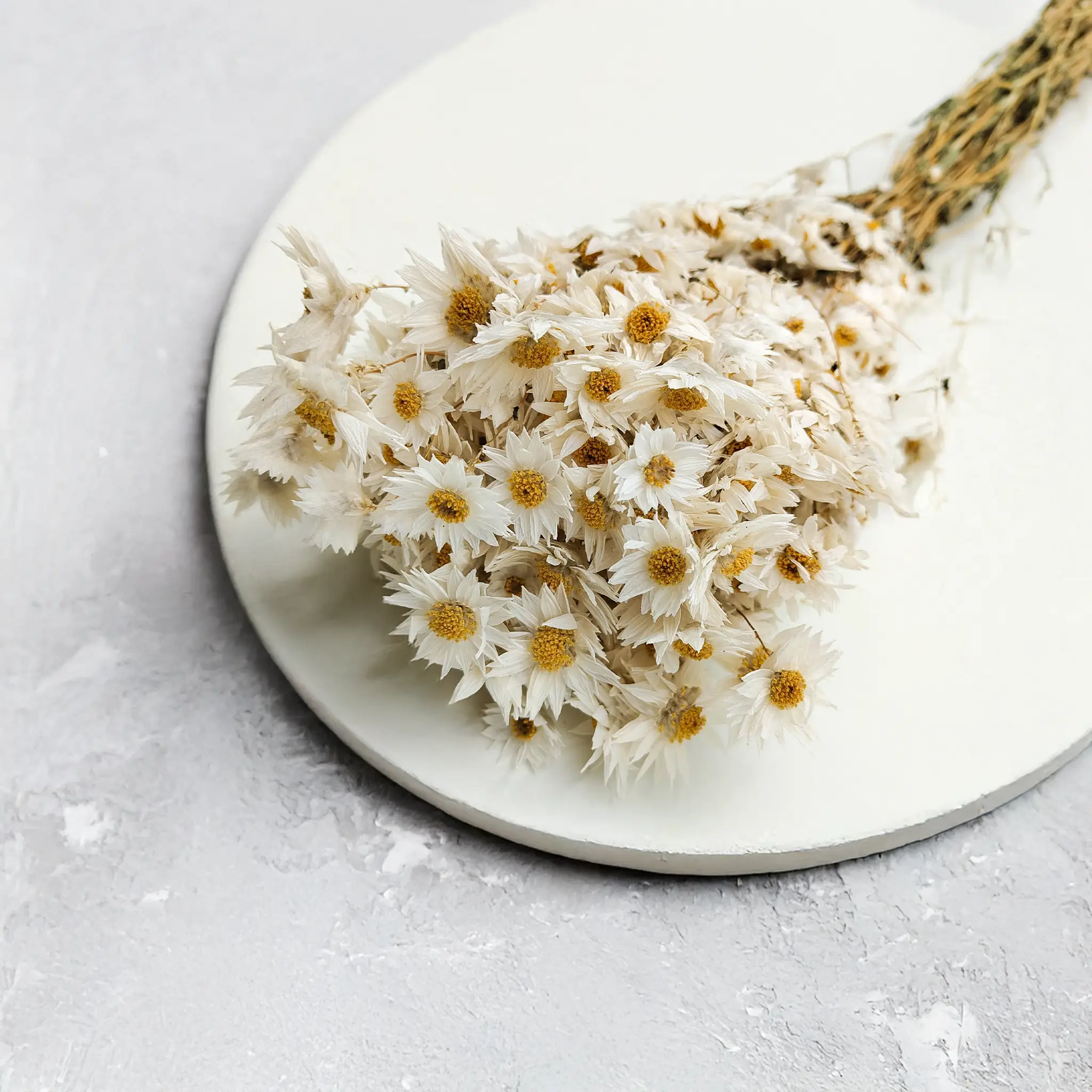 Dried Rhodanthe (also known as Paper Daisy) in white is a charming ornamental plant with delicate, pure white flowers. Thanks to a gentle drying process, it retains its shape, texture, and color for a long time. Widely appreciated by florists and interior decorators for modern and rustic arrangements.