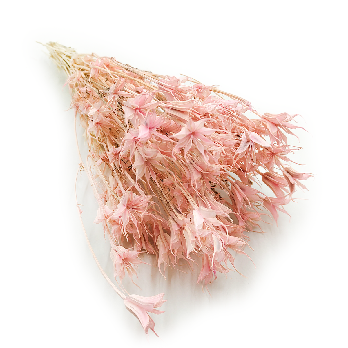 This delicate pink Oriental Nigella, grown in Poland, is a beautiful addition to rustic, boho, or romantic floral arrangements. With its star-shaped flowers clustered on each stem, it adds a unique, natural texture to wedding bouquets, wreaths, or communion florals. Pair it with lagurus, gypsophila, glixia, or phalaris for a soft and dreamy effect.