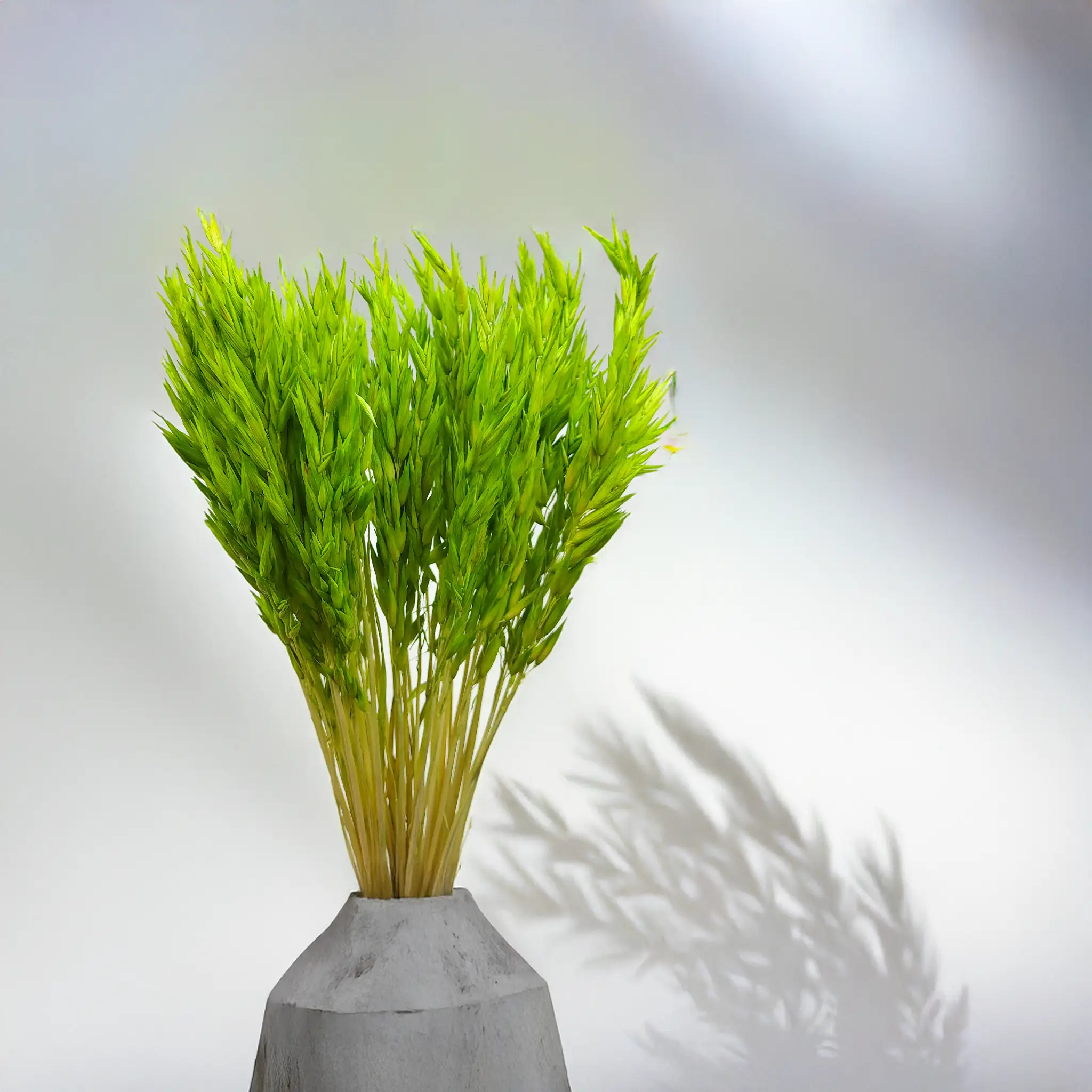 Dried oats in light green celadon offer a soft and refreshing decorative touch, perfect for eco-friendly interiors and floral design. Their delicate stems and subtle tone enhance boho, rustic, and Nordic arrangements. No maintenance required – just pure natural beauty.