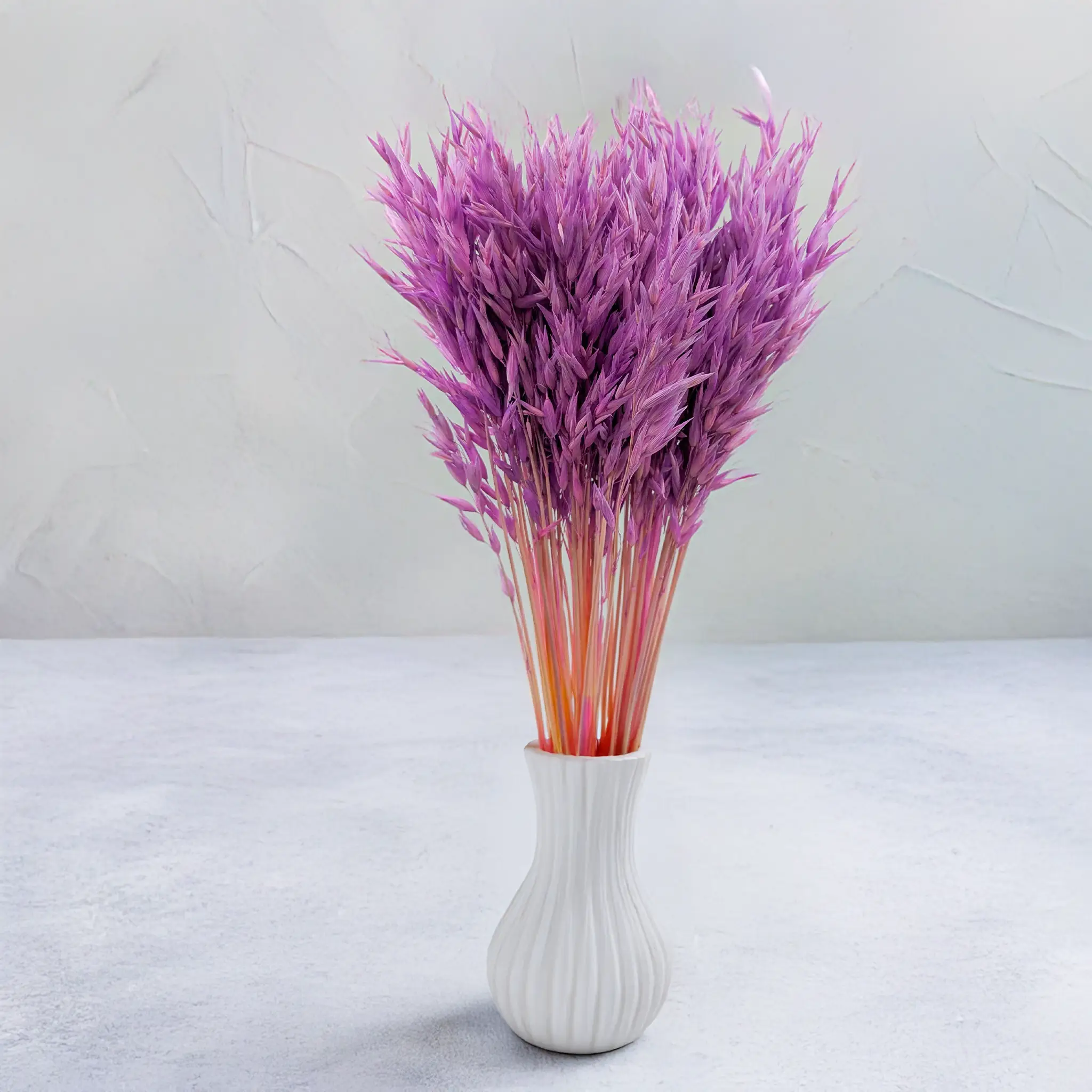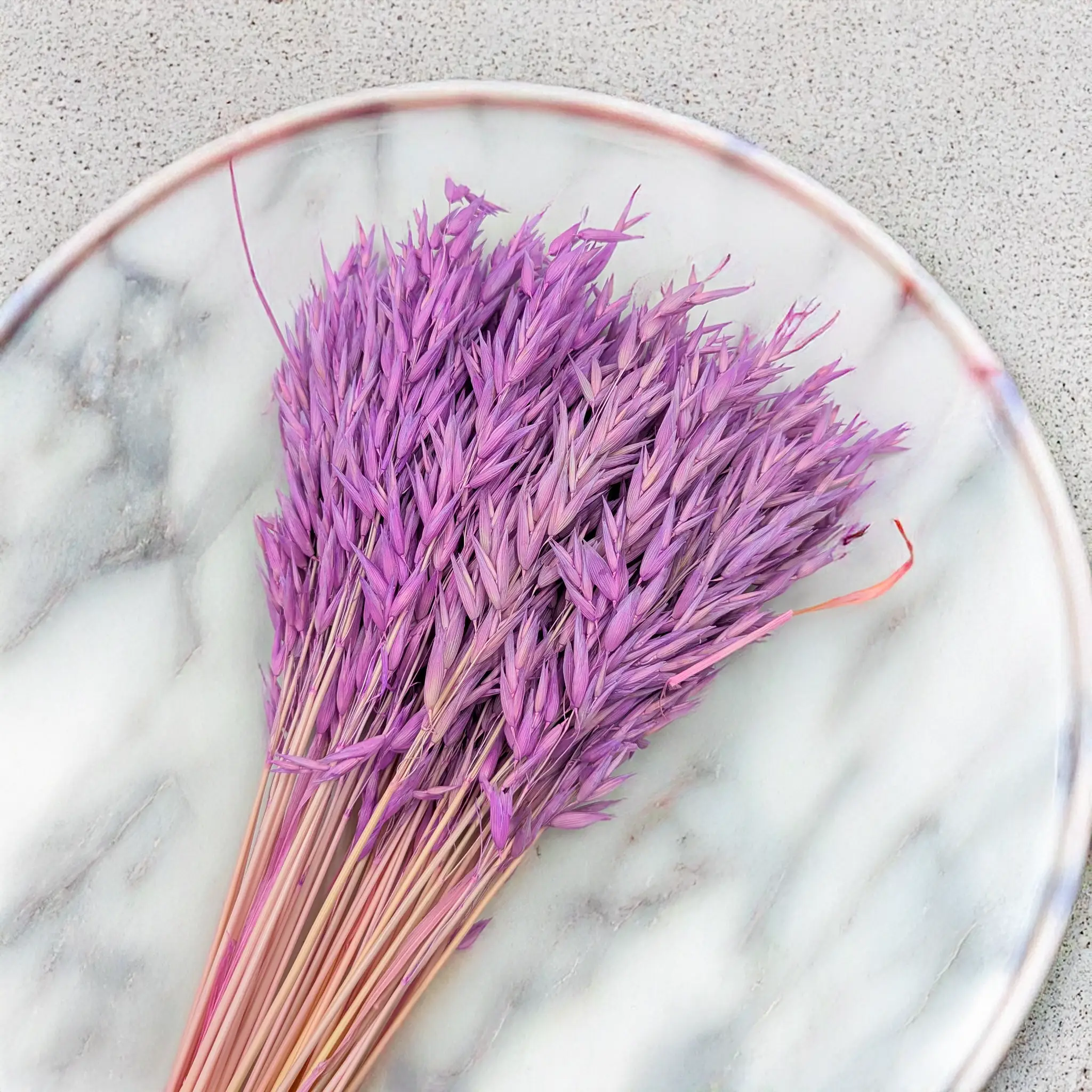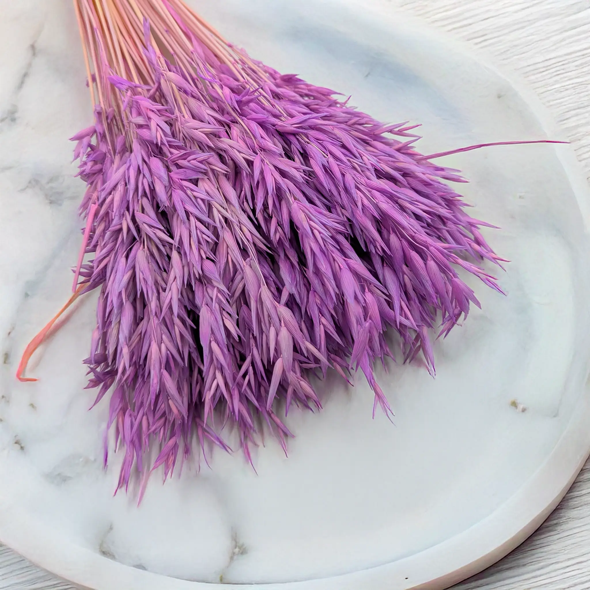 These purple dried oats offer a bold and elegant floral touch. Their intense color and slender form make them perfect for eye-catching centerpieces or subtle rustic decor.