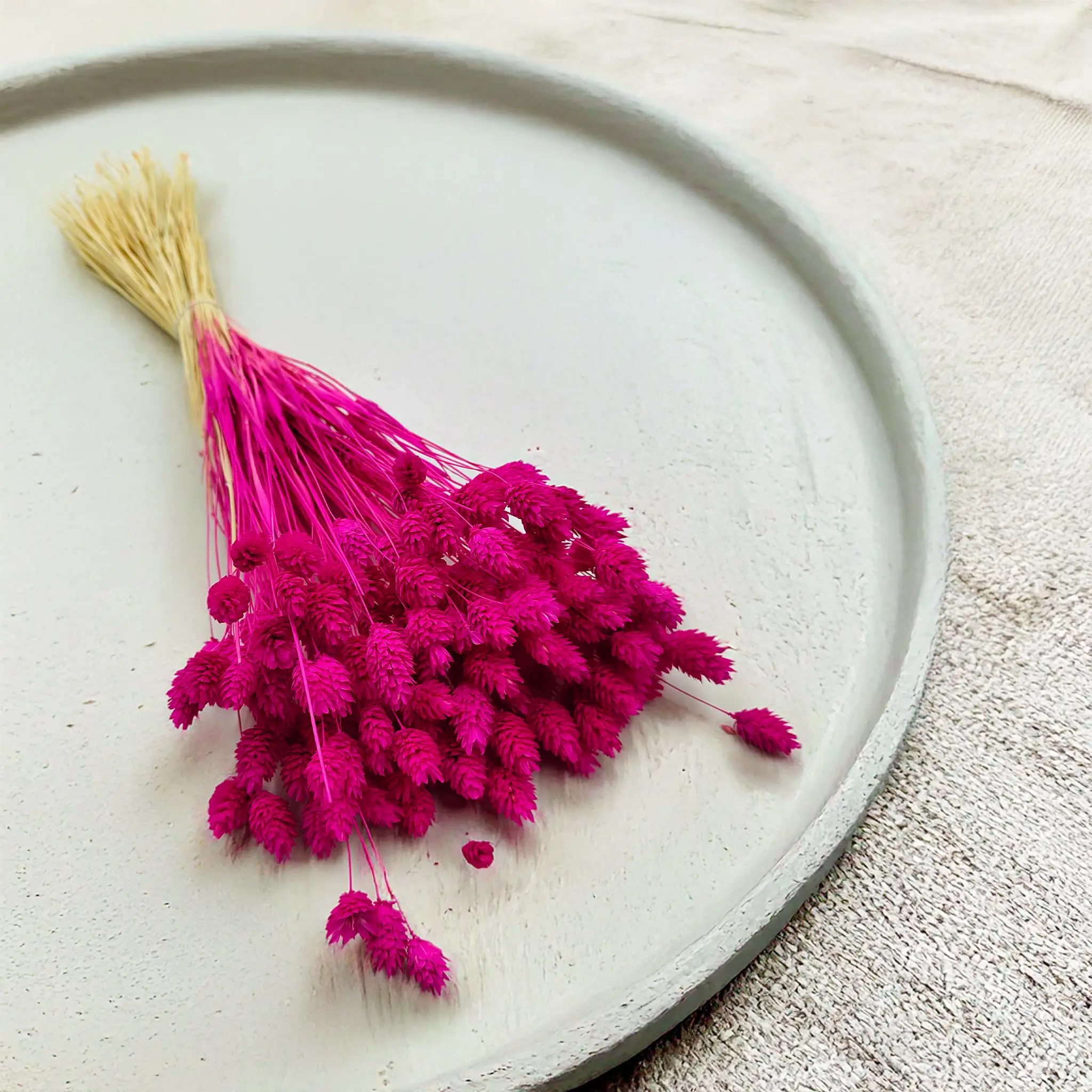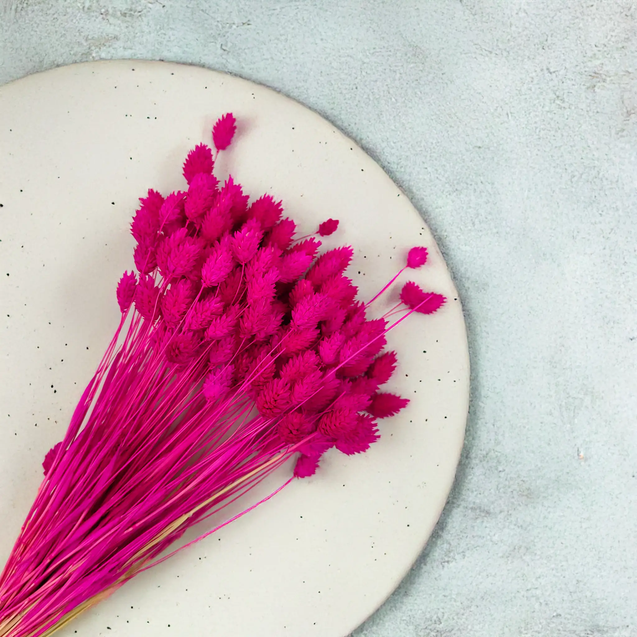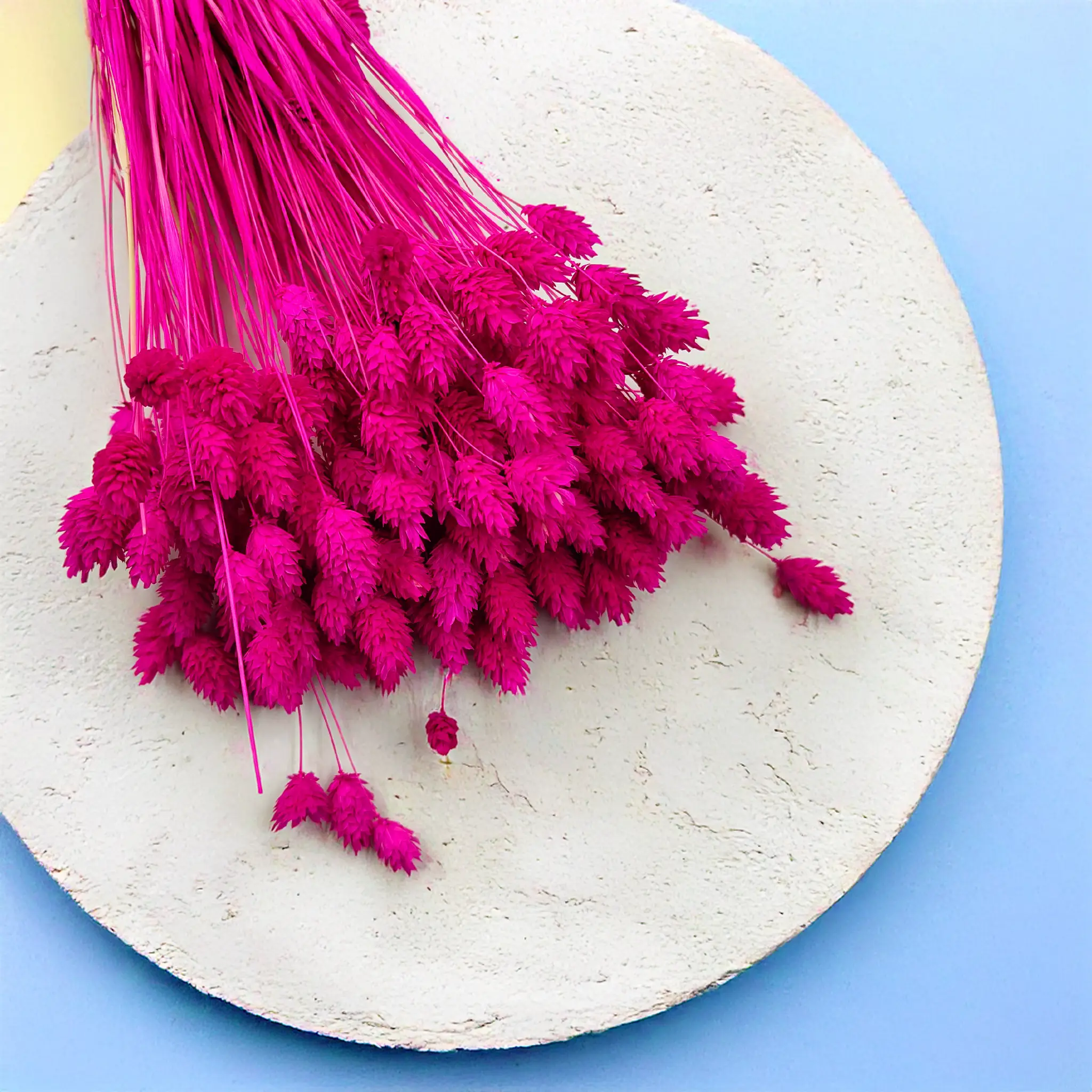Amaranth Phalaris is a bold and expressive version of dried canary grass, dyed in a deep pink hue with fuchsia and red tones. The color evokes passion, energy, and creativity, making it perfect for attention-grabbing decor. Its structured form and long-lasting quality make it ideal for floral arrangements, modern interiors, and creative styling.