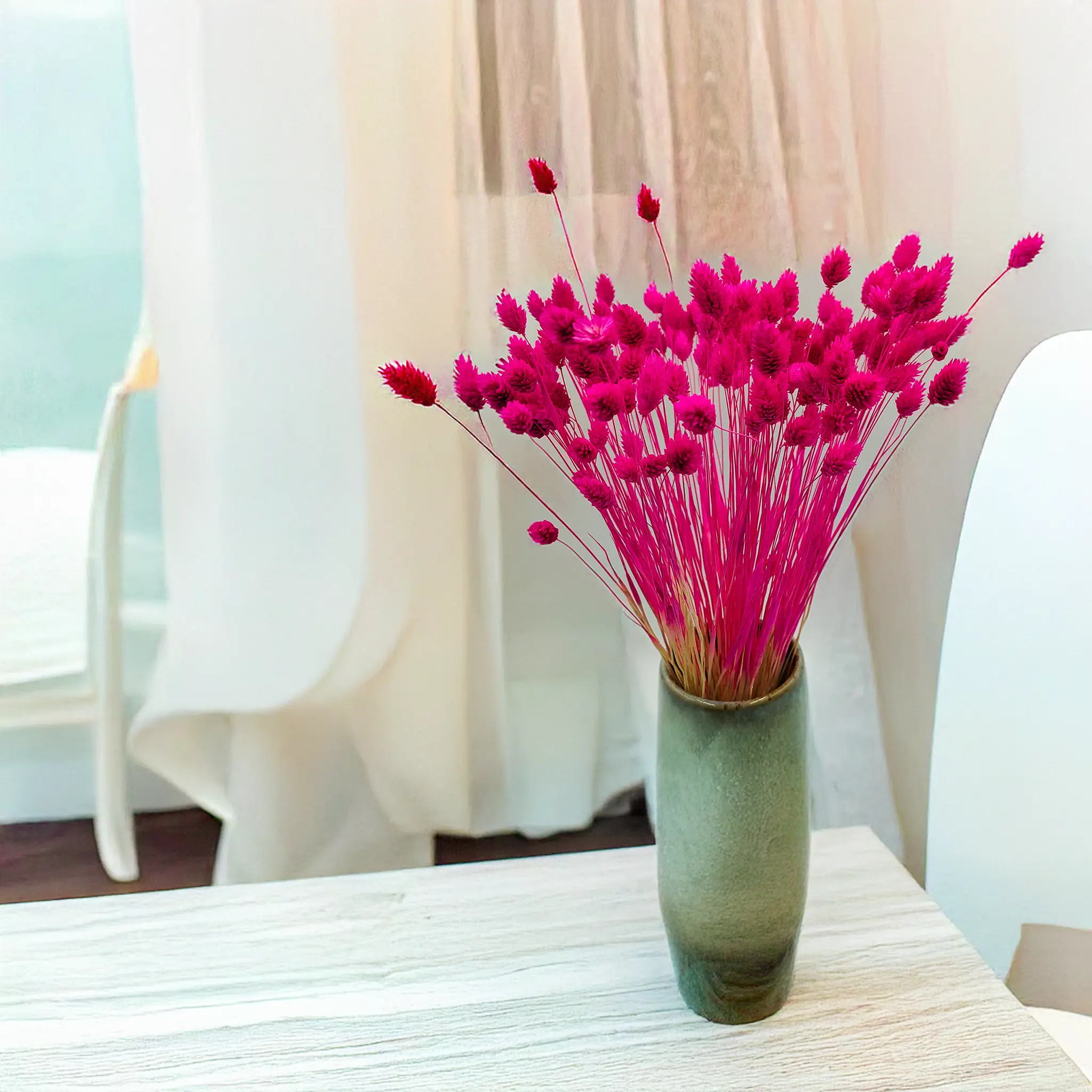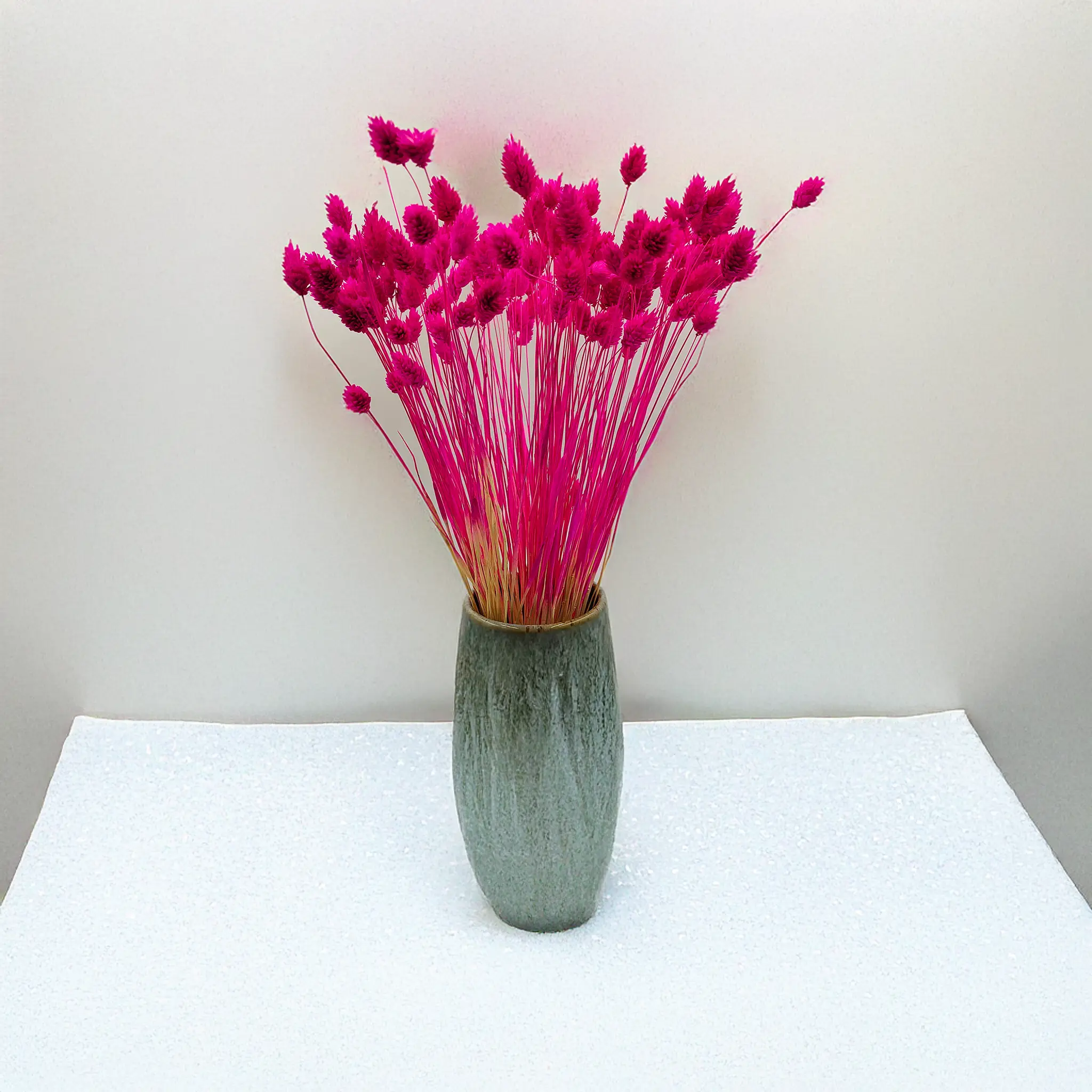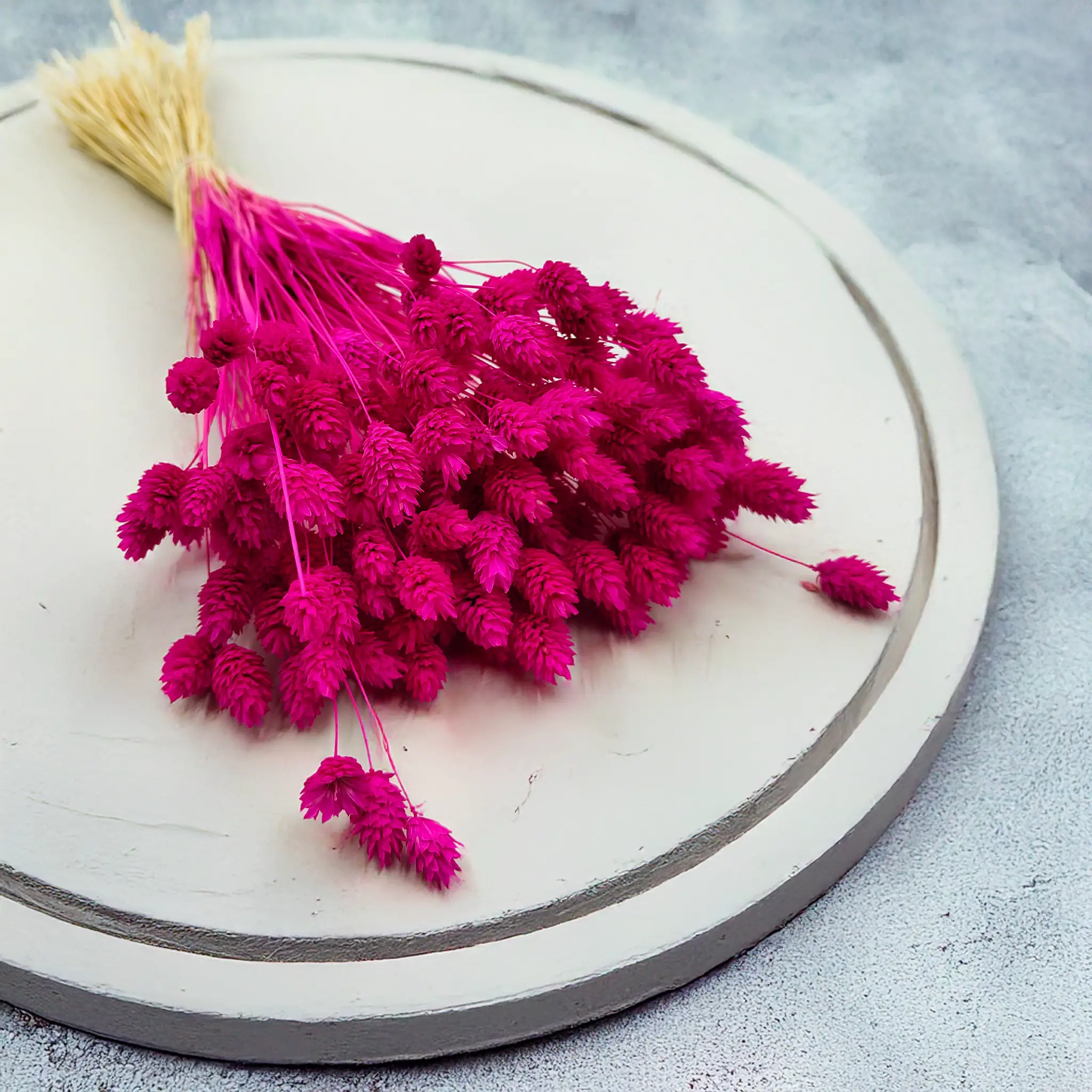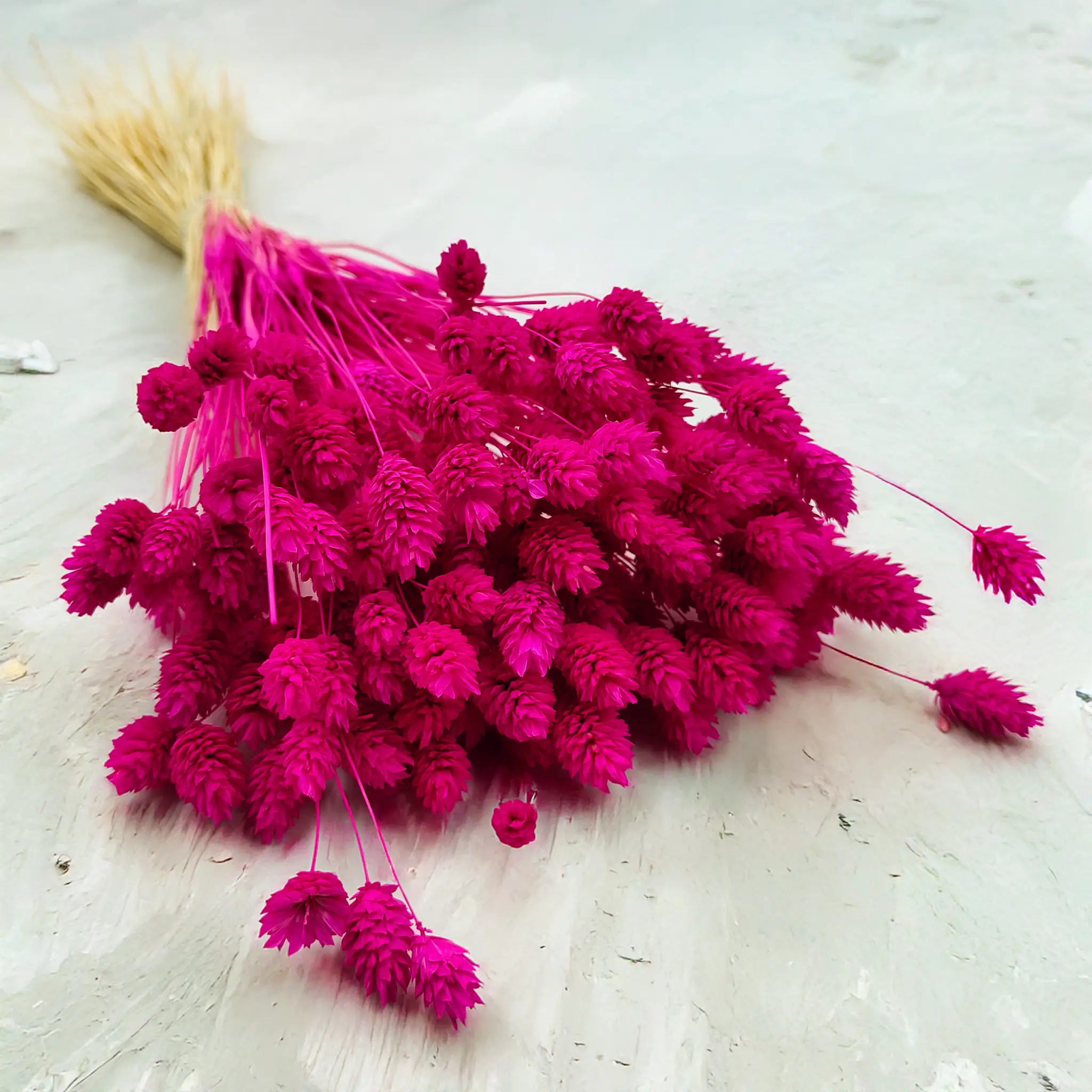 Amaranth Phalaris is a bold and expressive version of dried canary grass, dyed in a deep pink hue with fuchsia and red tones. The color evokes passion, energy, and creativity, making it perfect for attention-grabbing decor. Its structured form and long-lasting quality make it ideal for floral arrangements, modern interiors, and creative styling.