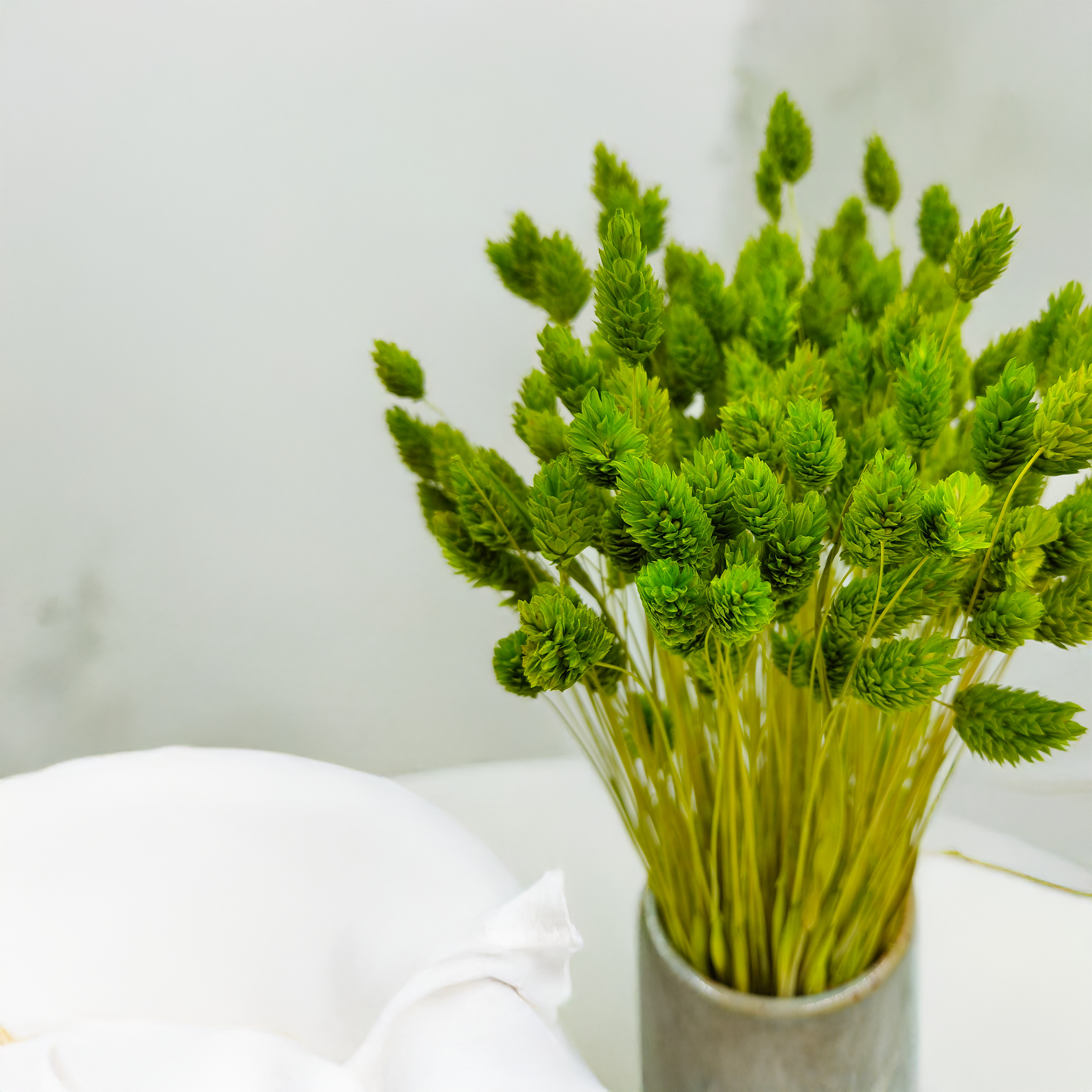 Light Green Phalaris is a delicate, dried variety of canary grass in a soft minty green hue. This calming pastel color symbolizes renewal and balance – making it ideal for boho, Scandinavian, and rustic styles. The natural texture and preserved shape ensure long-lasting charm.