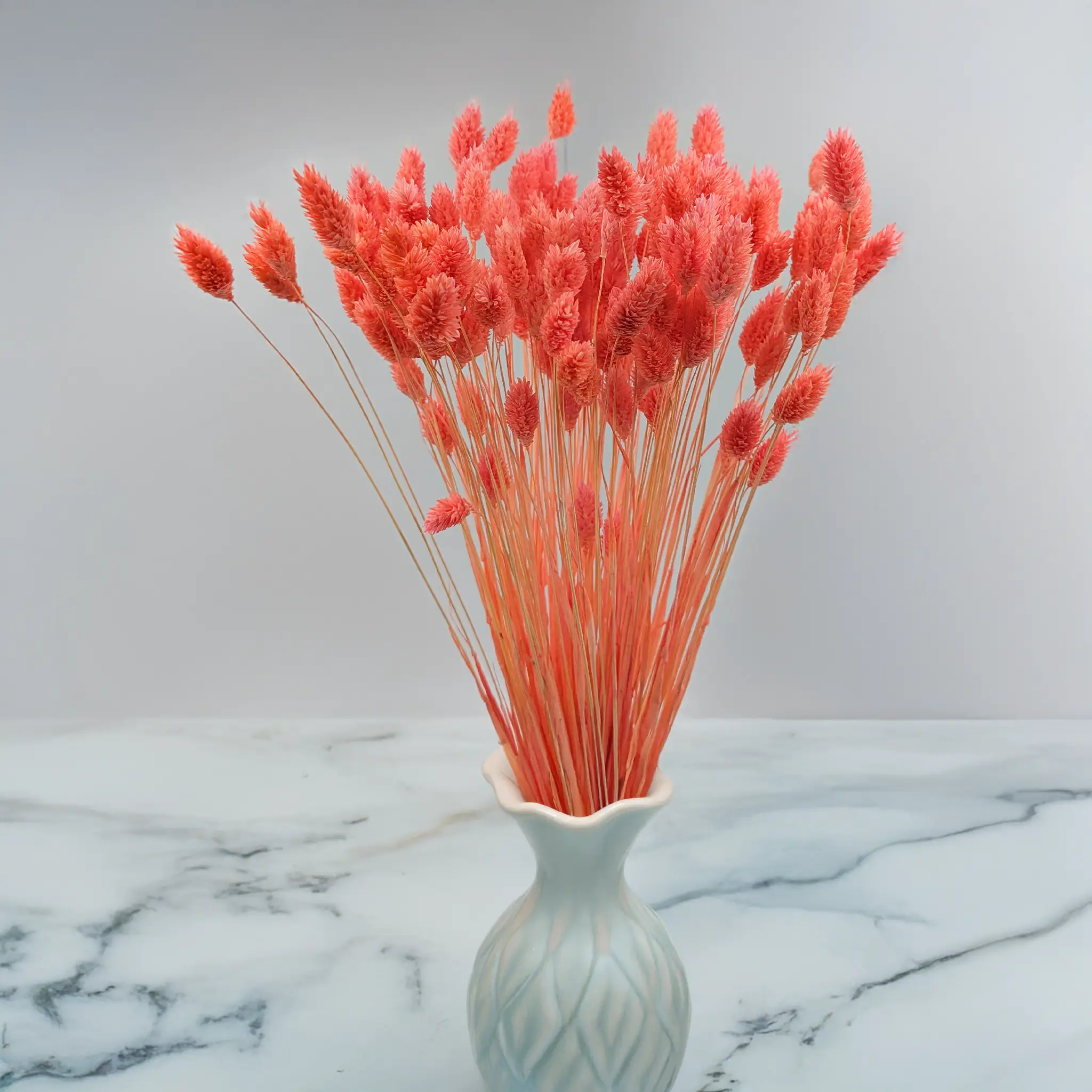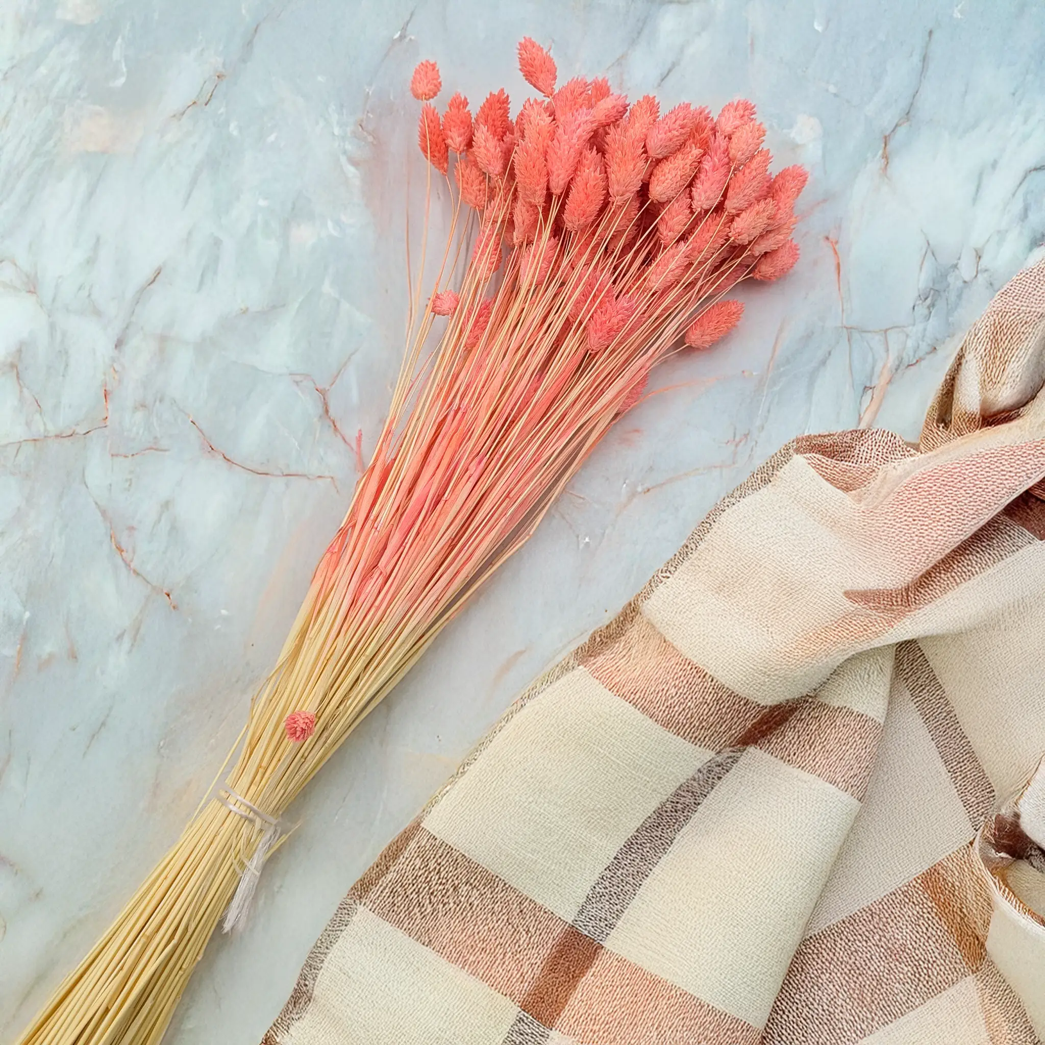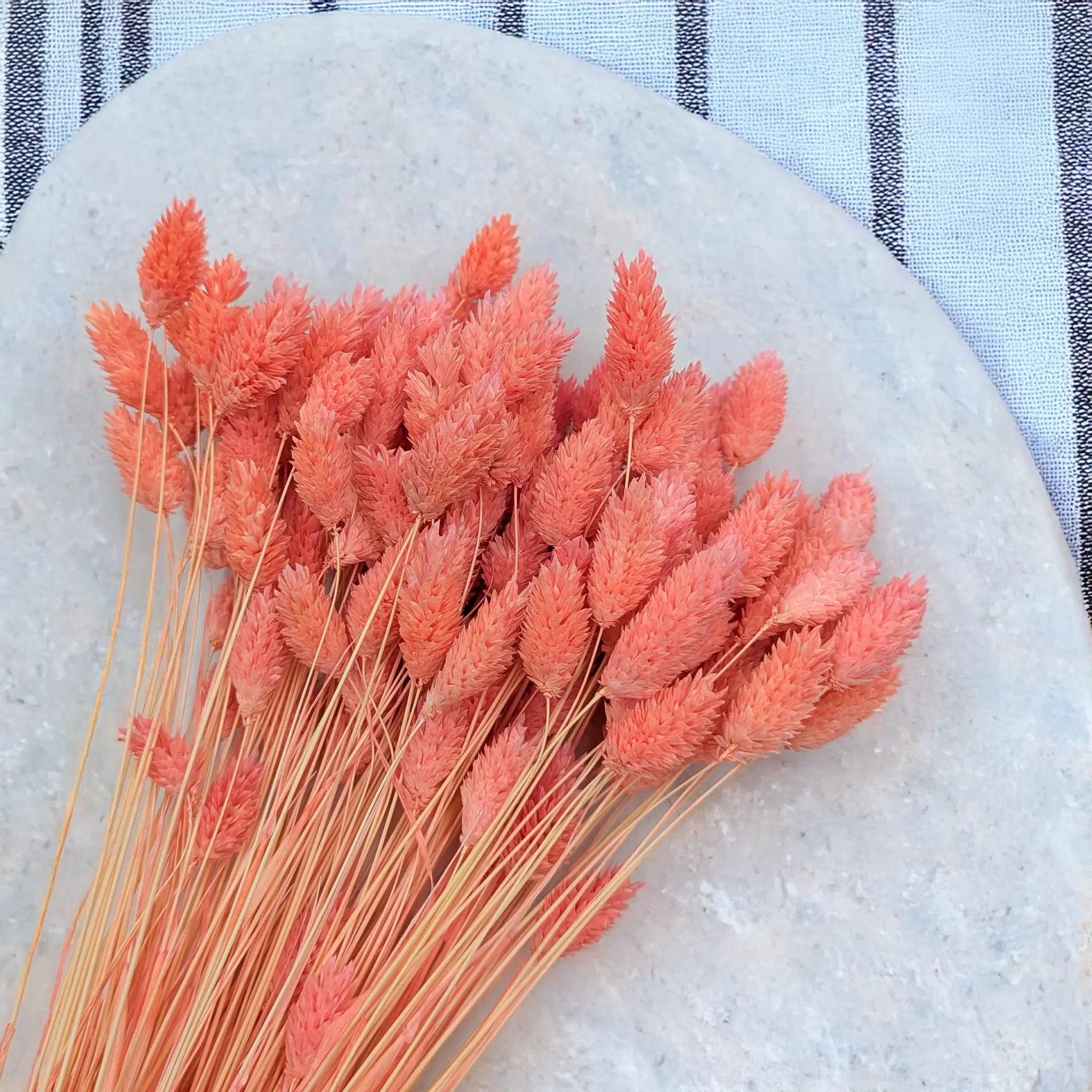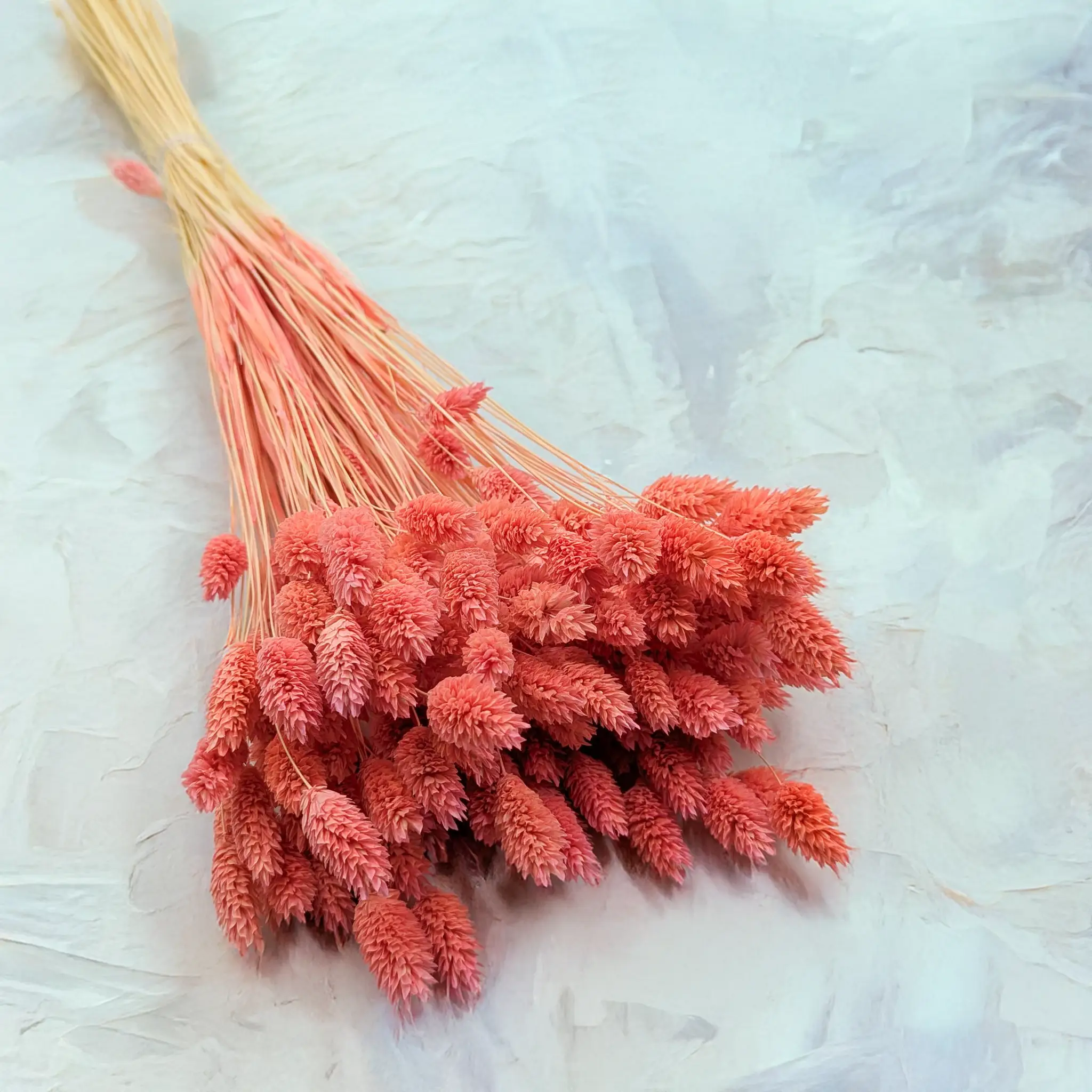 Coral Phalaris is a beautifully dried canary grass in a warm coral shade that brings vibrancy, charm, and sophistication to your floral arrangements. The coral tone symbolizes joy, passion, and optimism, making it perfect for boho, modern, or romantic interiors.
