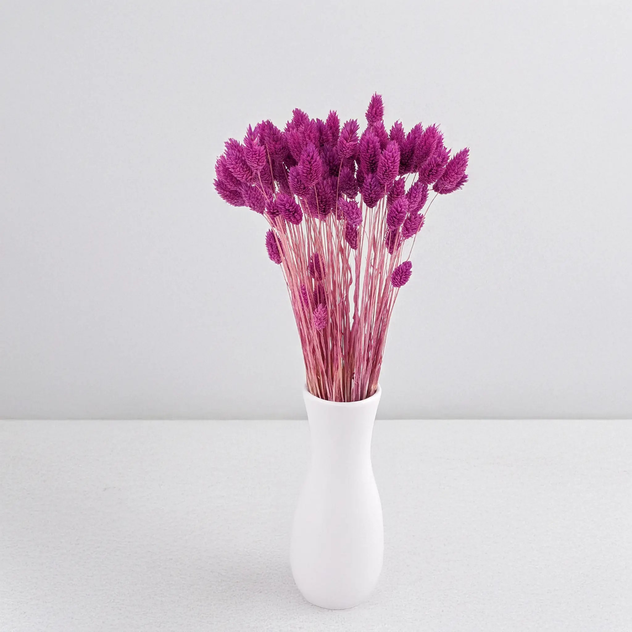 Dried Phalaris (Canary grass) in a Pastel Heather shade is a romantic and subtle decorative element. Its color, inspired by blooming heather, combines gentle pink and purple tones in a light, pastel version. Thanks to its unique hue, it works perfectly in boho, rustic, and even minimalist compositions.