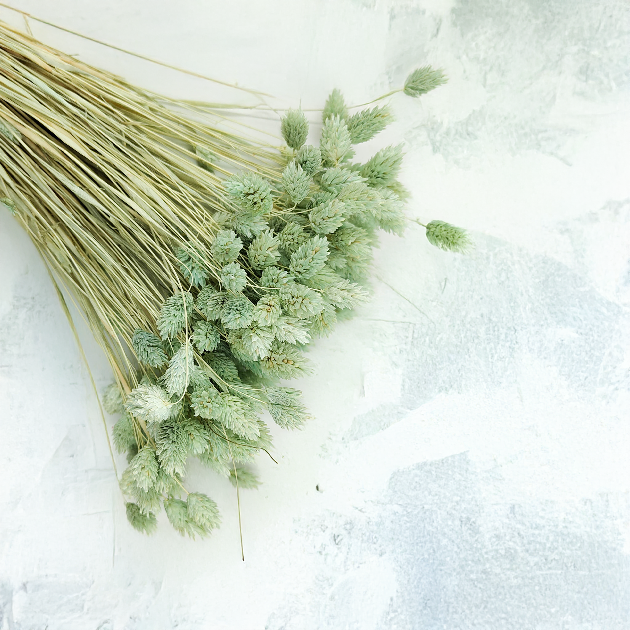 Mint Green Phalaris is a delicately dyed canary grass in a fresh pastel hue. Symbolizing calm, purity and renewal, it's perfect for romantic, natural-themed designs from weddings to eco interiors.