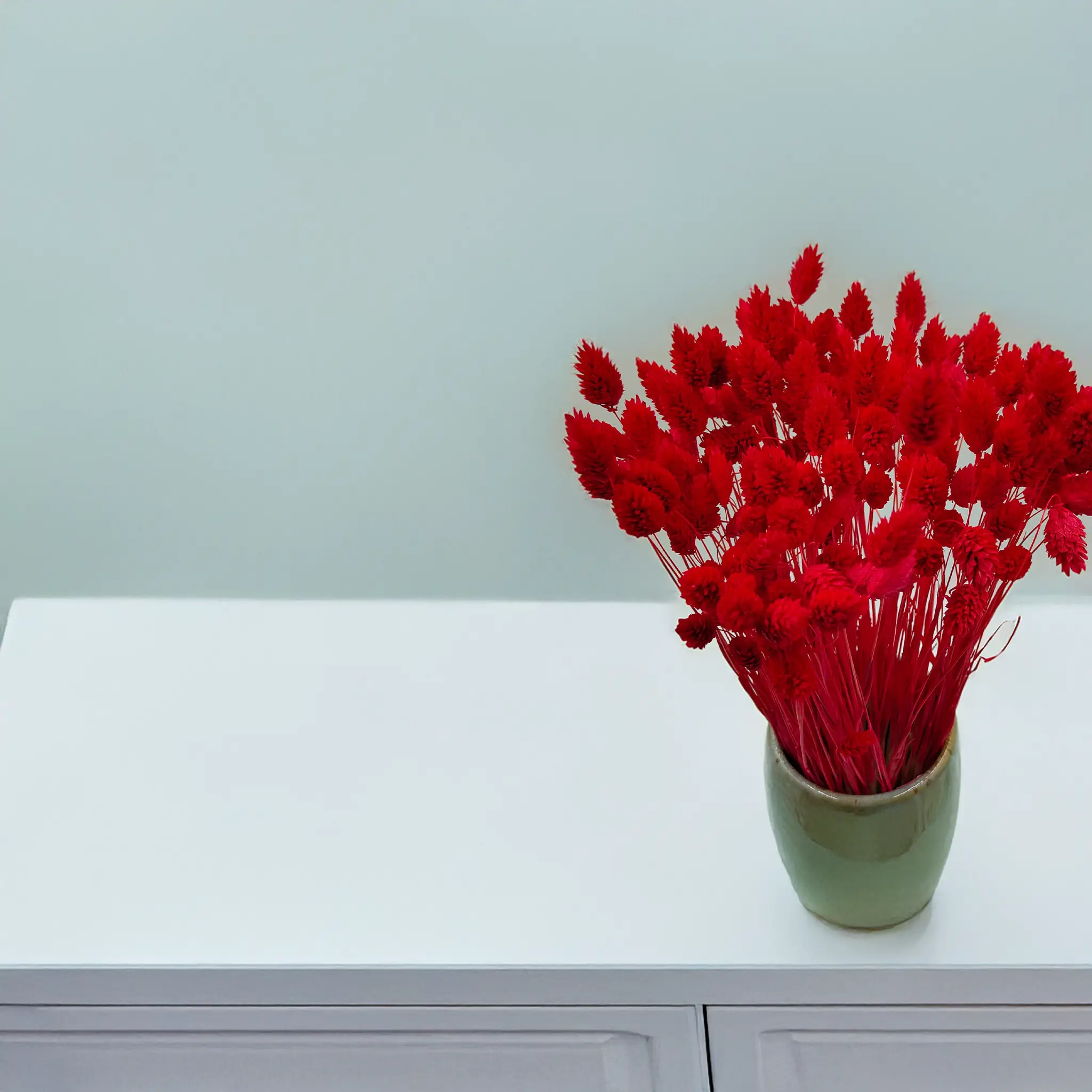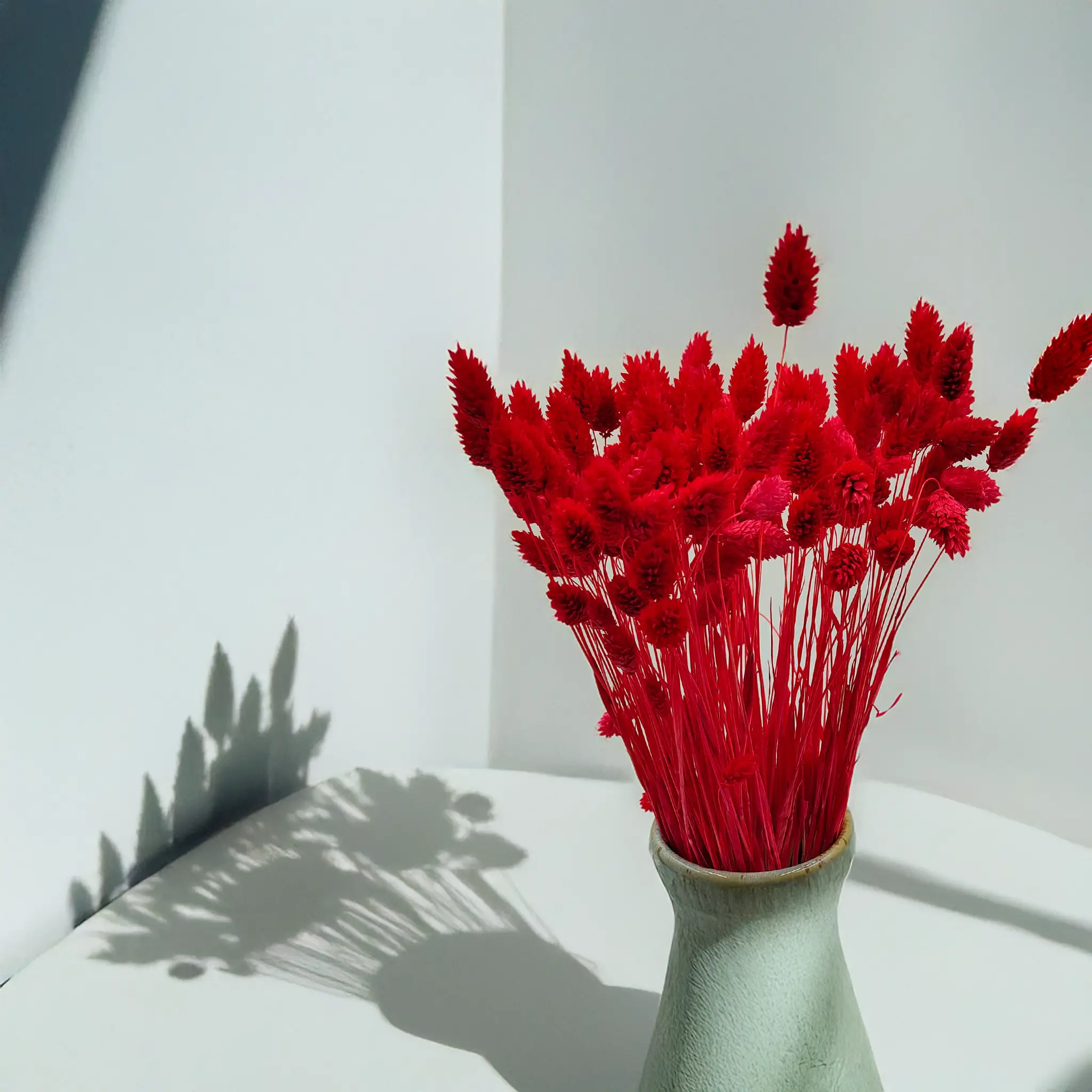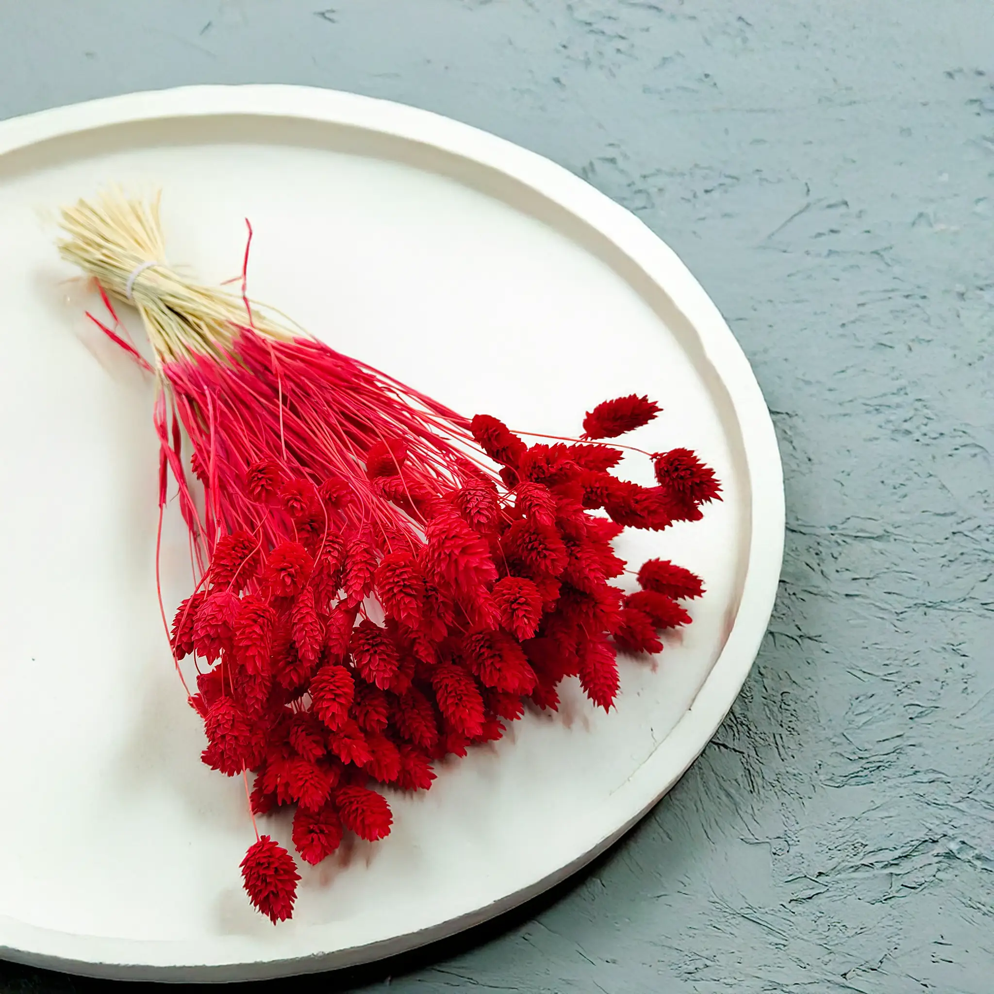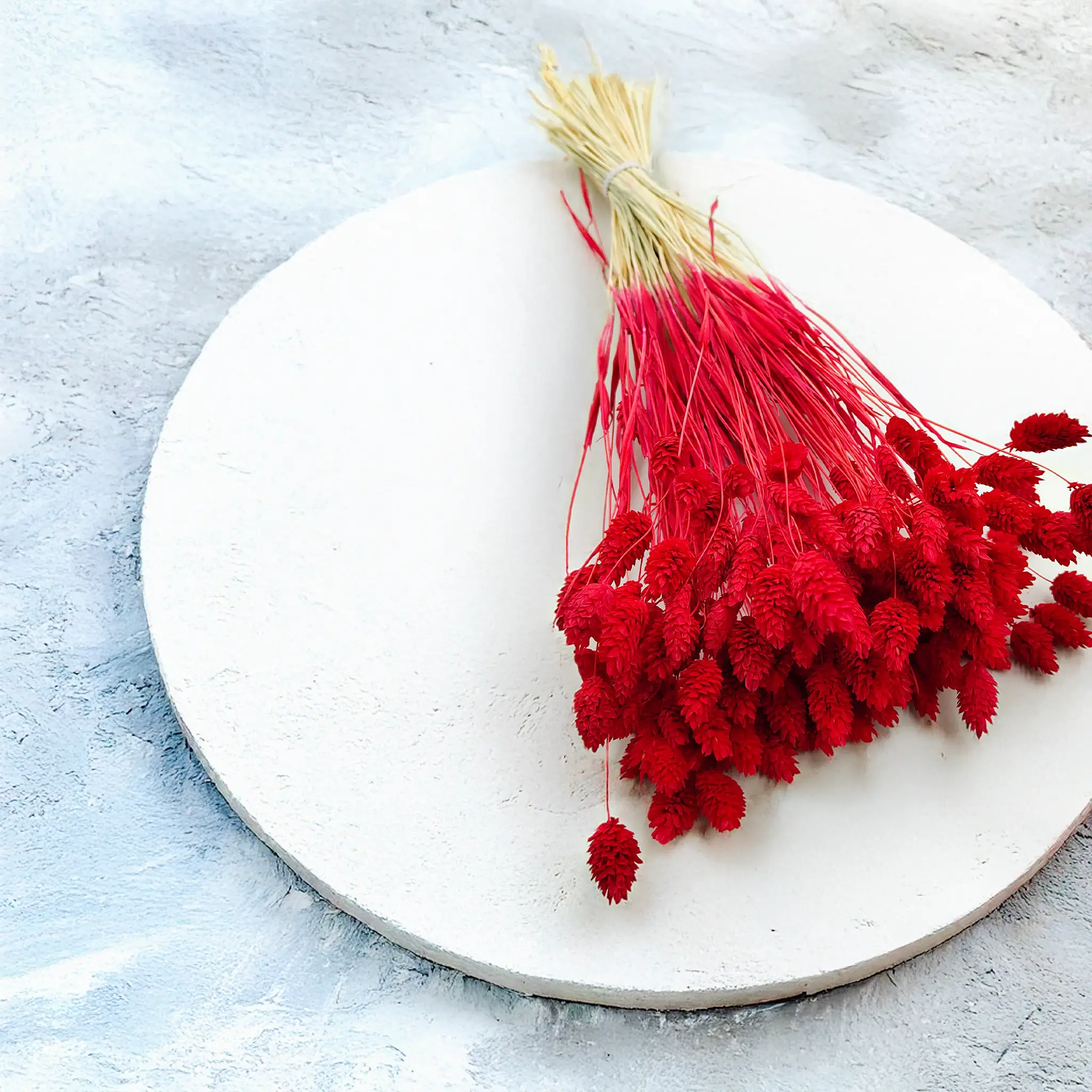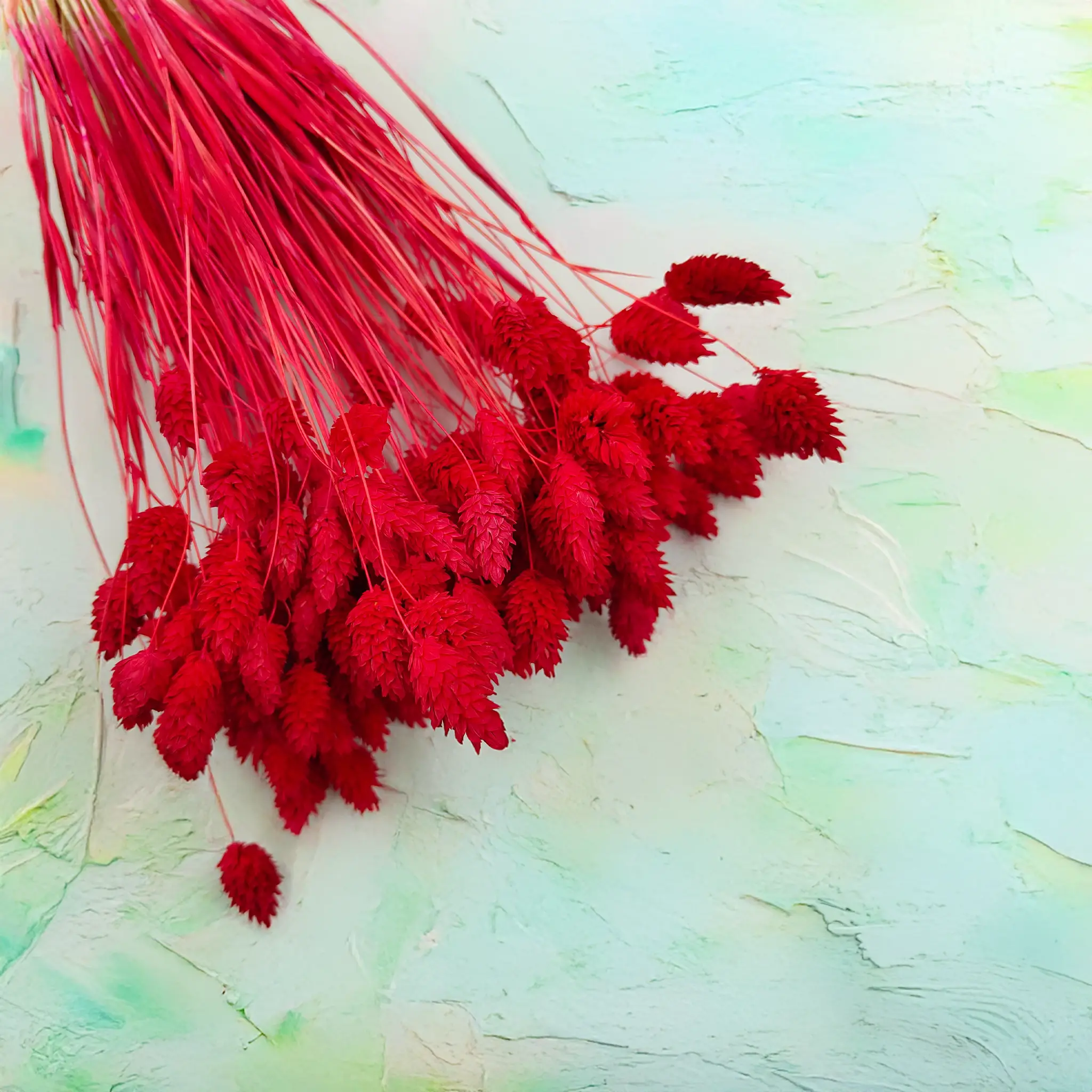 Red Phalaris is a decorative canary grass variety dyed in a deep red-rose tone — a color that symbolizes passion, love, and vibrant energy. The compact heads and preserved form make it a striking addition to floral projects full of emotion and contrast.