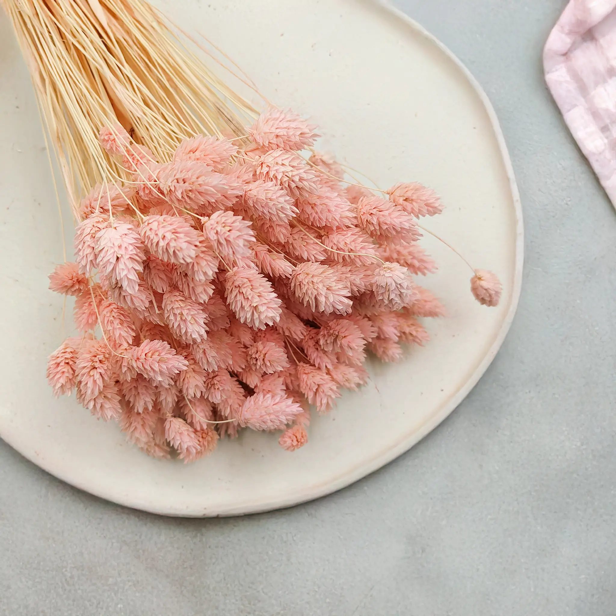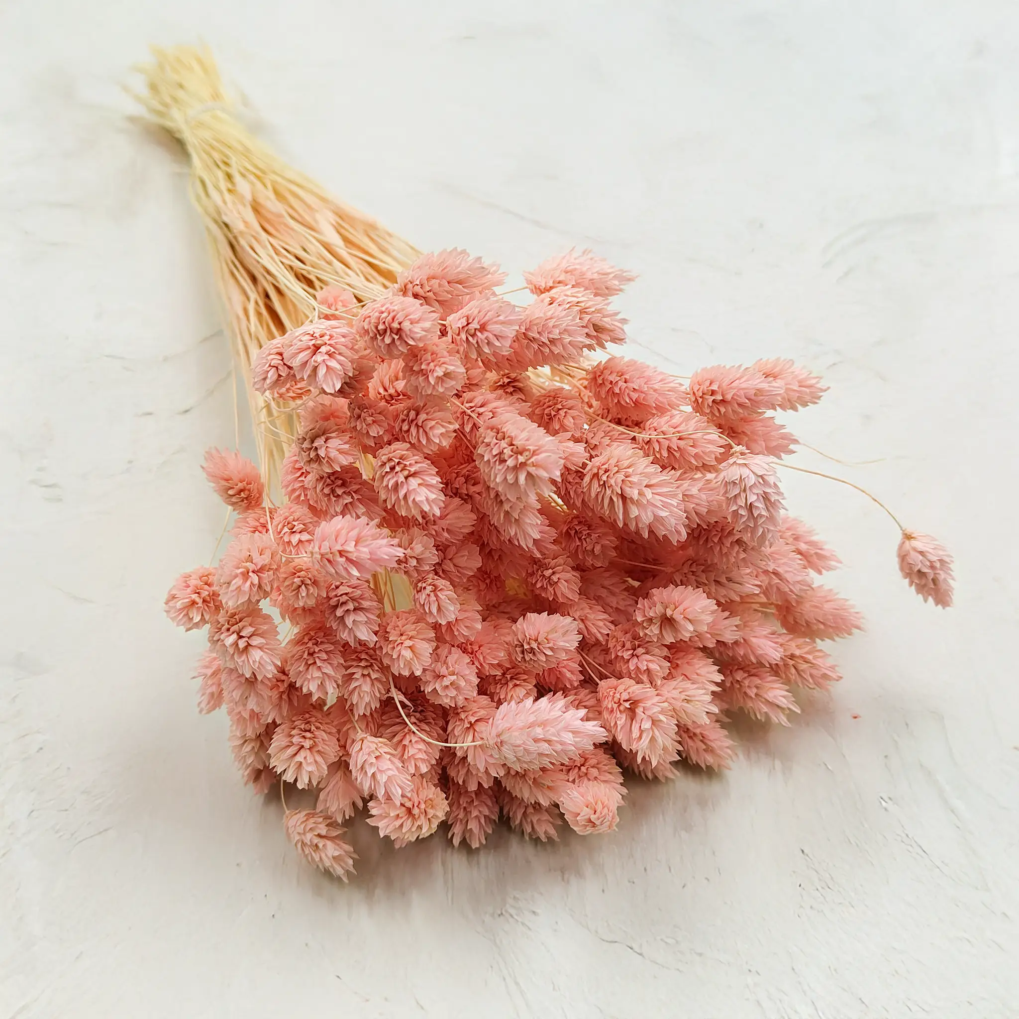 Salmon Phalaris is an elegant, naturally dried canary grass tinted in a soft tone between pink and peach. This romantic hue symbolizes harmony, gentleness, and femininity – ideal for weddings, classic interiors, and handmade decorations.