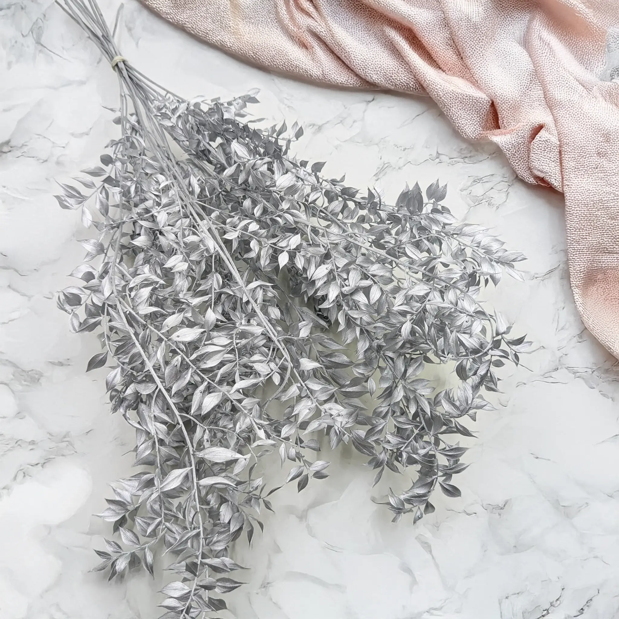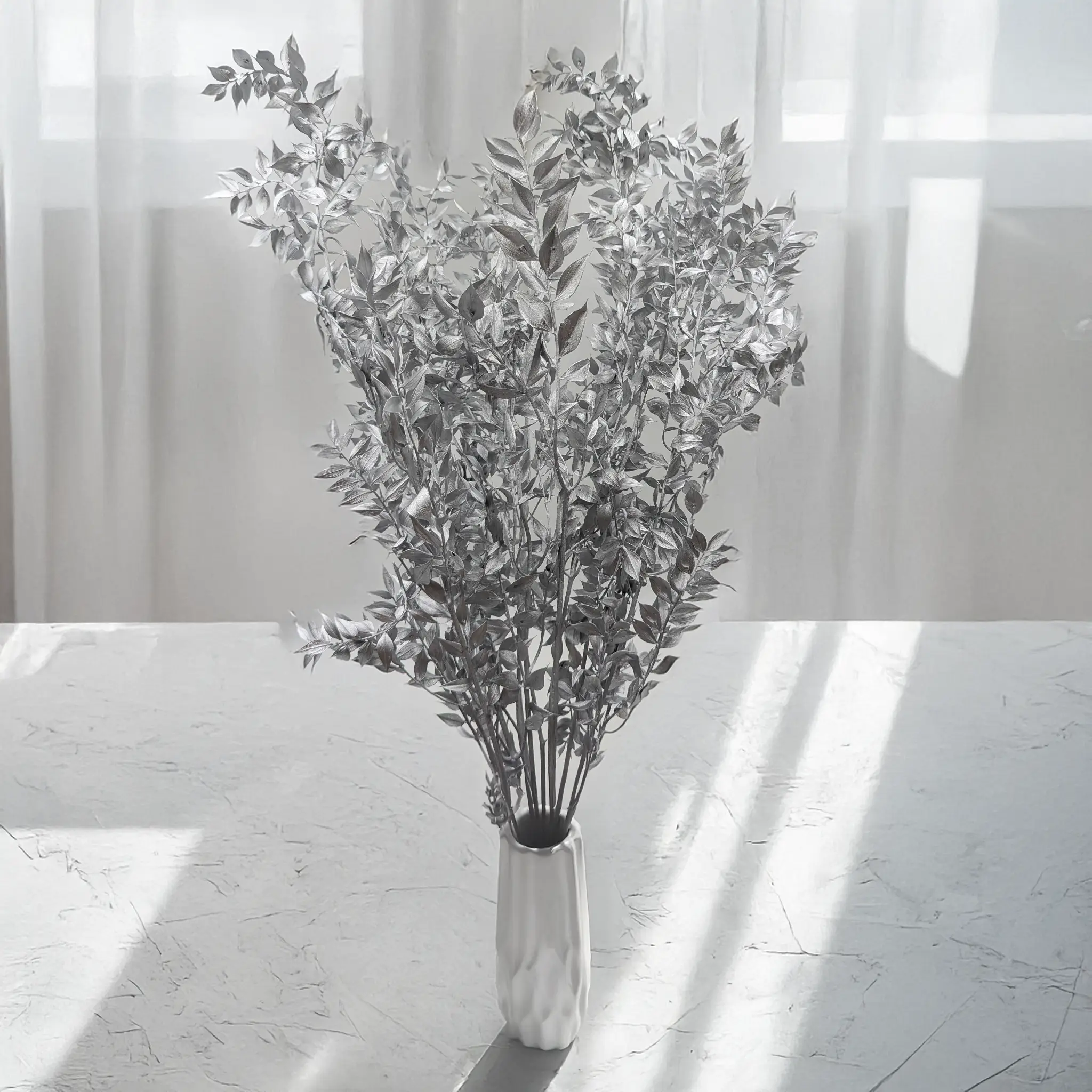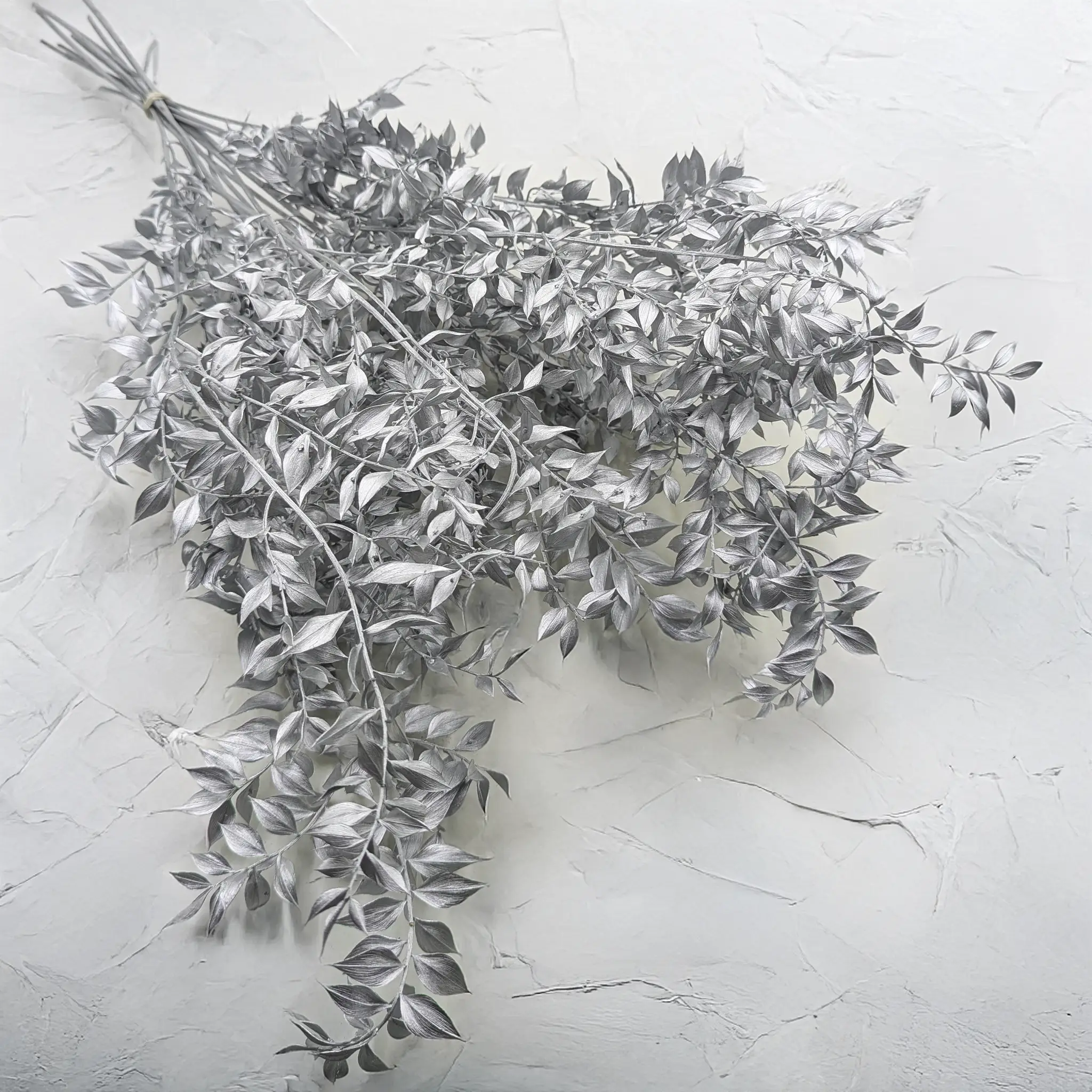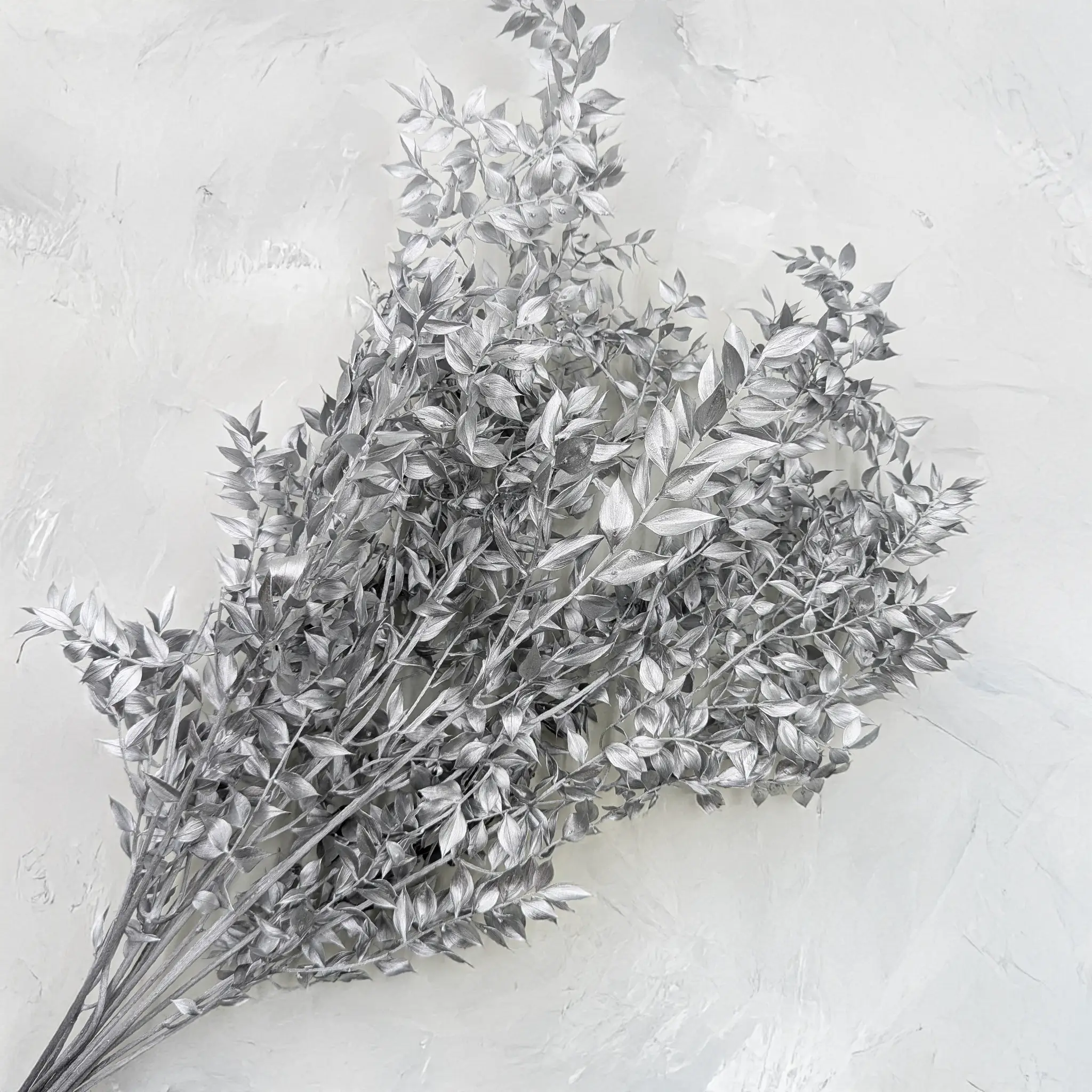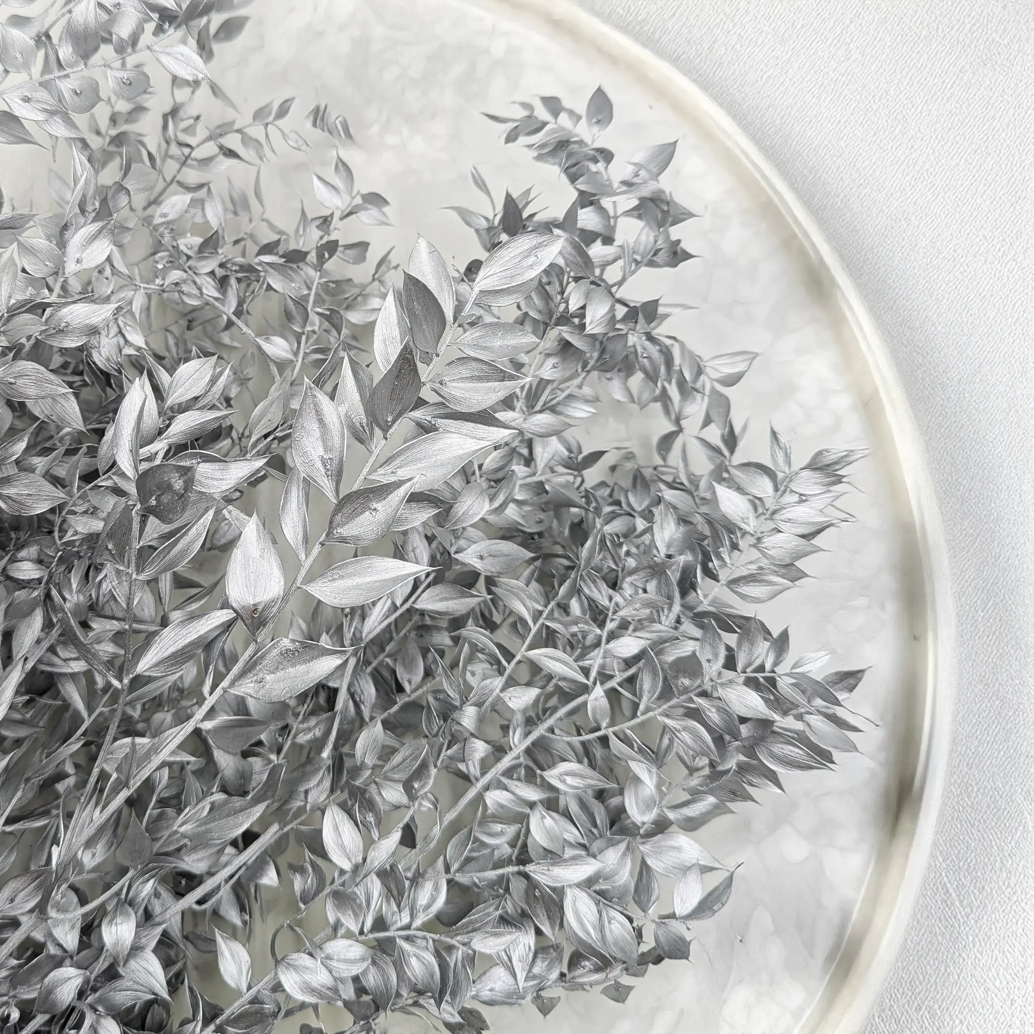 Silver-colored dried ruscus is a stylish choice for fans of elegant, cool-toned decorative elements. Its metallic sheen adds a refined and modern touch to any arrangement, making it perfect for winter styling, festive compositions, and glamour-inspired decor. Durable and ready to use, it requires no maintenance.