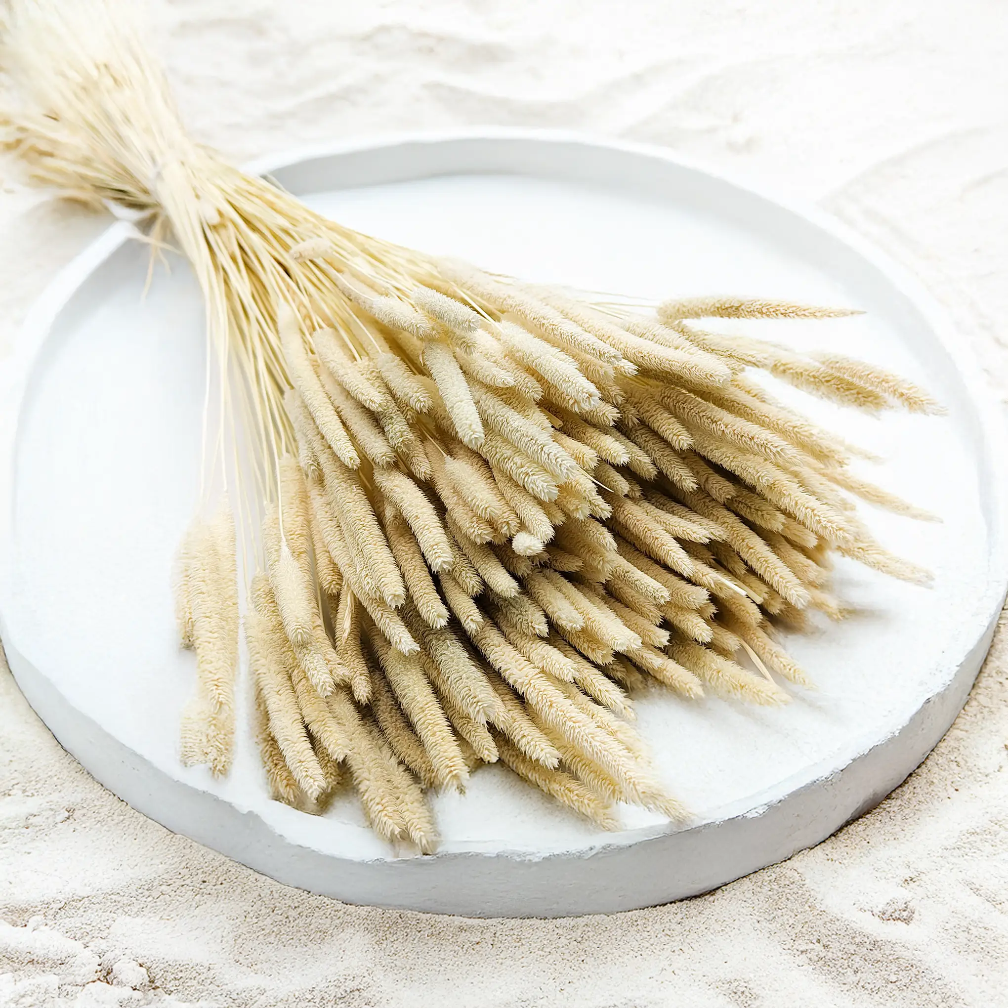This bleached dried timothy grass brings gentle, natural beauty into any interior. Its soft white shade complements various floral styles and adds a touch of minimal elegance.