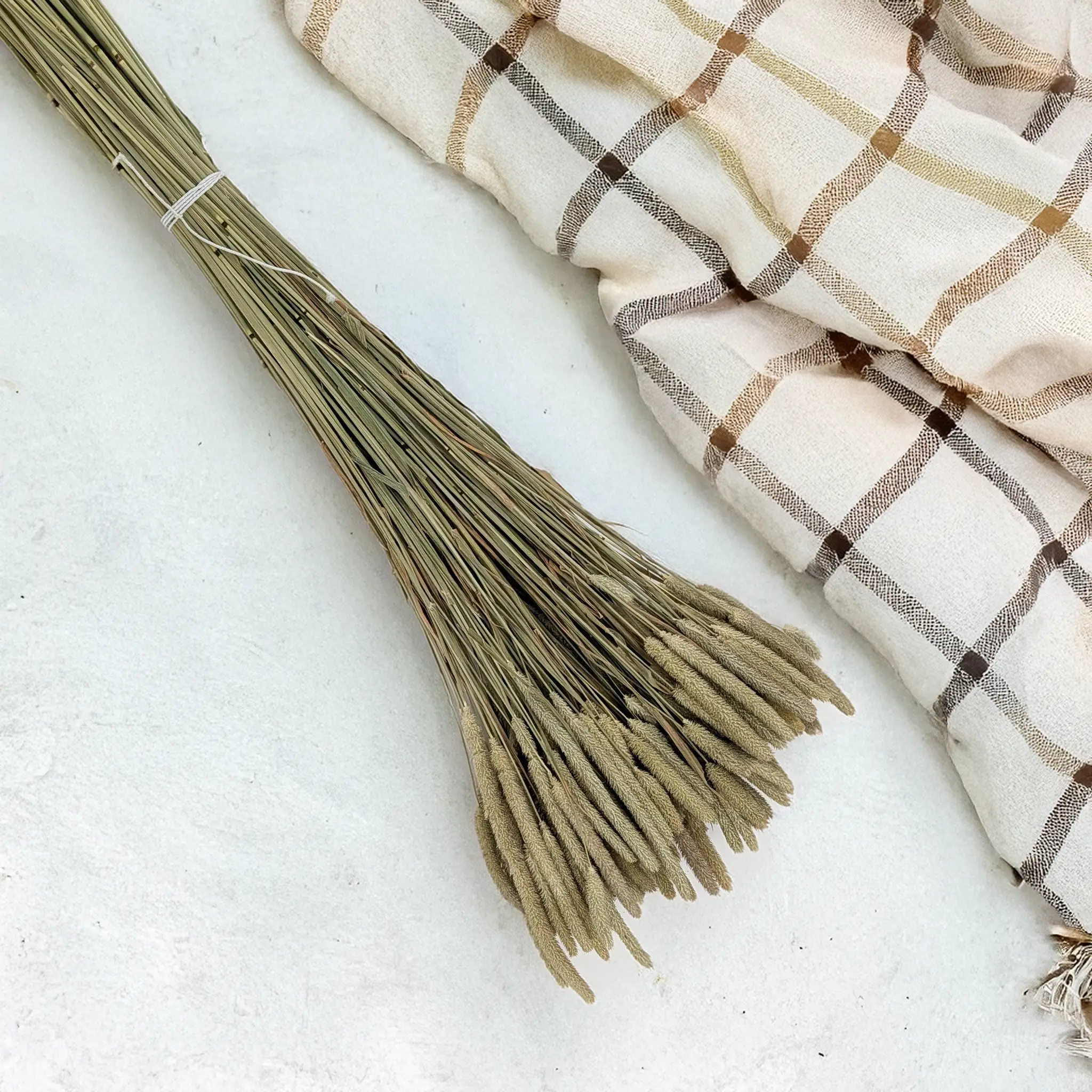 Dried natural timothy grass is a timeless botanical element, perfect for eco-friendly and soft interior decor. With its pale straw color and delicate spikes, it adds structure and subtle charm to boho, japandi, or minimalist arrangements.