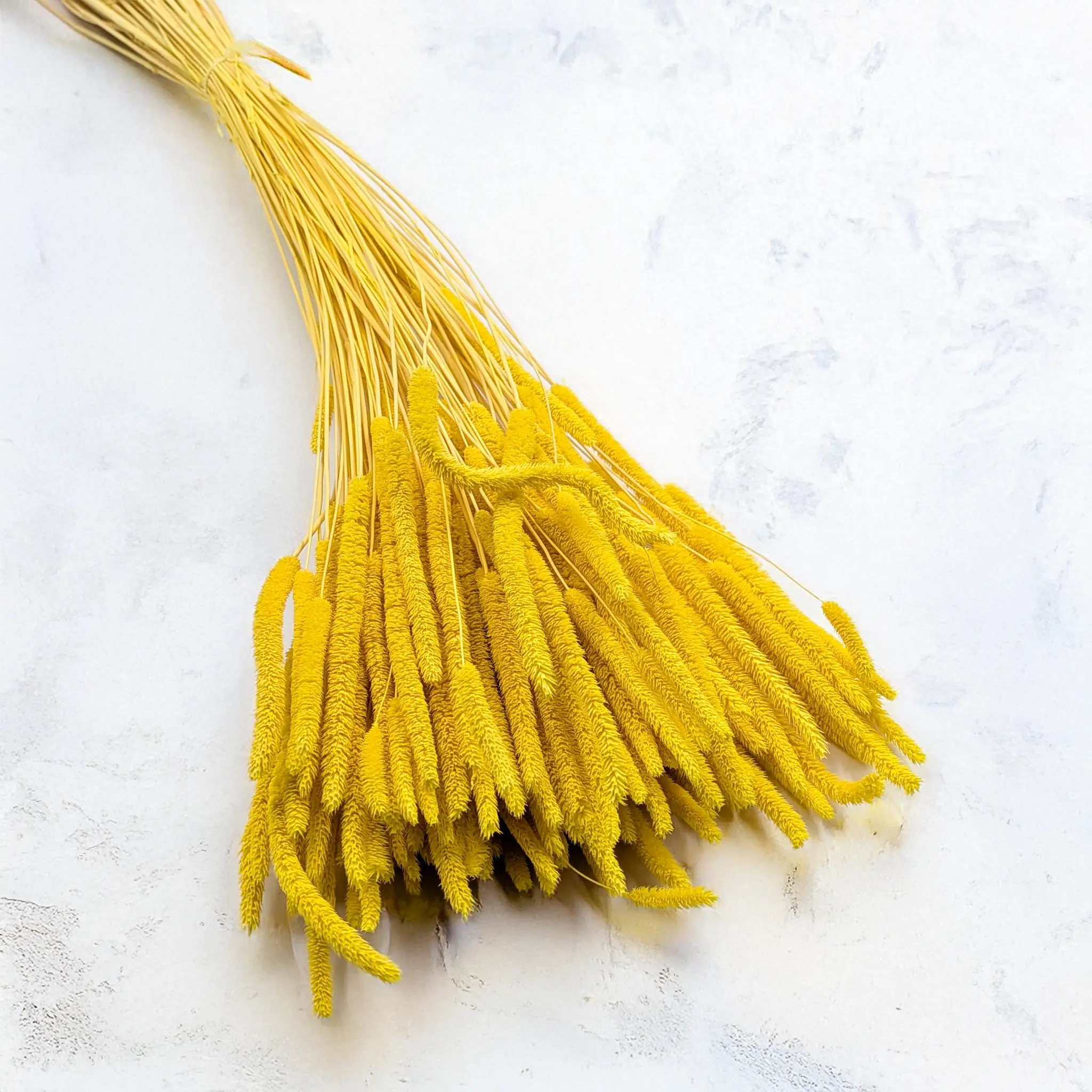 Dried timothy grass in a sunny yellow shade is a warm and uplifting decorative accent that instantly brightens floral arrangements. Its slender seed heads add lightness and natural movement, creating a harmonious balance between colour intensity and delicate form.