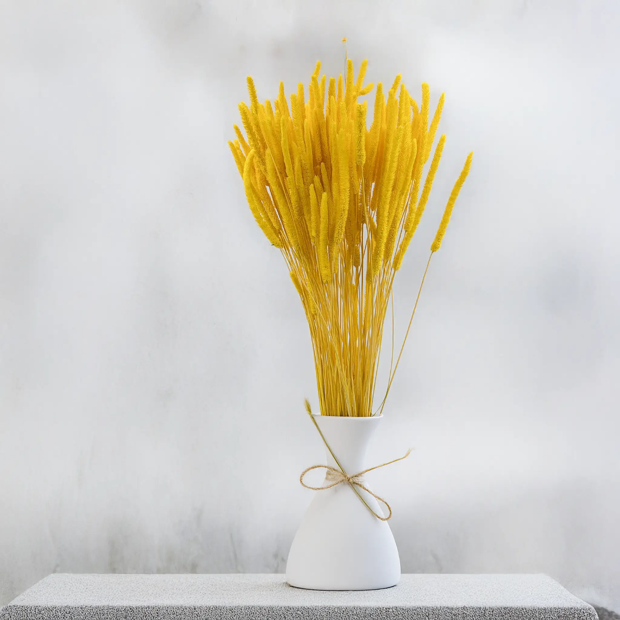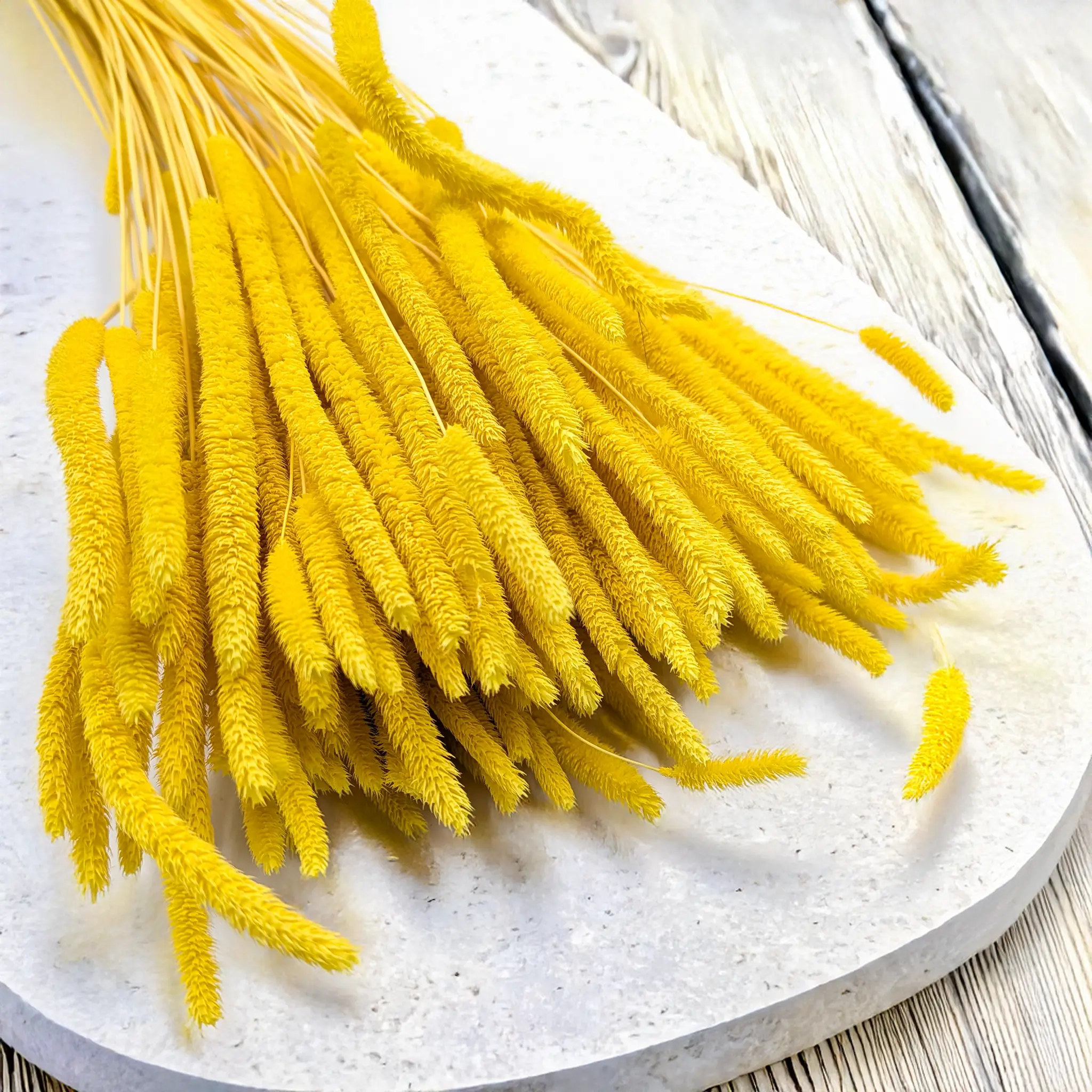 Yellow timothy grass pairs beautifully with white, cream, natural beige and green dried grasses. It works perfectly as both a focal element and a subtle enhancement in bright, seasonal designs.