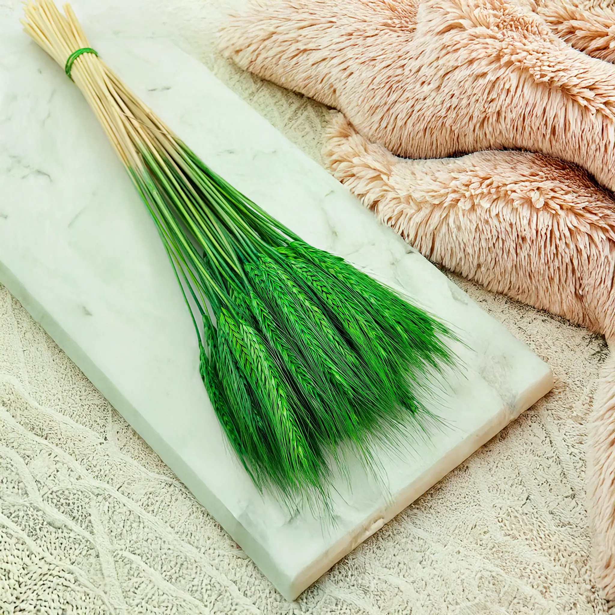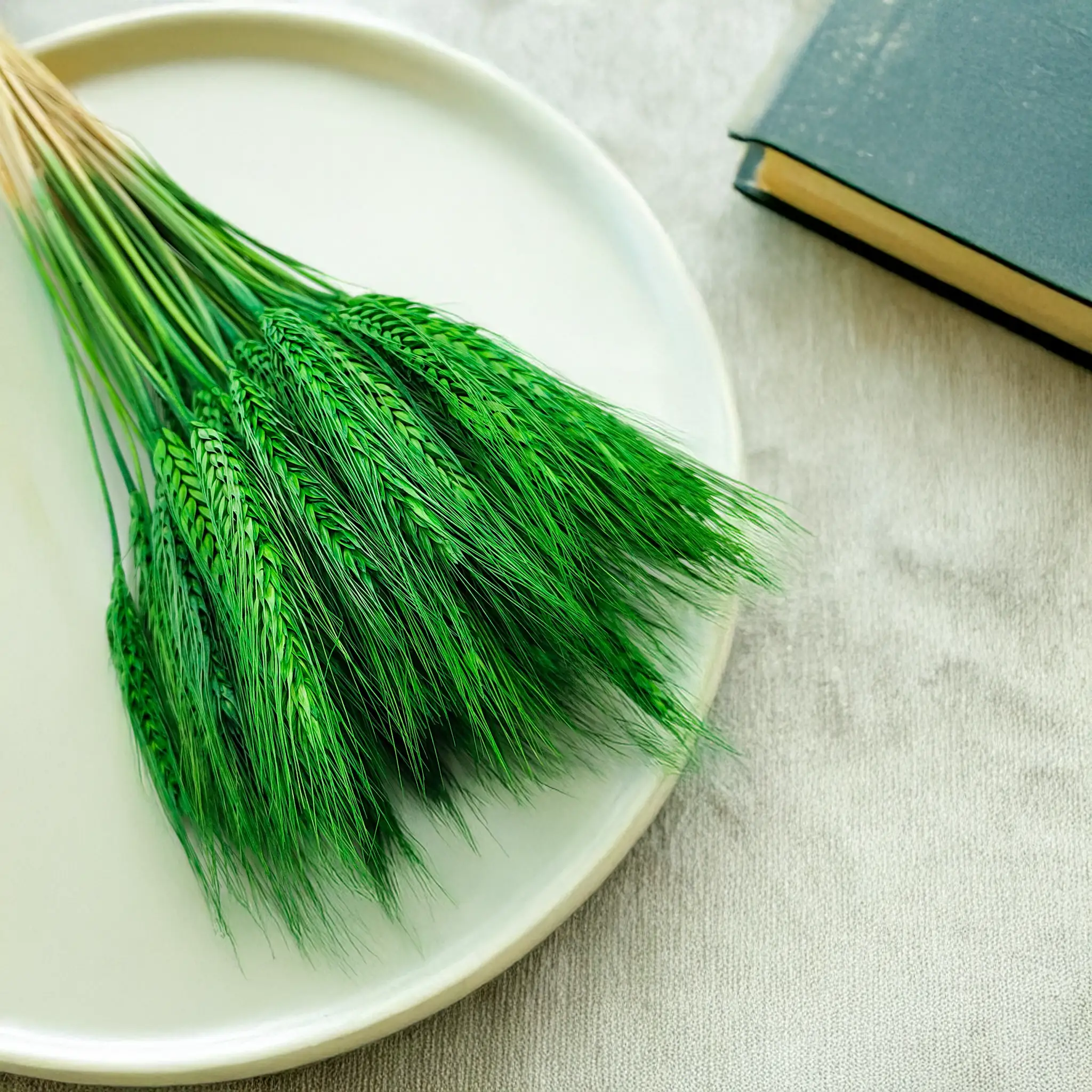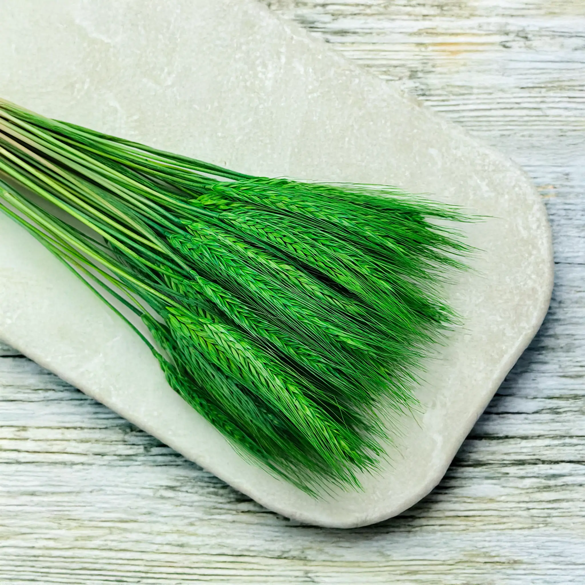 Dried triticale in green is a fresh, nature-inspired decorative accent. Its light green tone brings a soft spring vibe, symbolizing renewal, serenity and freshness – a perfect match for rustic, minimalist and Scandinavian interiors.