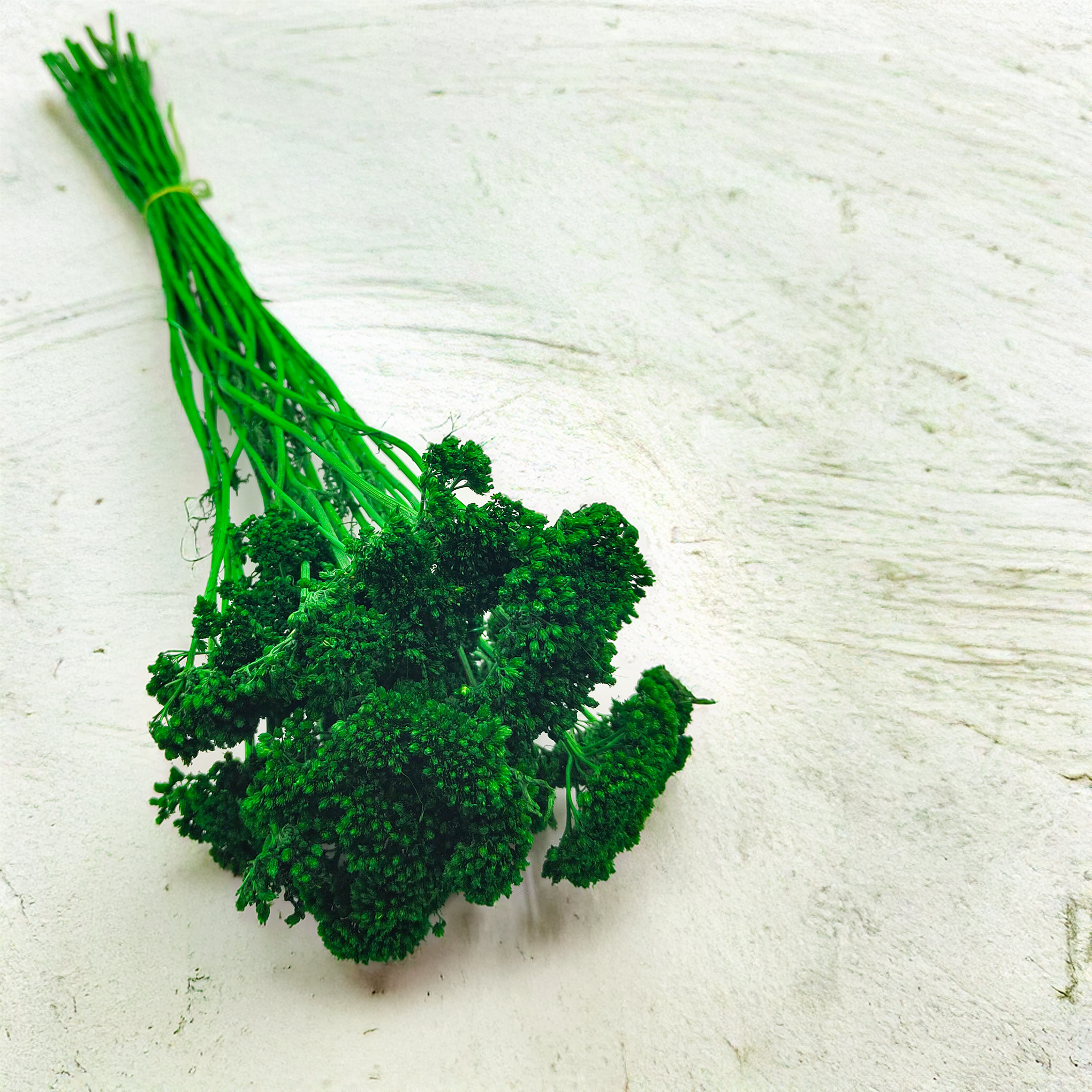 This dried green yarrow (Achillea) is a beautiful, versatile addition to natural and rustic floral arrangements. Its compact flower heads and vibrant green stems offer both texture and freshness, making it perfect for eco-inspired and boho designs.